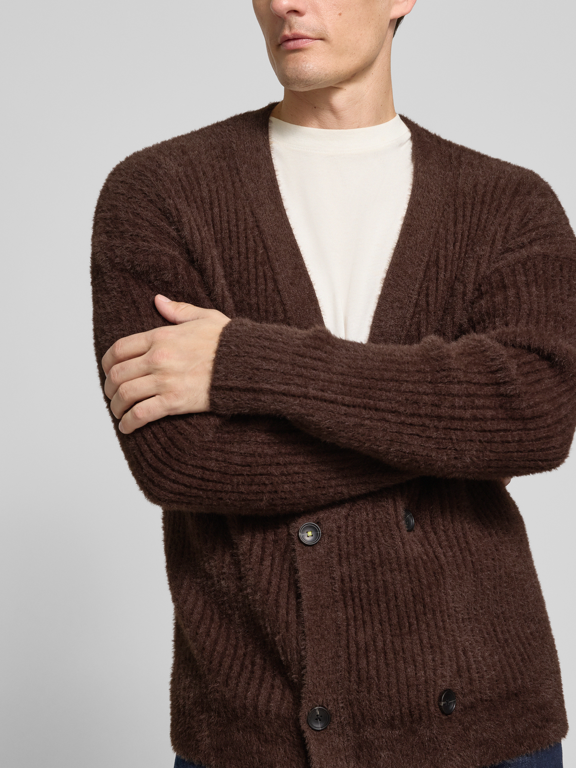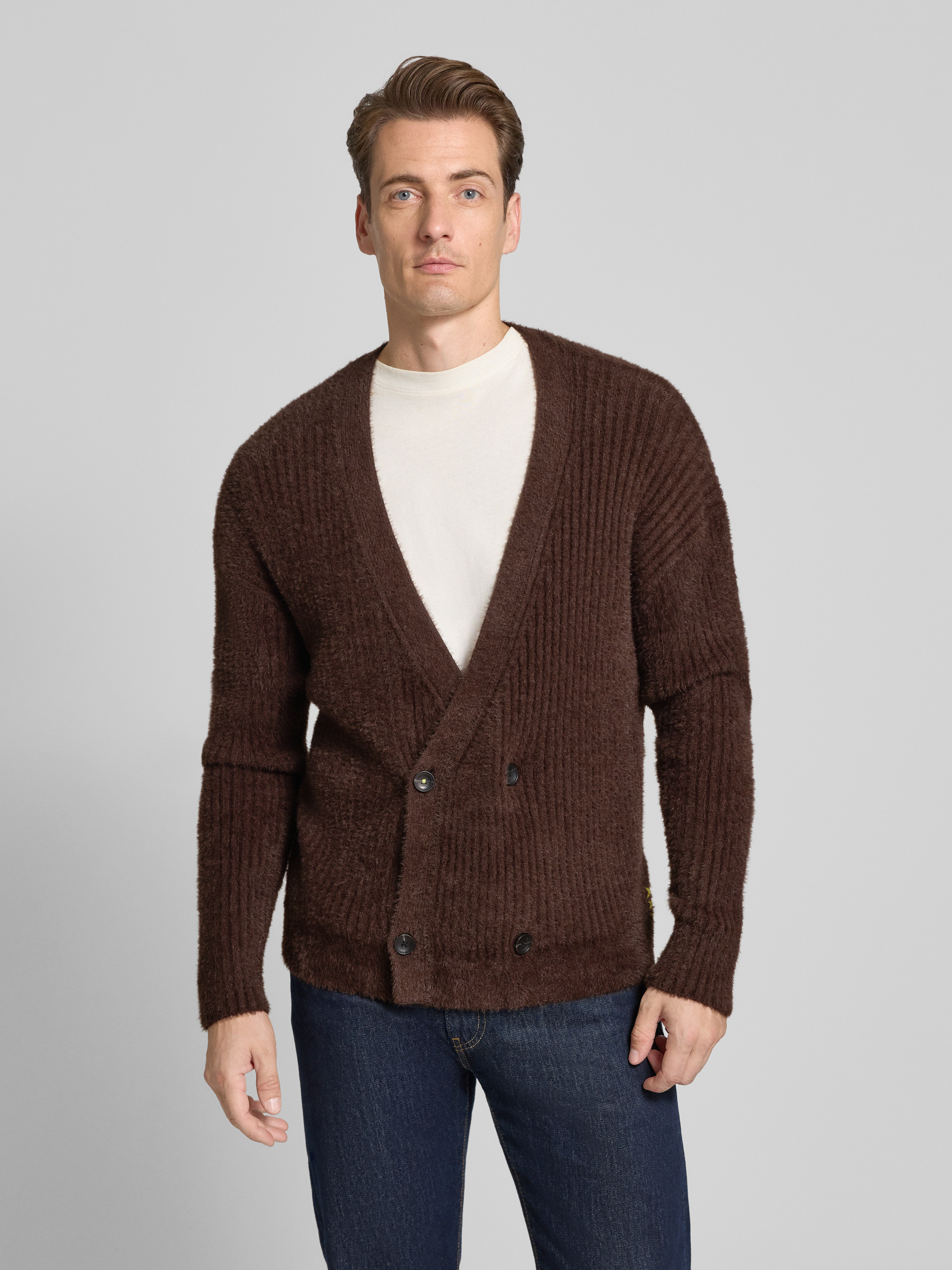 Gebreid jack met V-hals in donkerbruin