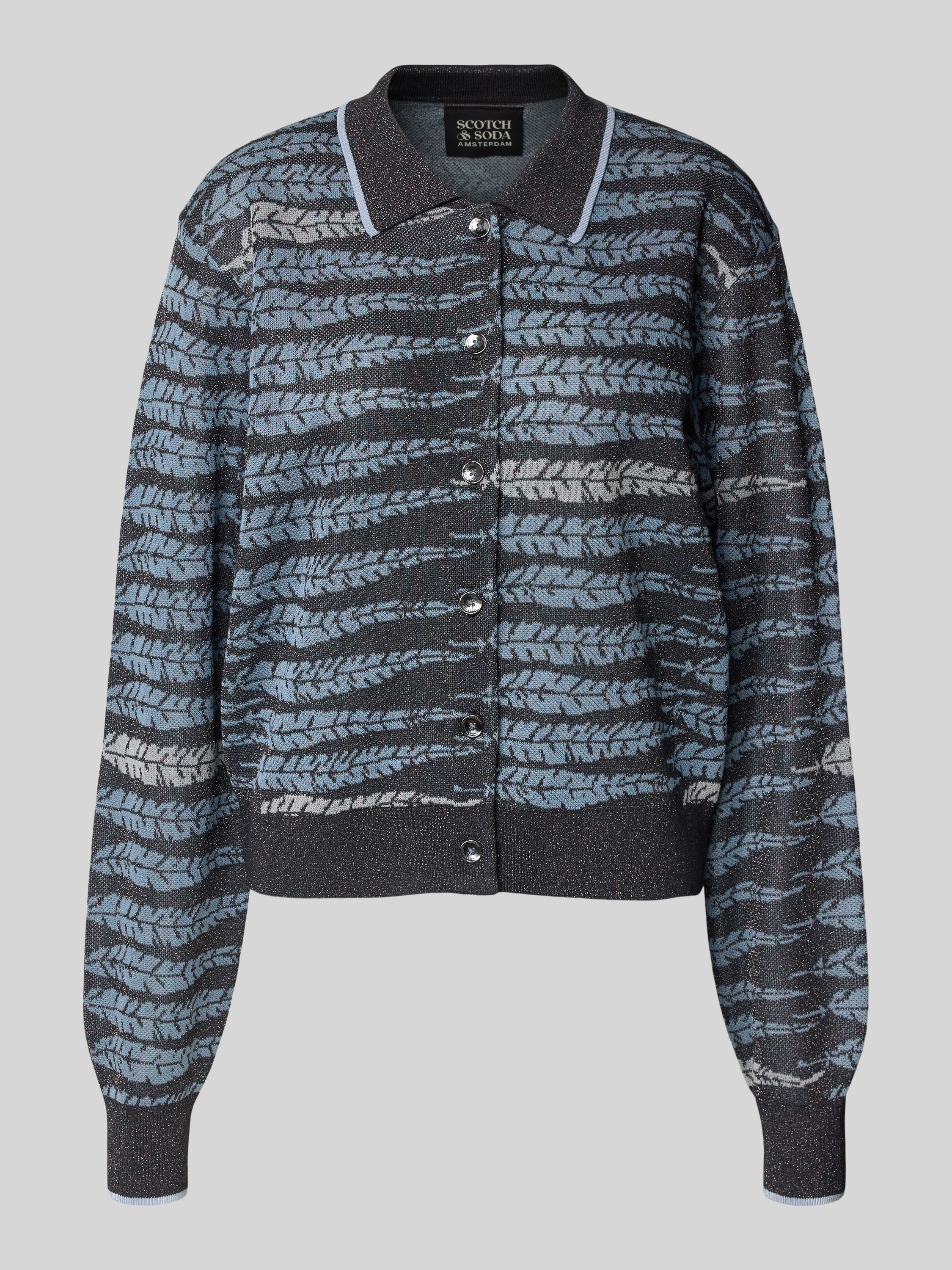 Gebreid jack van viscosemix met platte kraag en knoopsluiting in donkerblauw