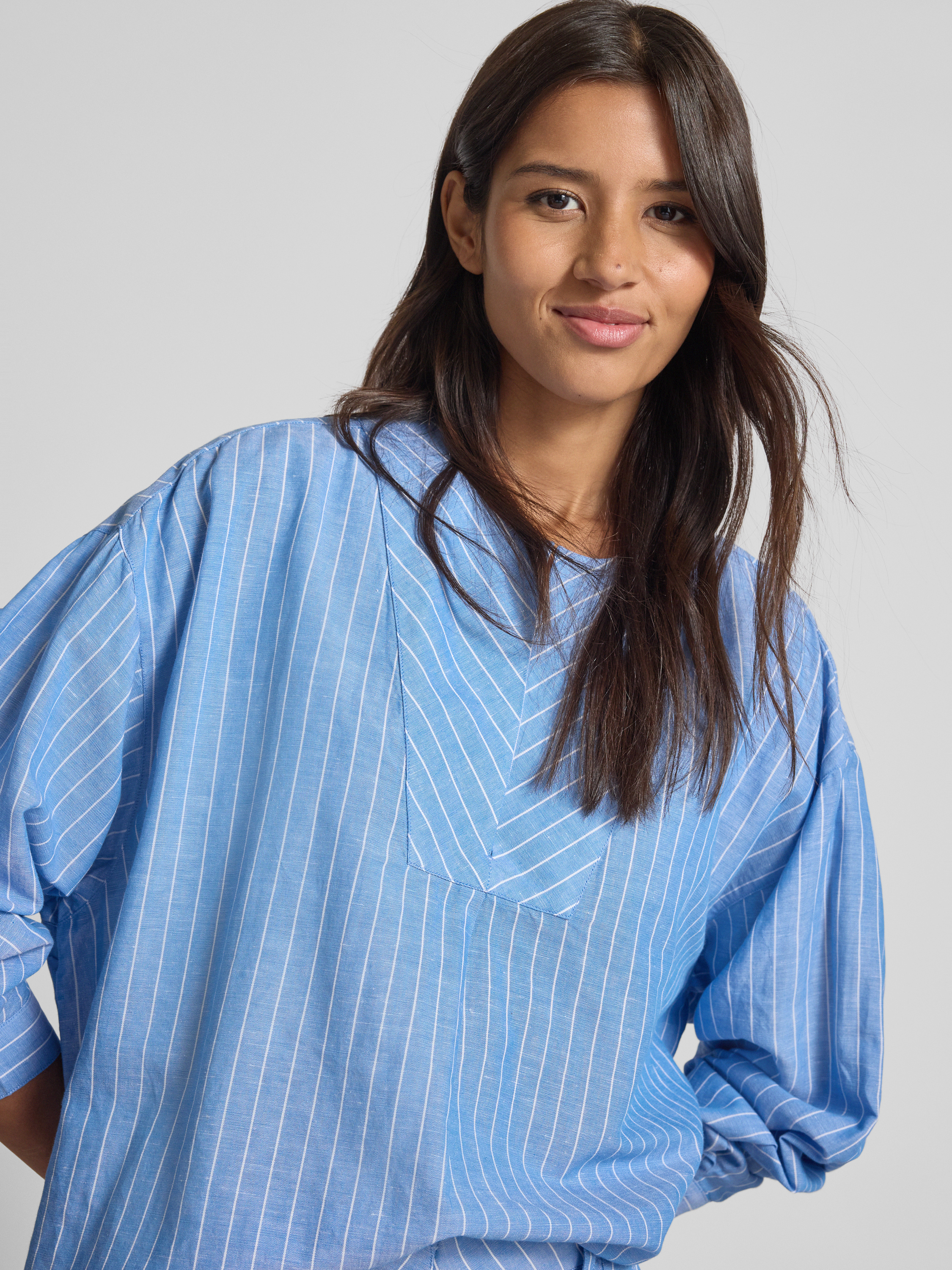 Relaxed fit blouse met druppelvormige hals in lichtblauw