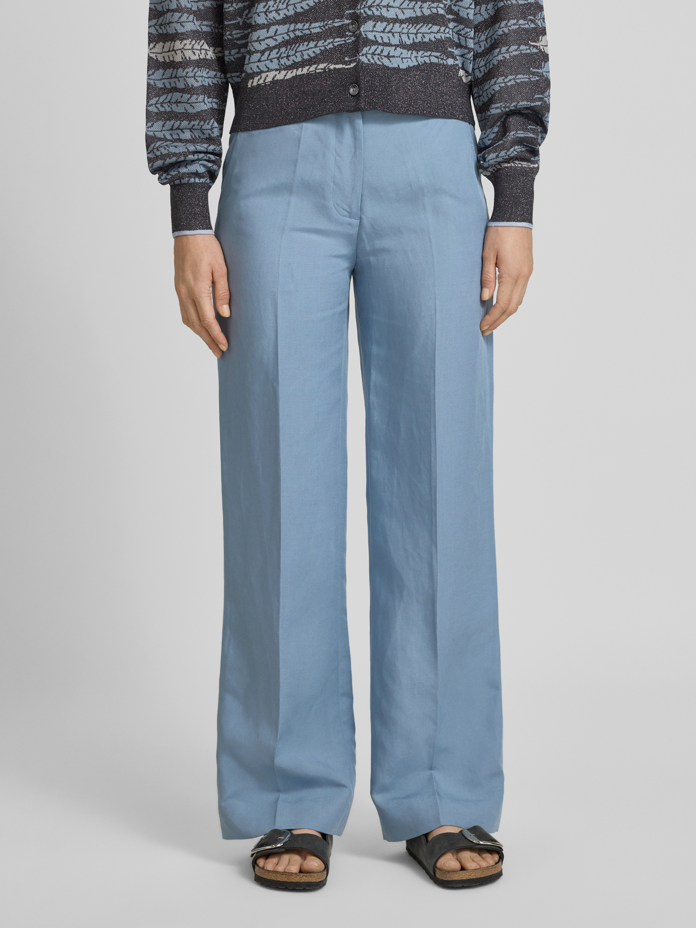 Wide leg stoffen broek van een mix van viscose en linnen in lichtblauw