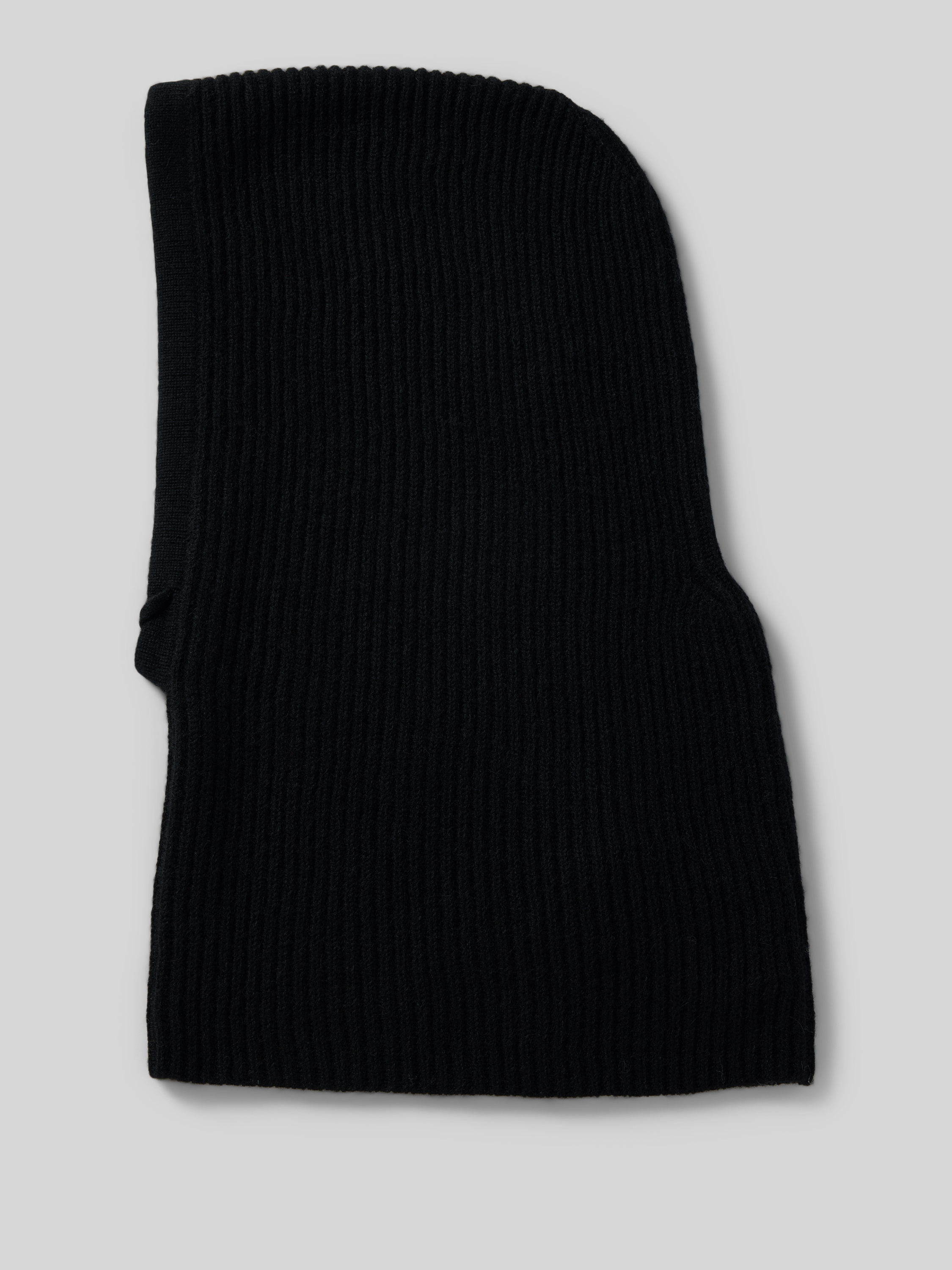 Bivakmuts van puur kasjmier in gebreide look in zwart
