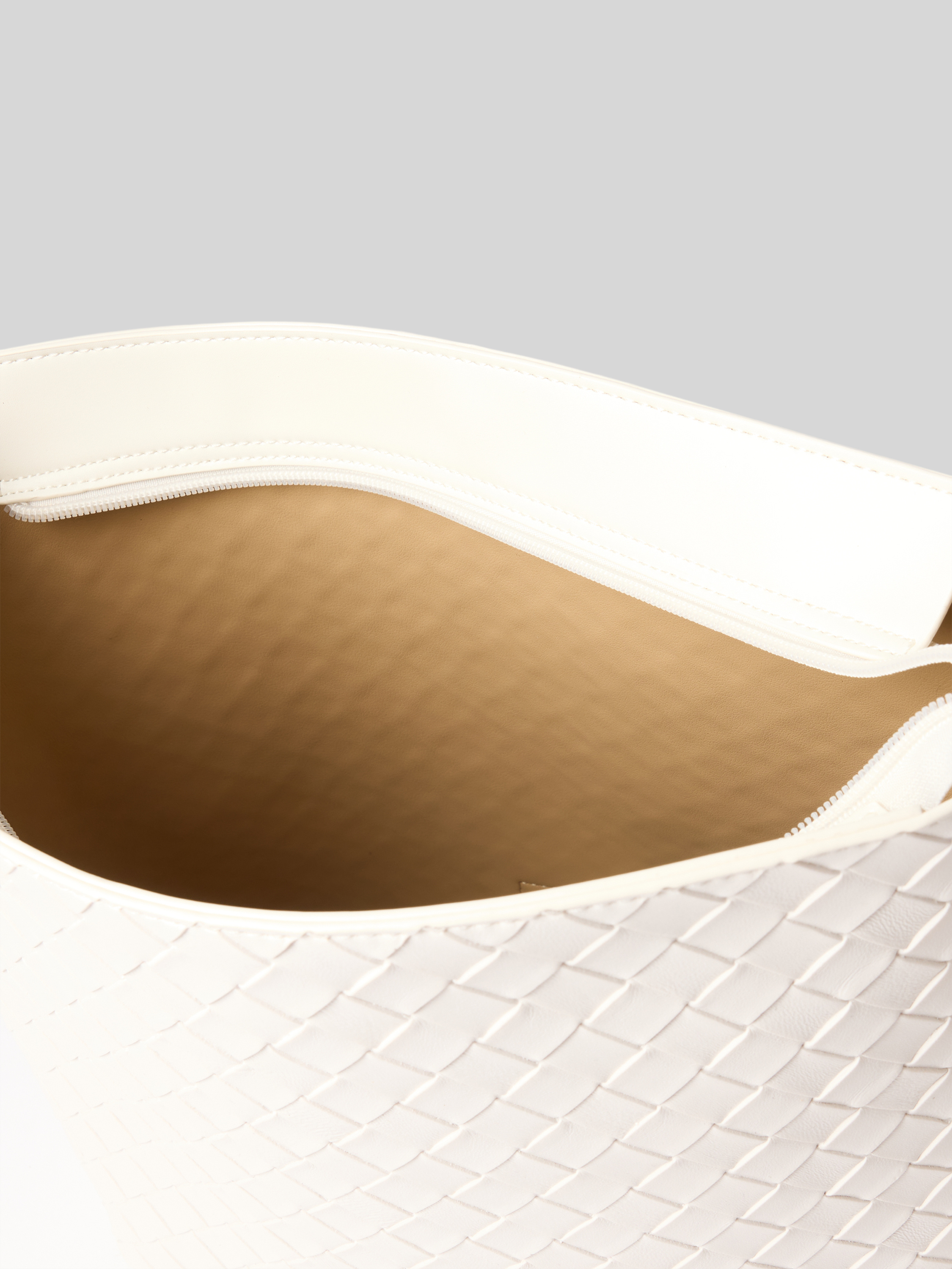 Handtas in gevlochten look, model 'KINNA HOBO' in wit