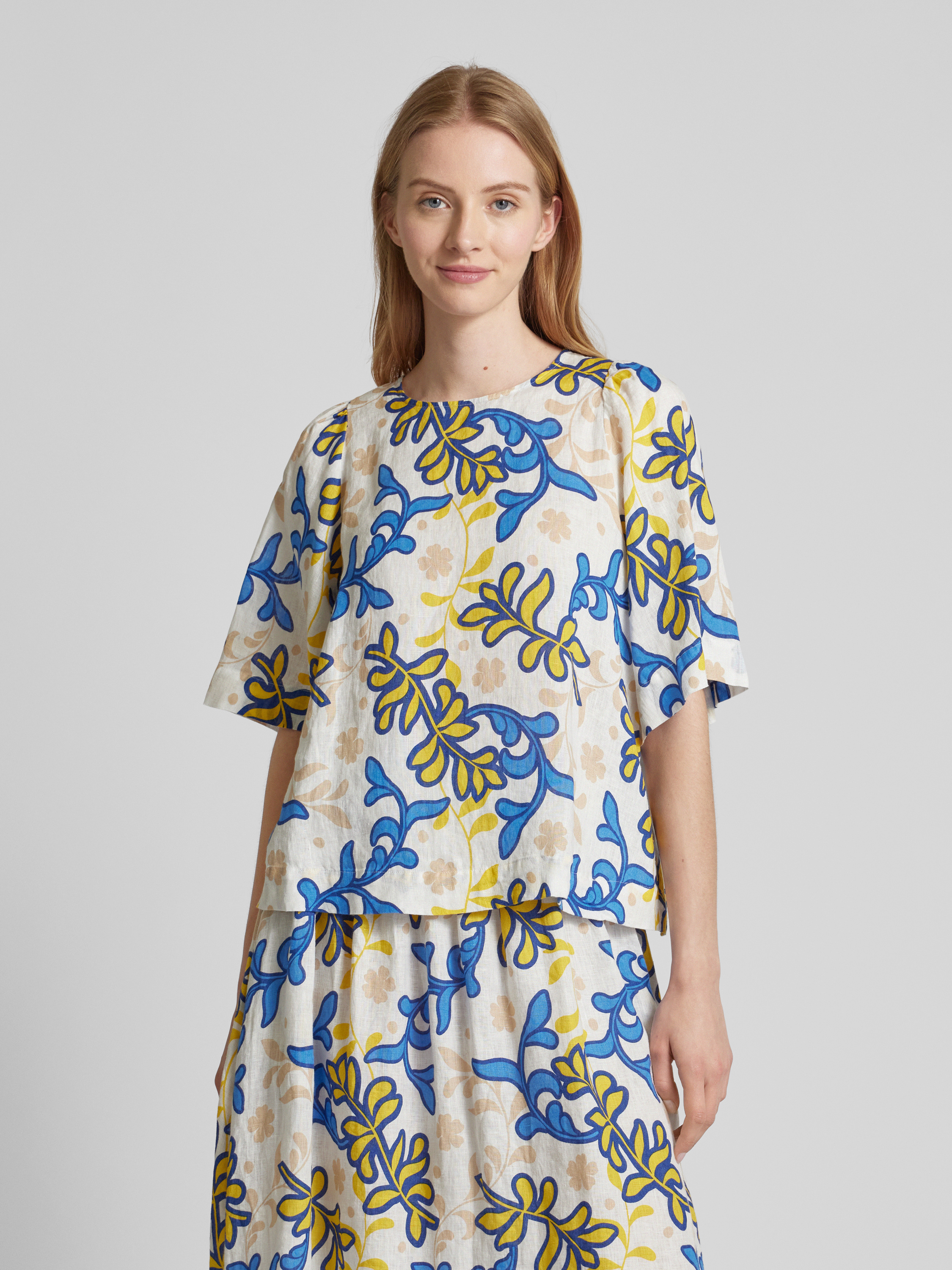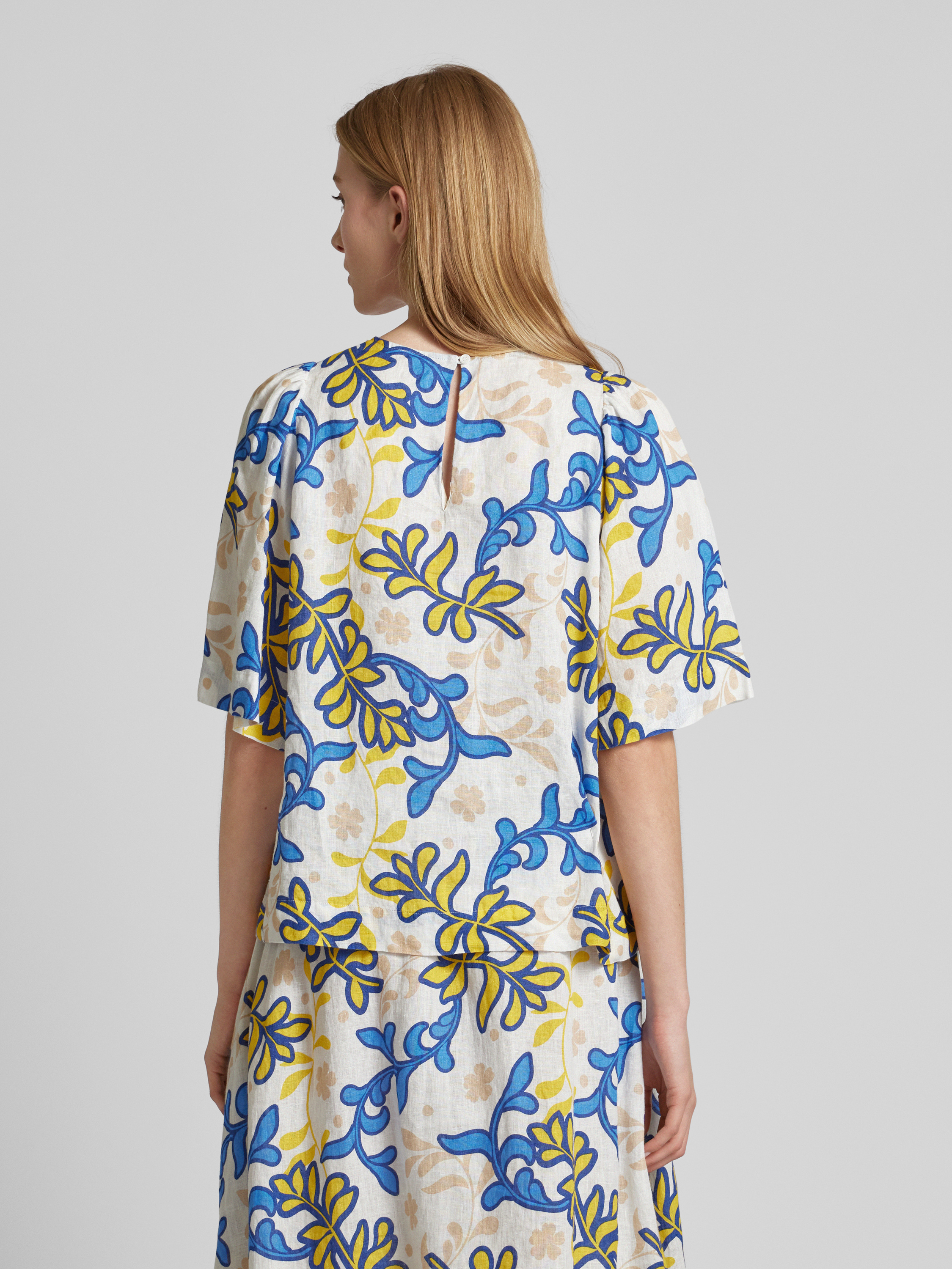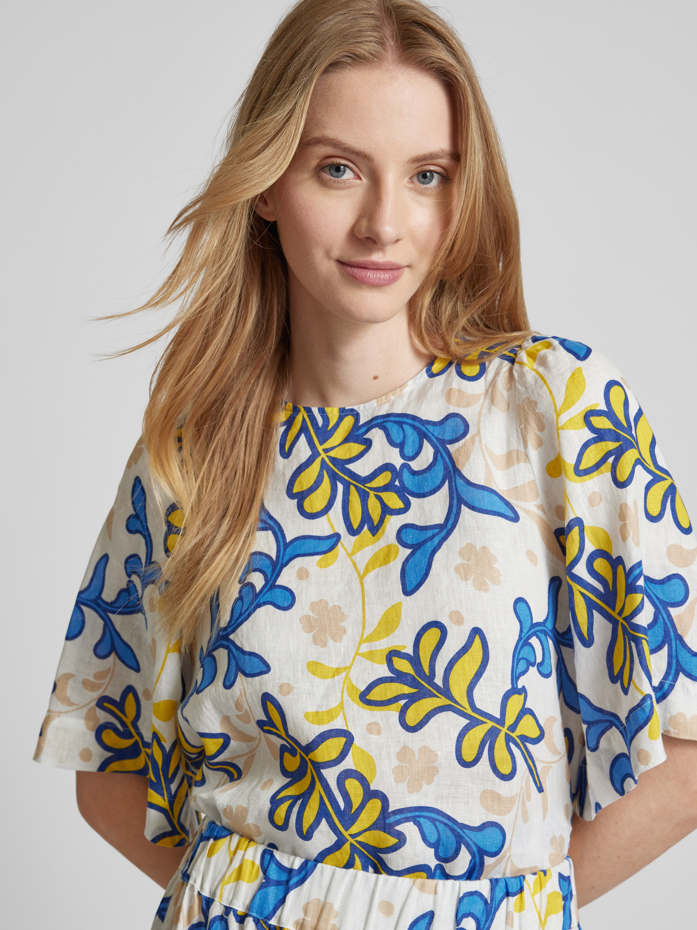 SeidenstickerLinnen blouseshirt met all-over print, model 'Washer!' in wit