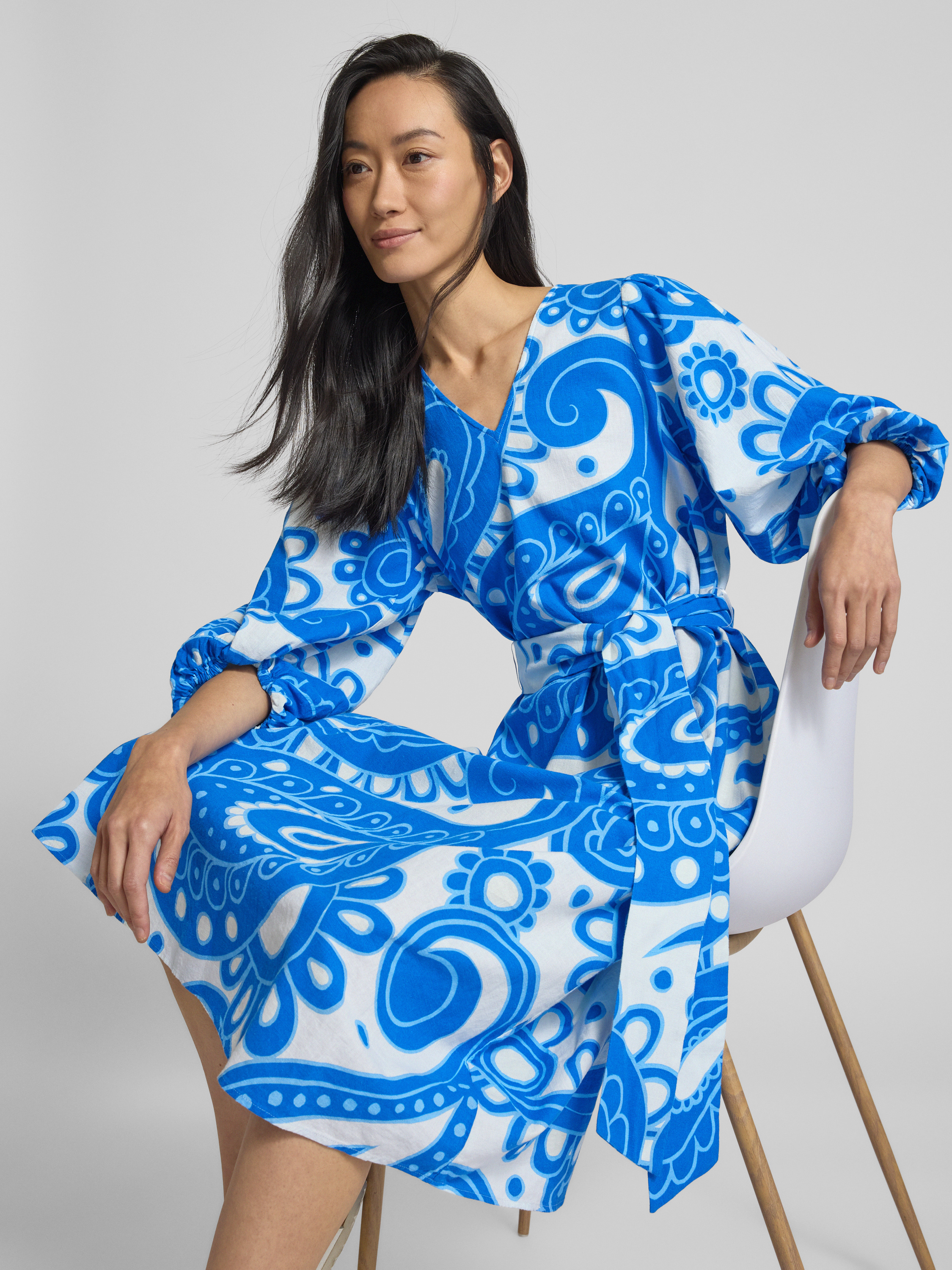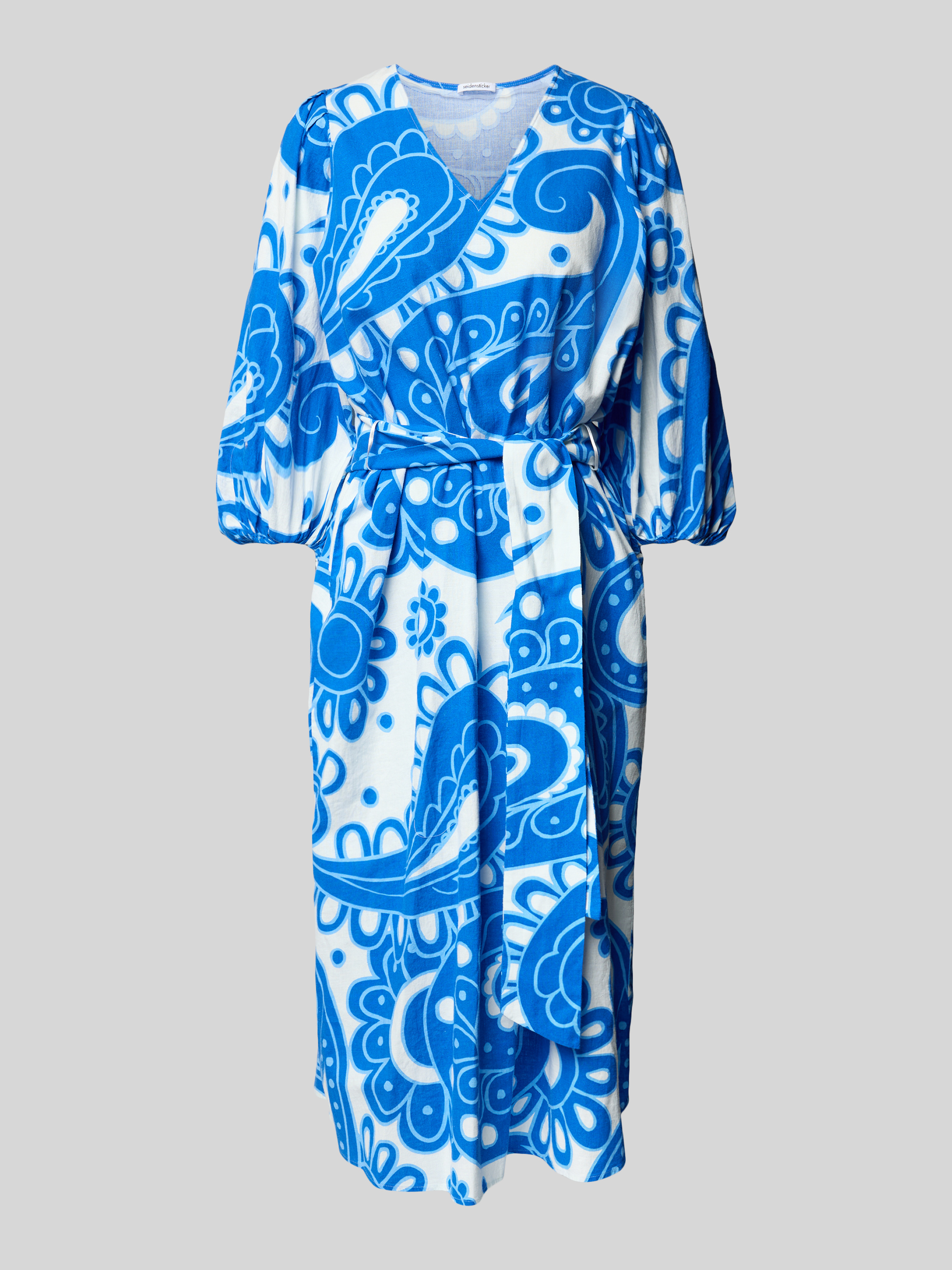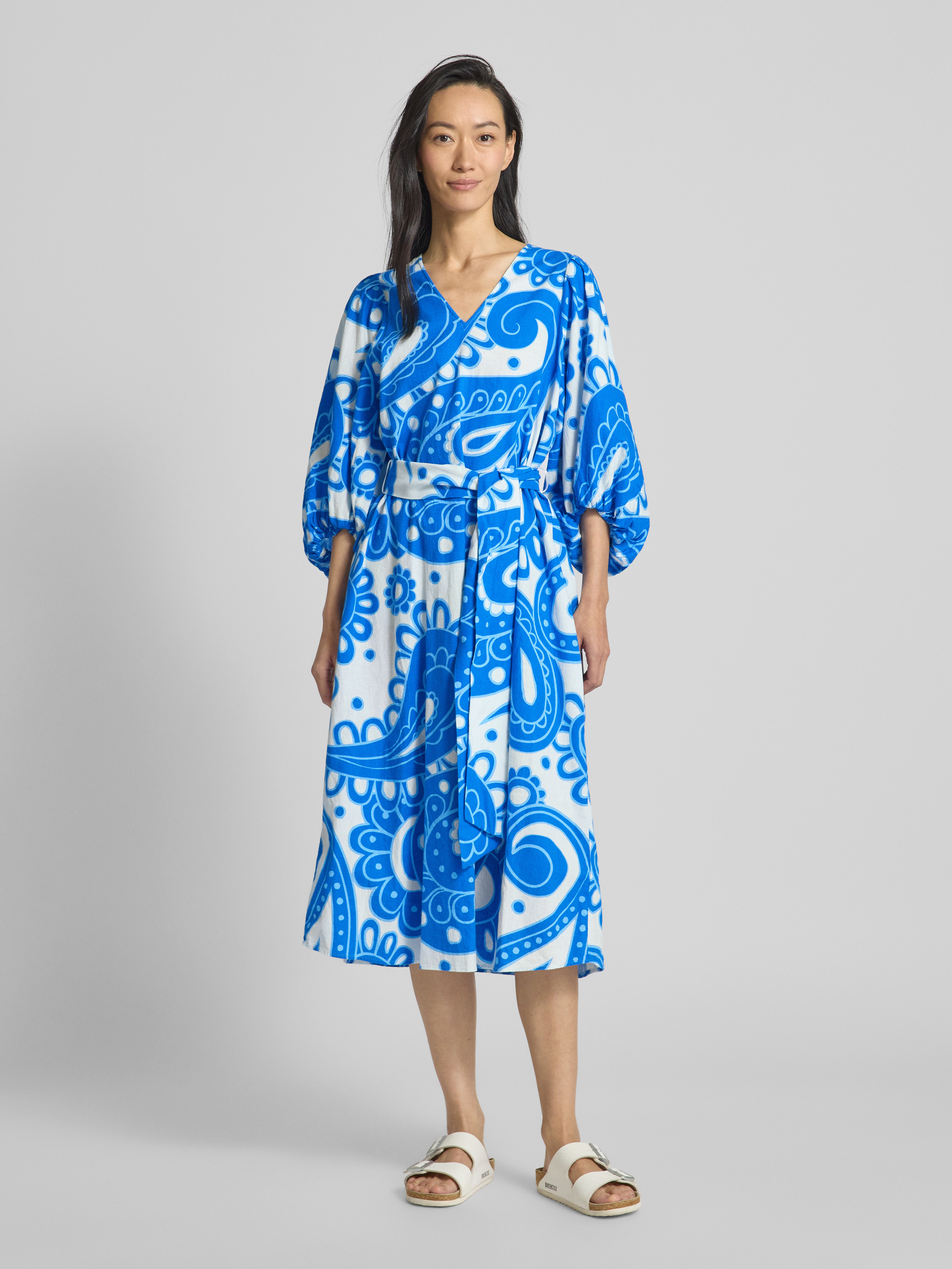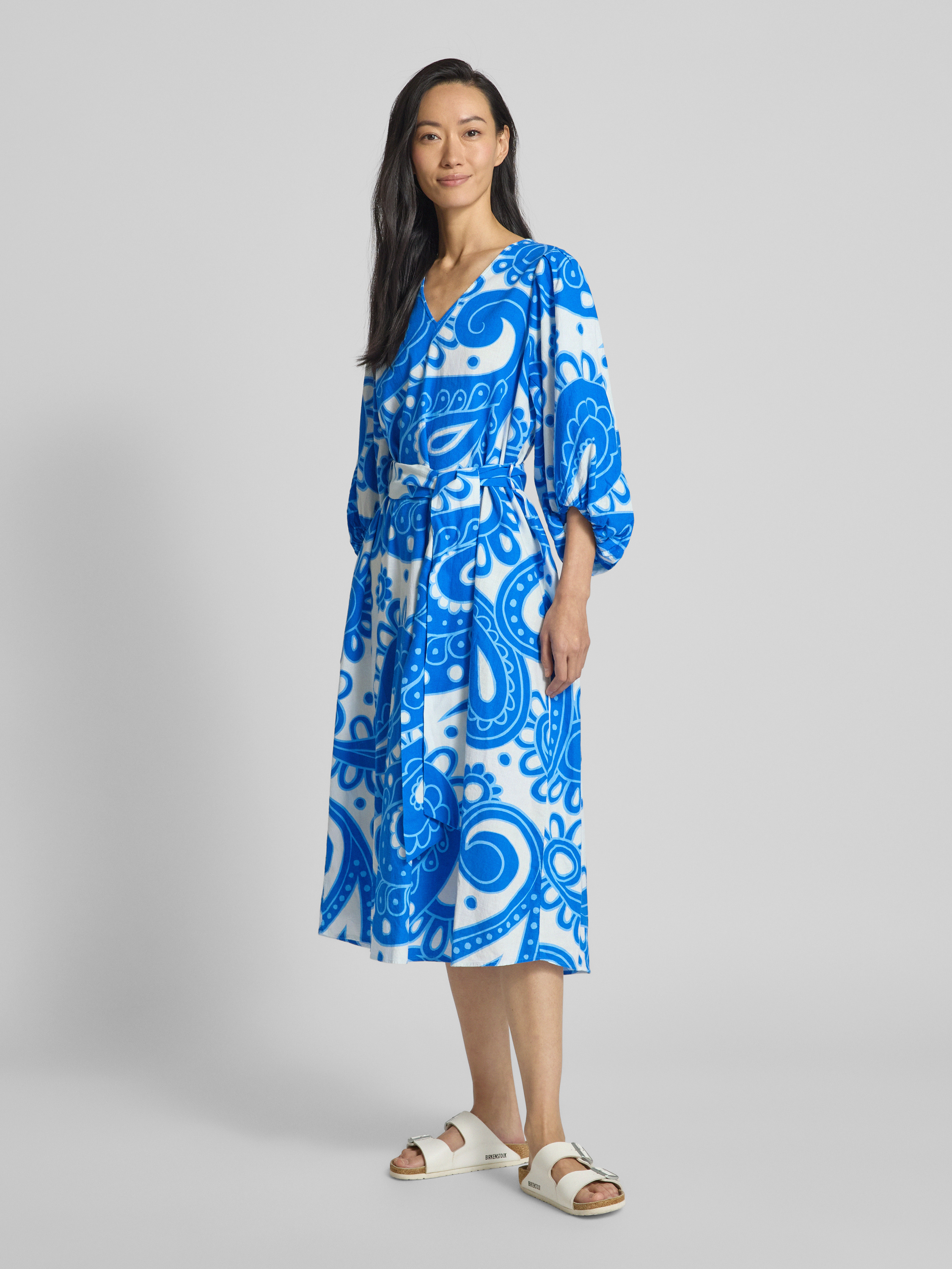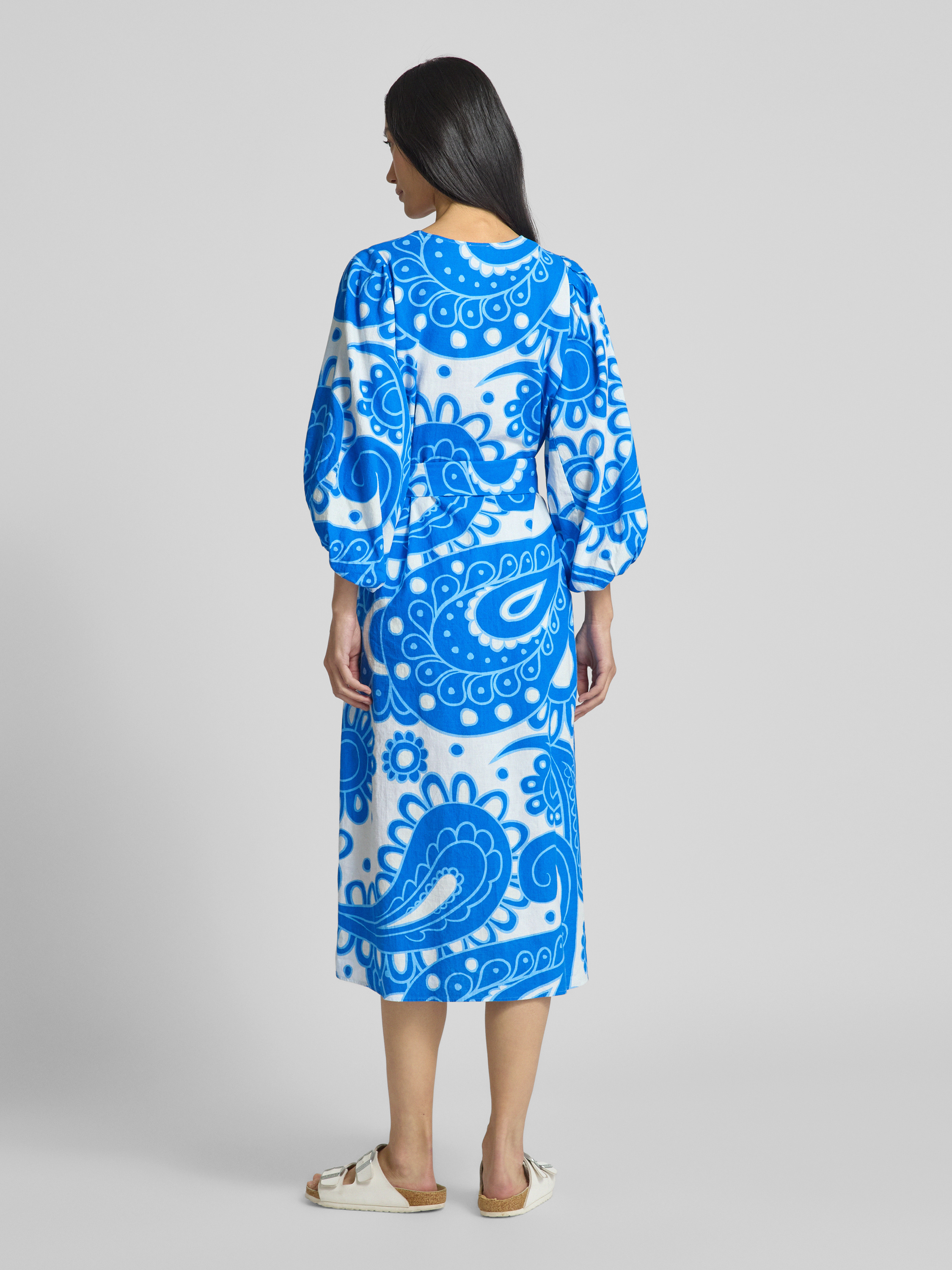 Midi-jurk van een mix van katoen en linnen in koningsblauw