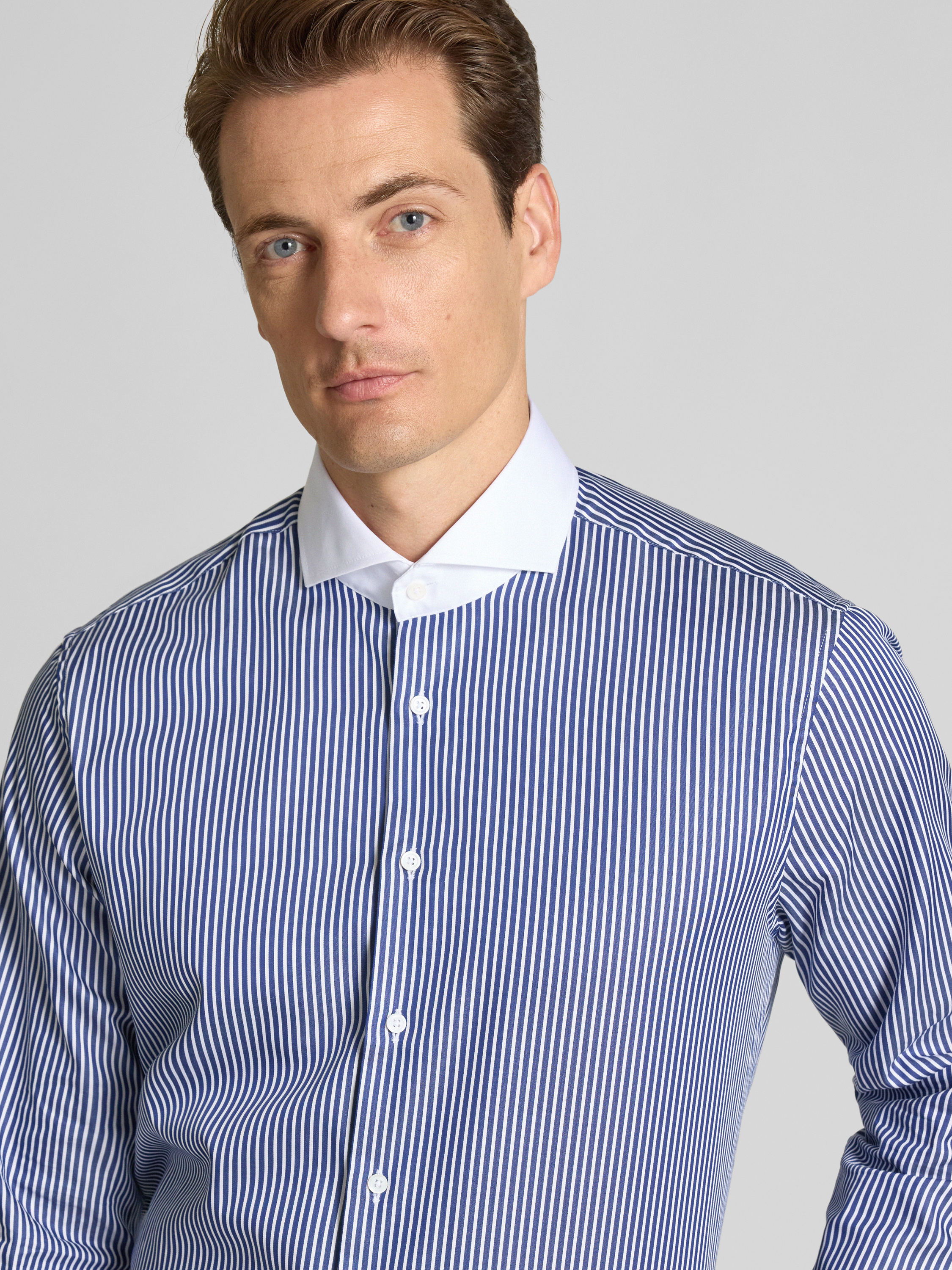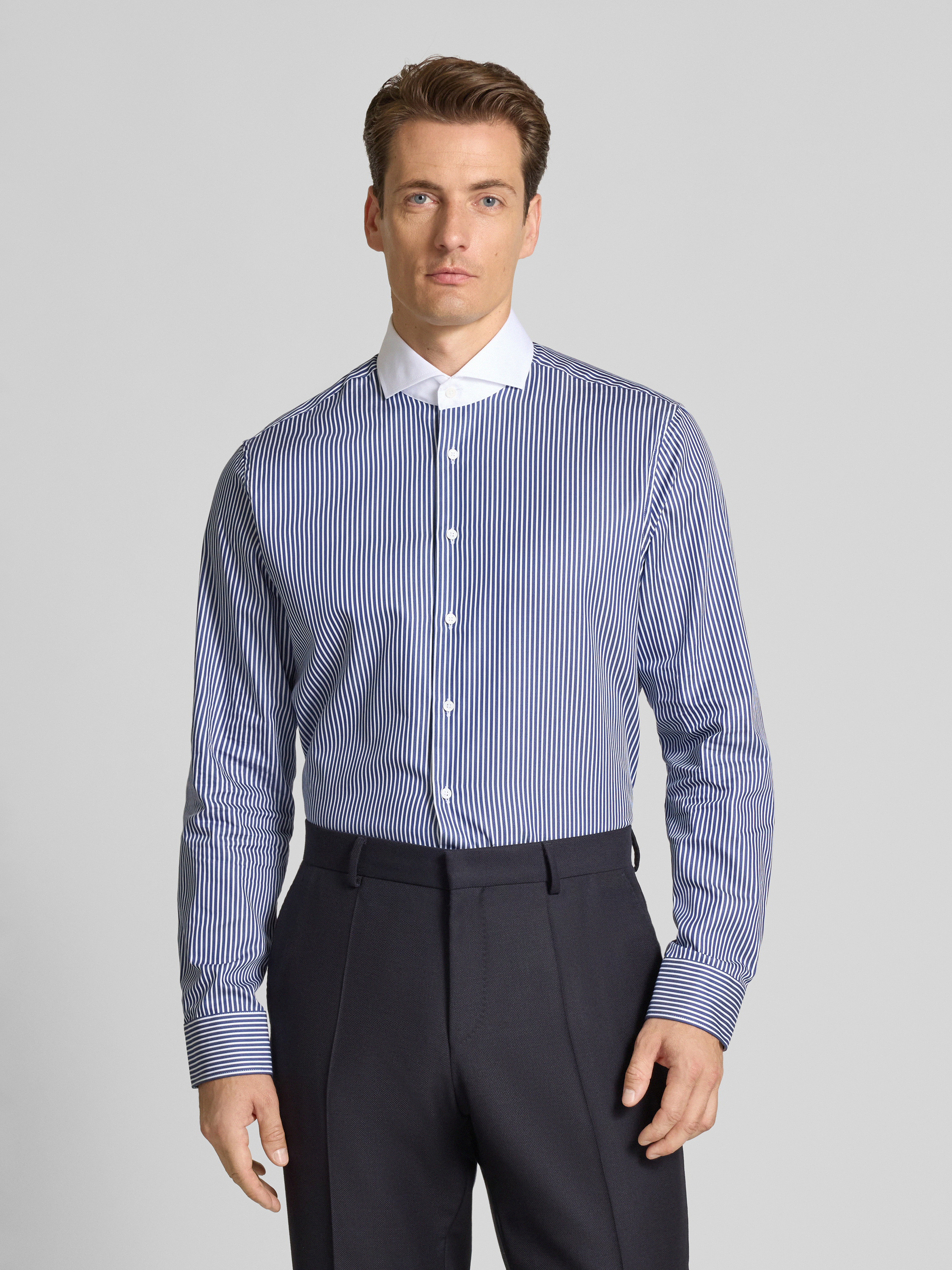 Regular fit vrijetijdsoverhemd met kentkraag, model 'Shark' in marineblauw