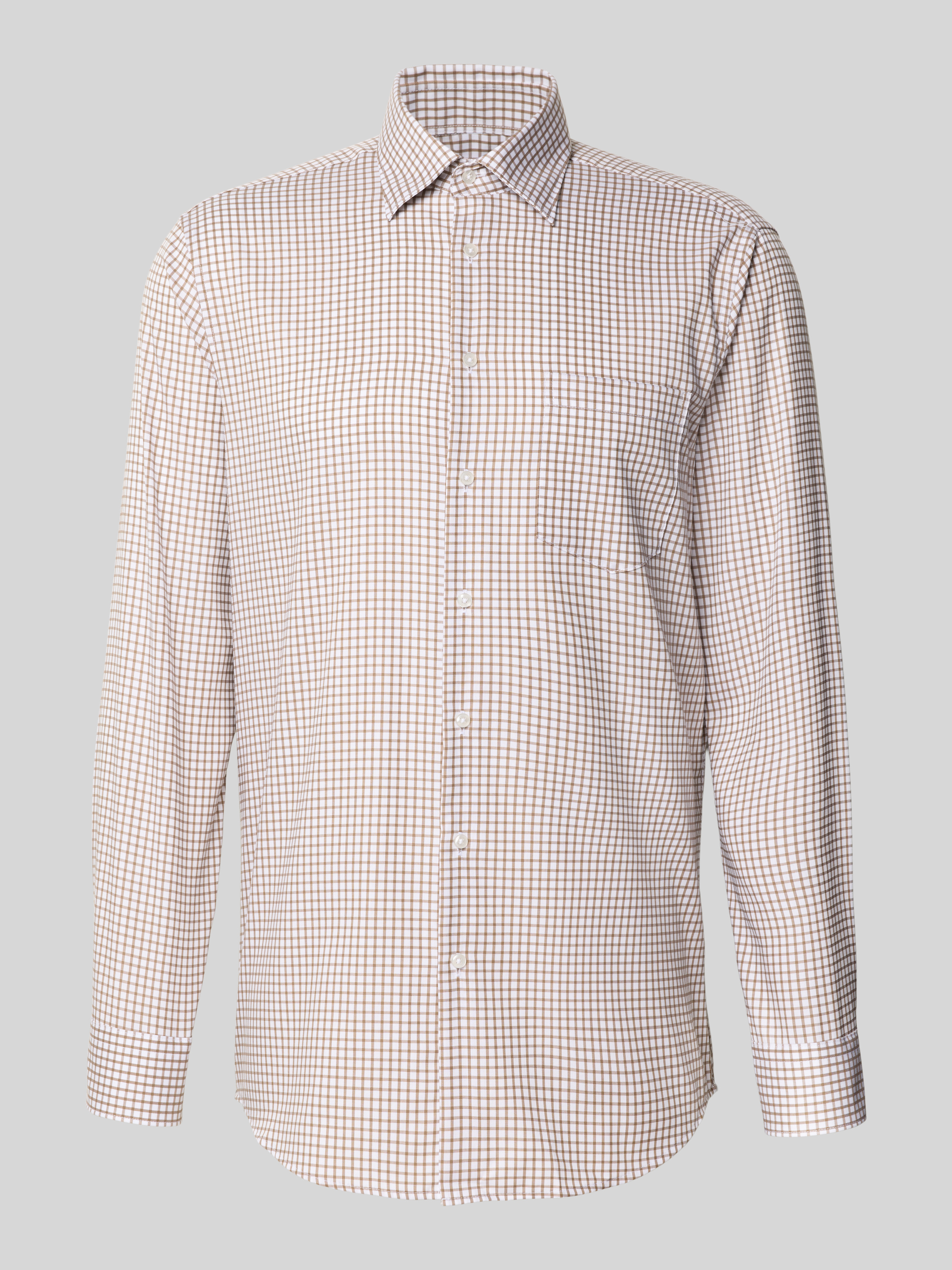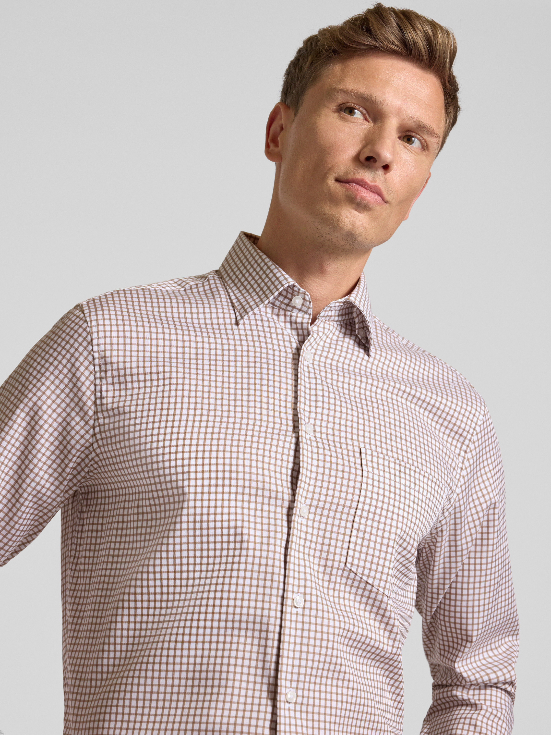 Regular fit zakelijk overhemd met kentkraag en borstzak in beige