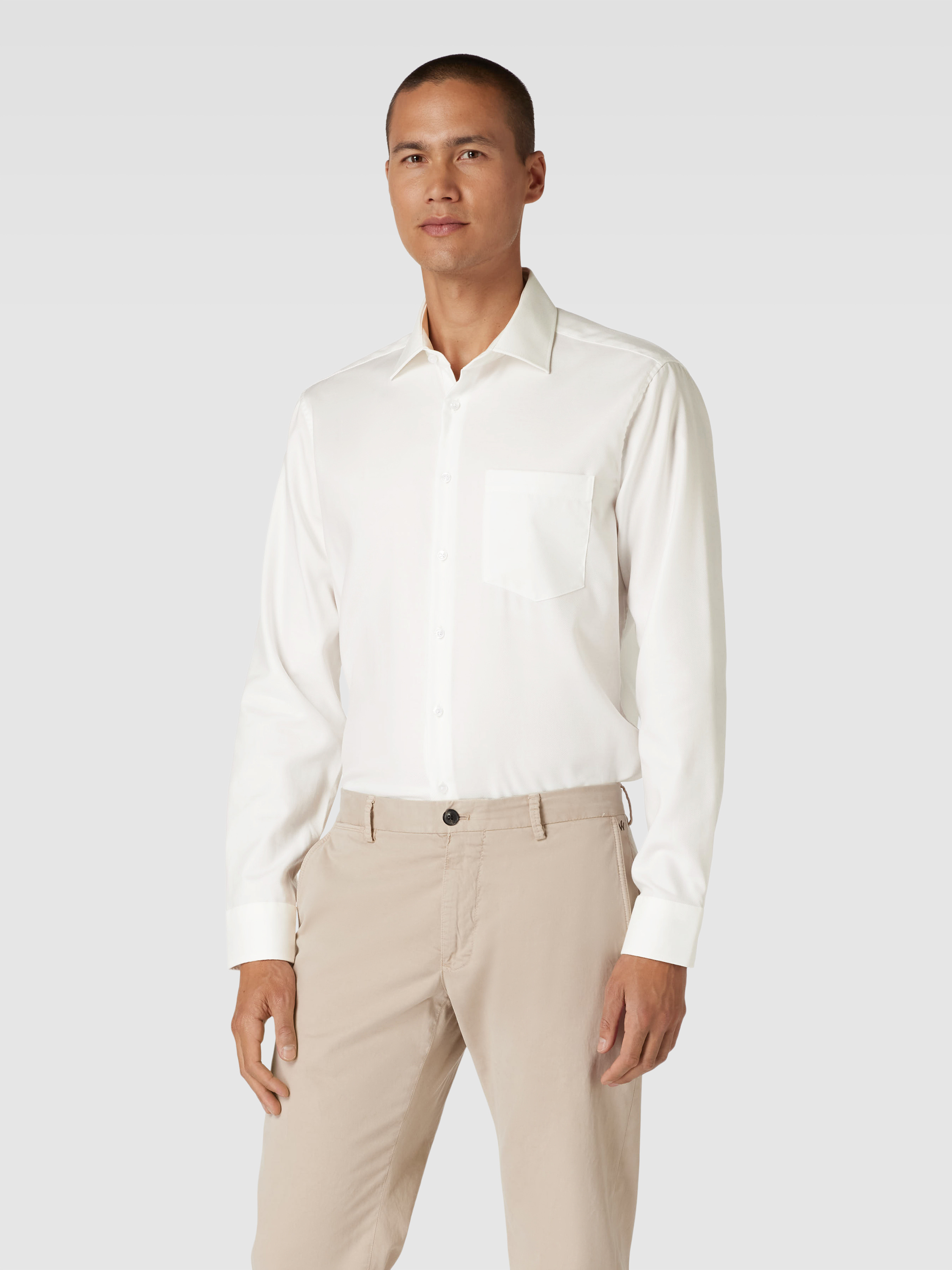 Regular fit zakelijk overhemd van big twill in ecru