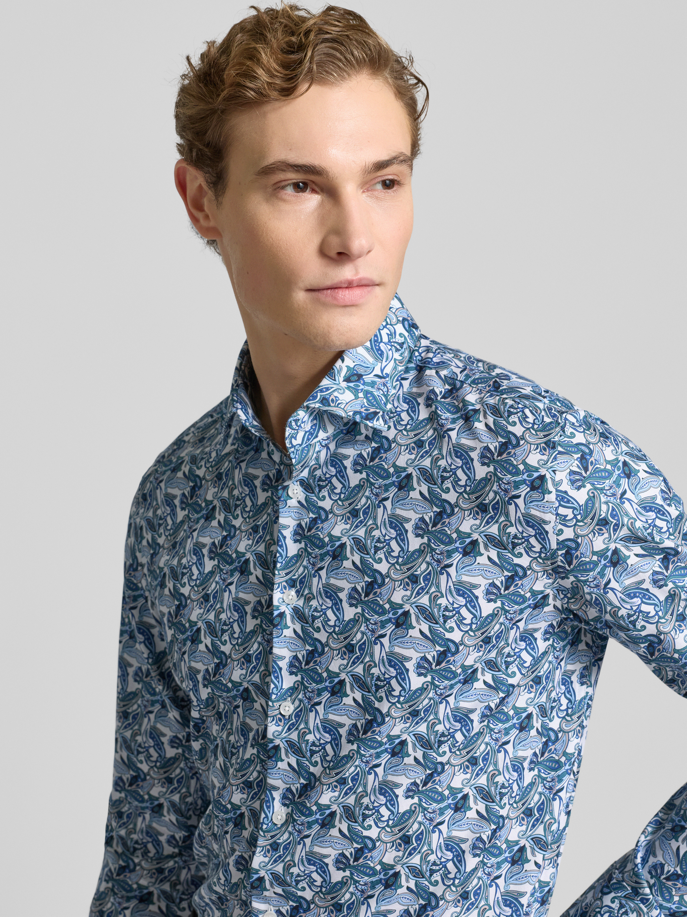 Slim fit zakelijk overhemd van katoen met kentkraag in lichtgroen