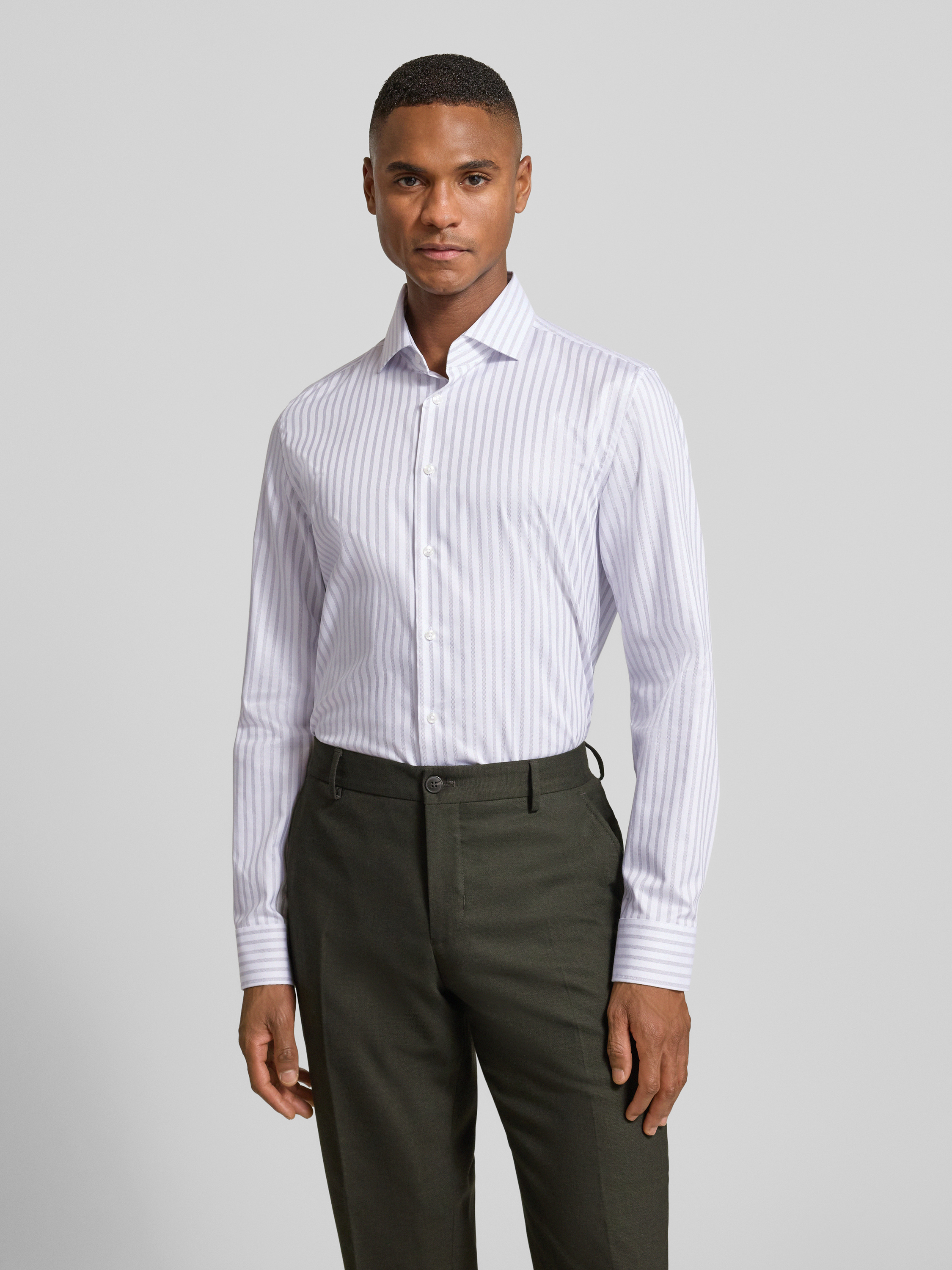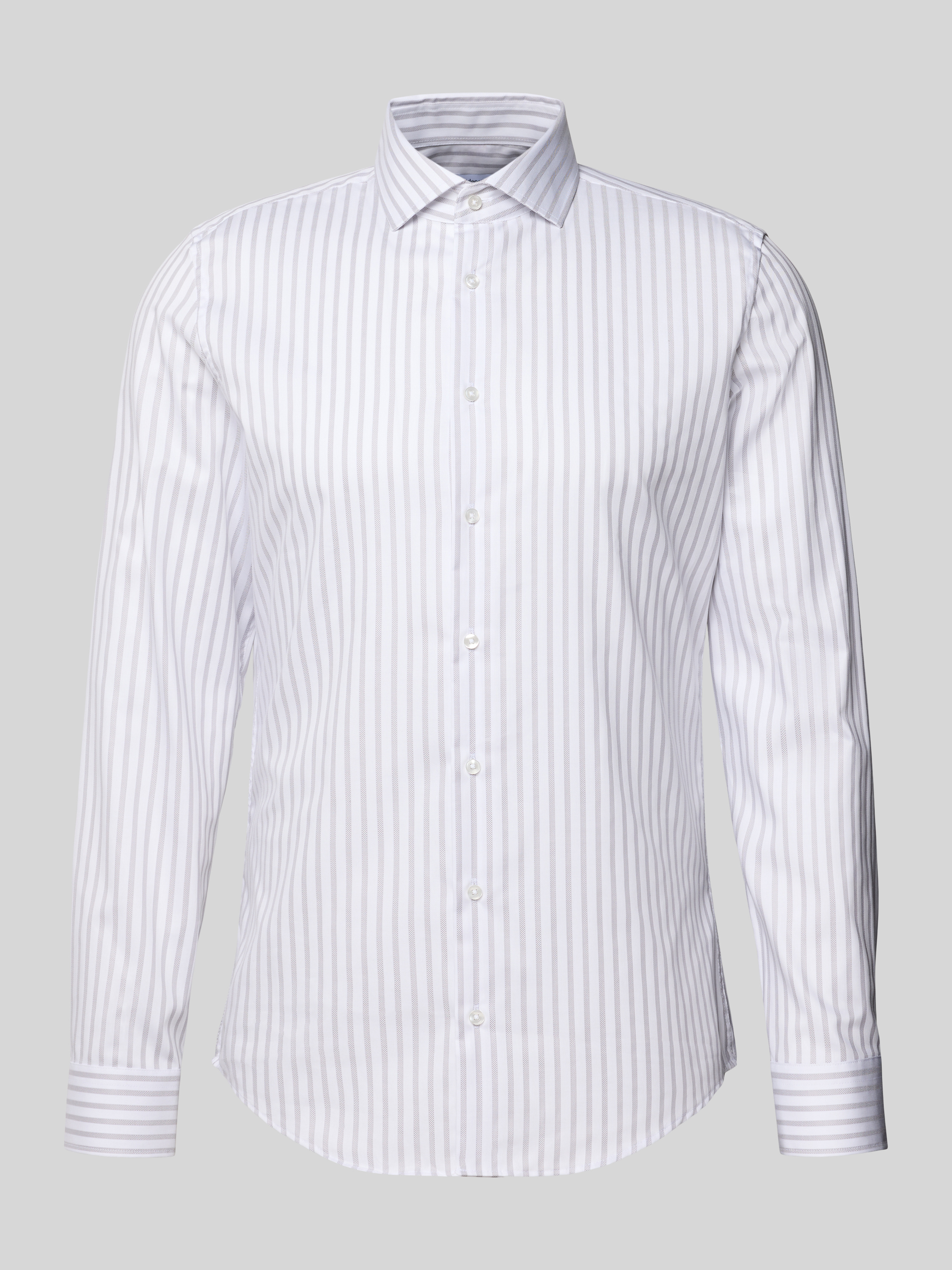 Slim fit zakelijk overhemd van katoen met kentkraag in zilver