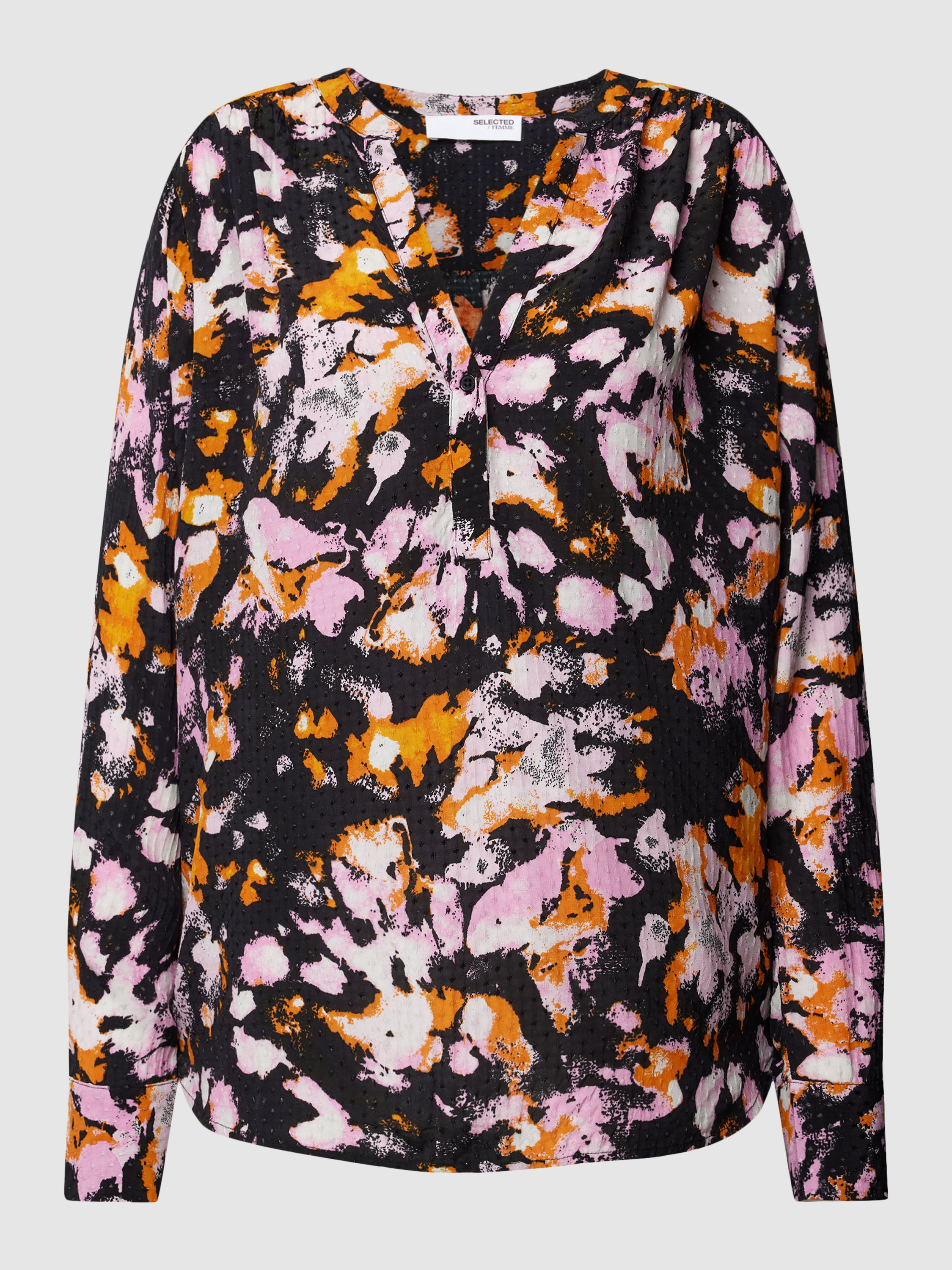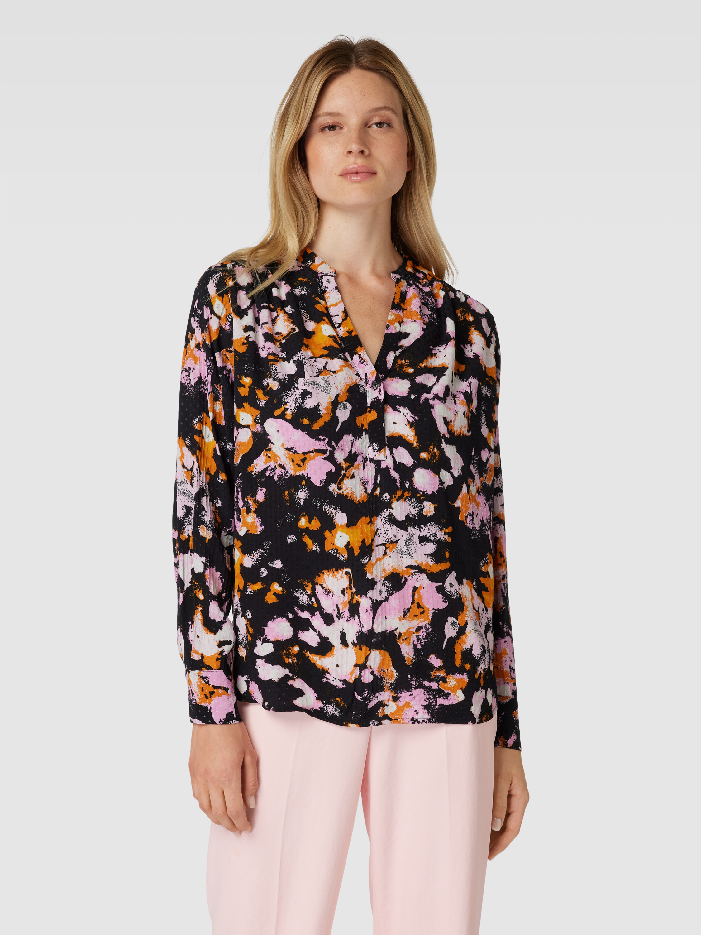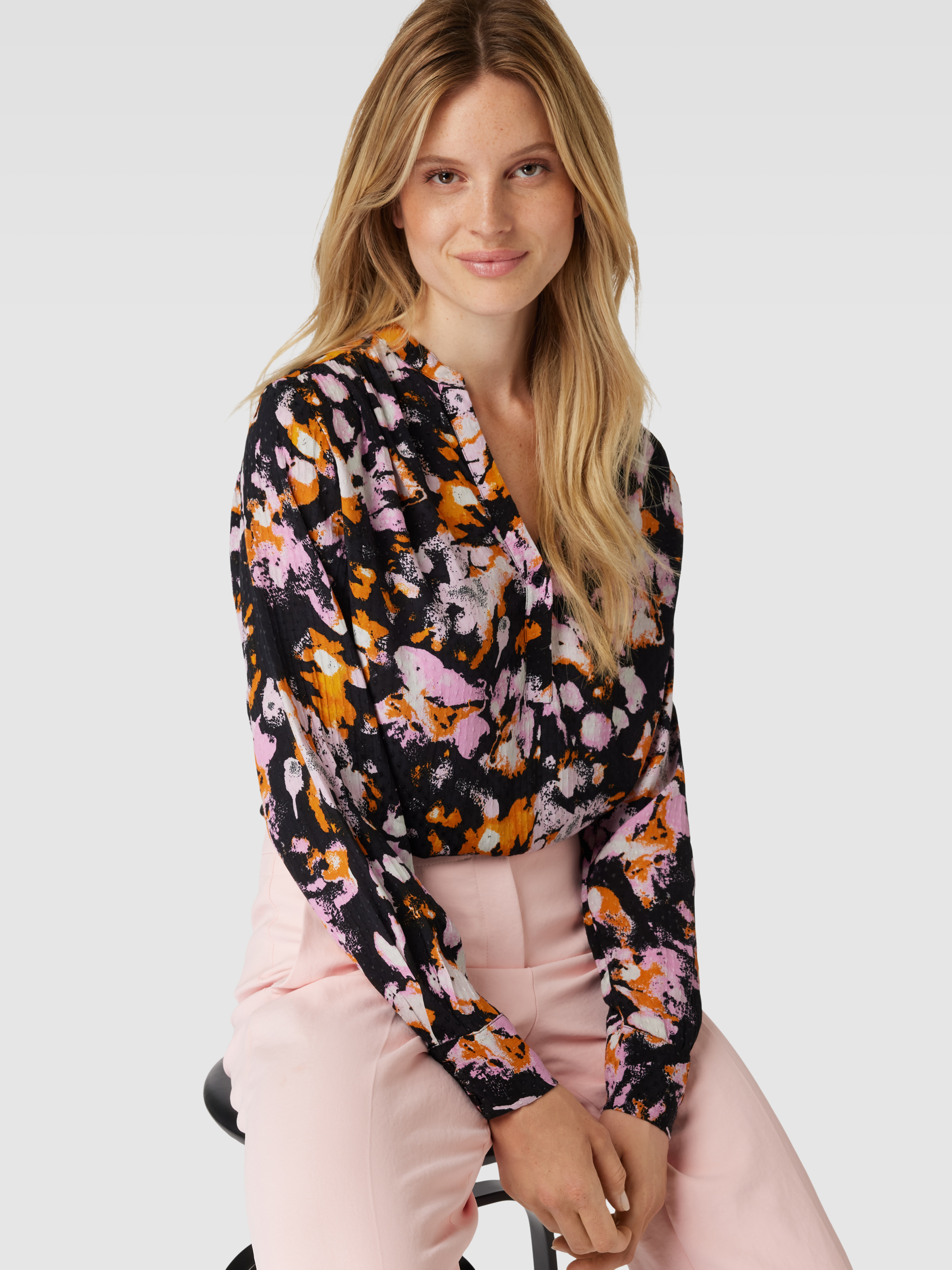 Blouseshirt met all-over motief, model 'IRENE' in zwart