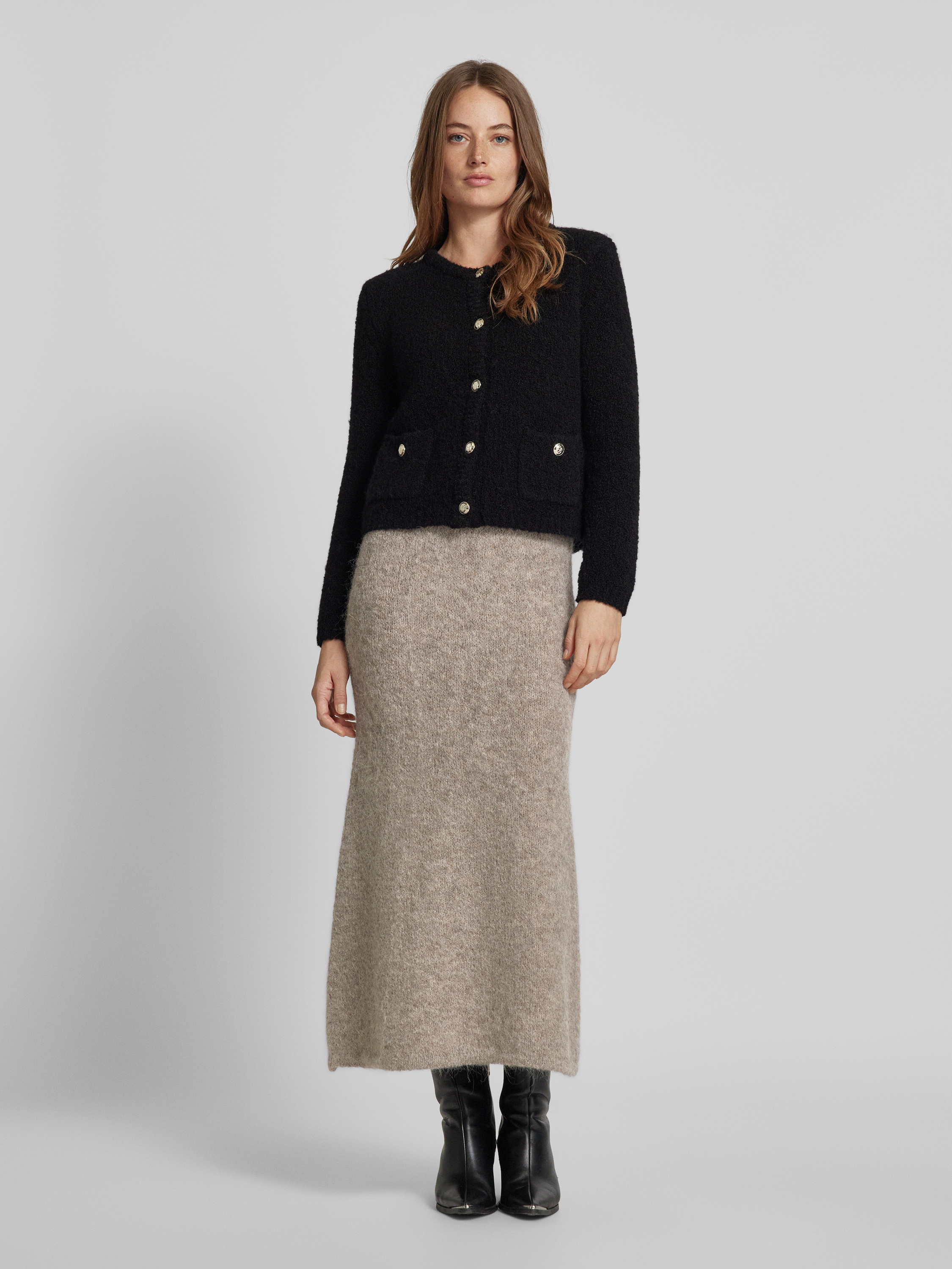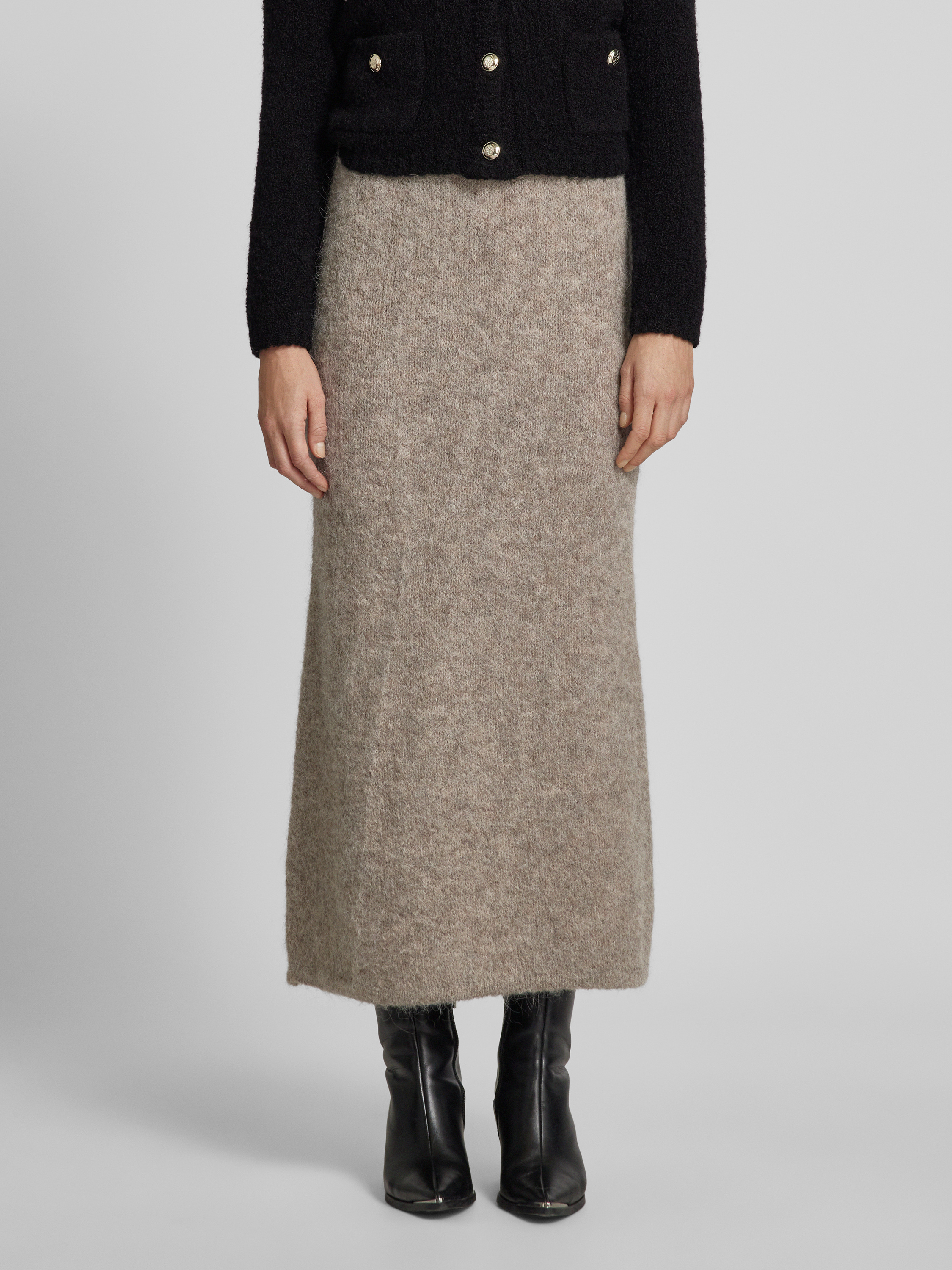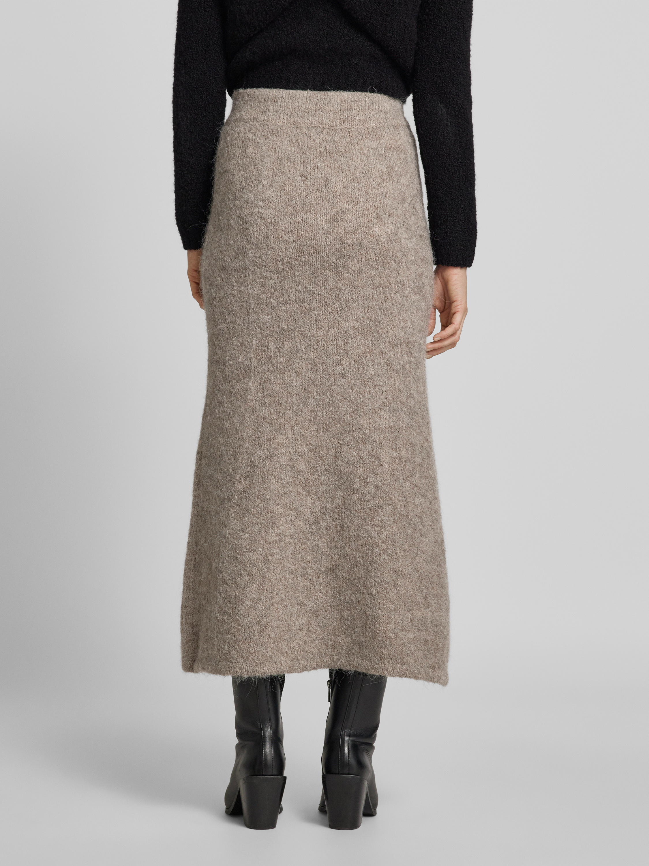 Selected FemmeGebreide rok met elastische band, model 'GABELLA' in antraciet gemêleerd