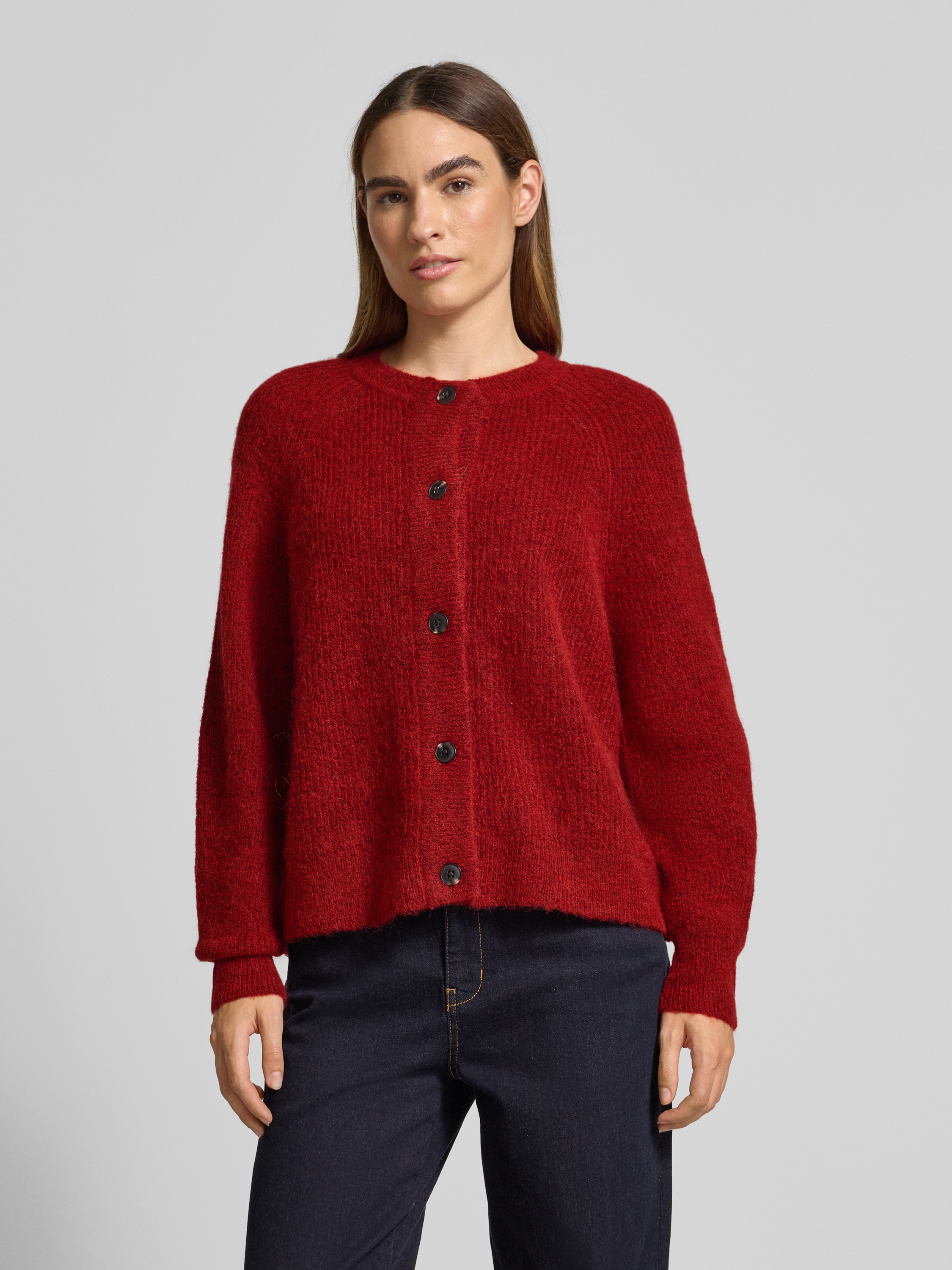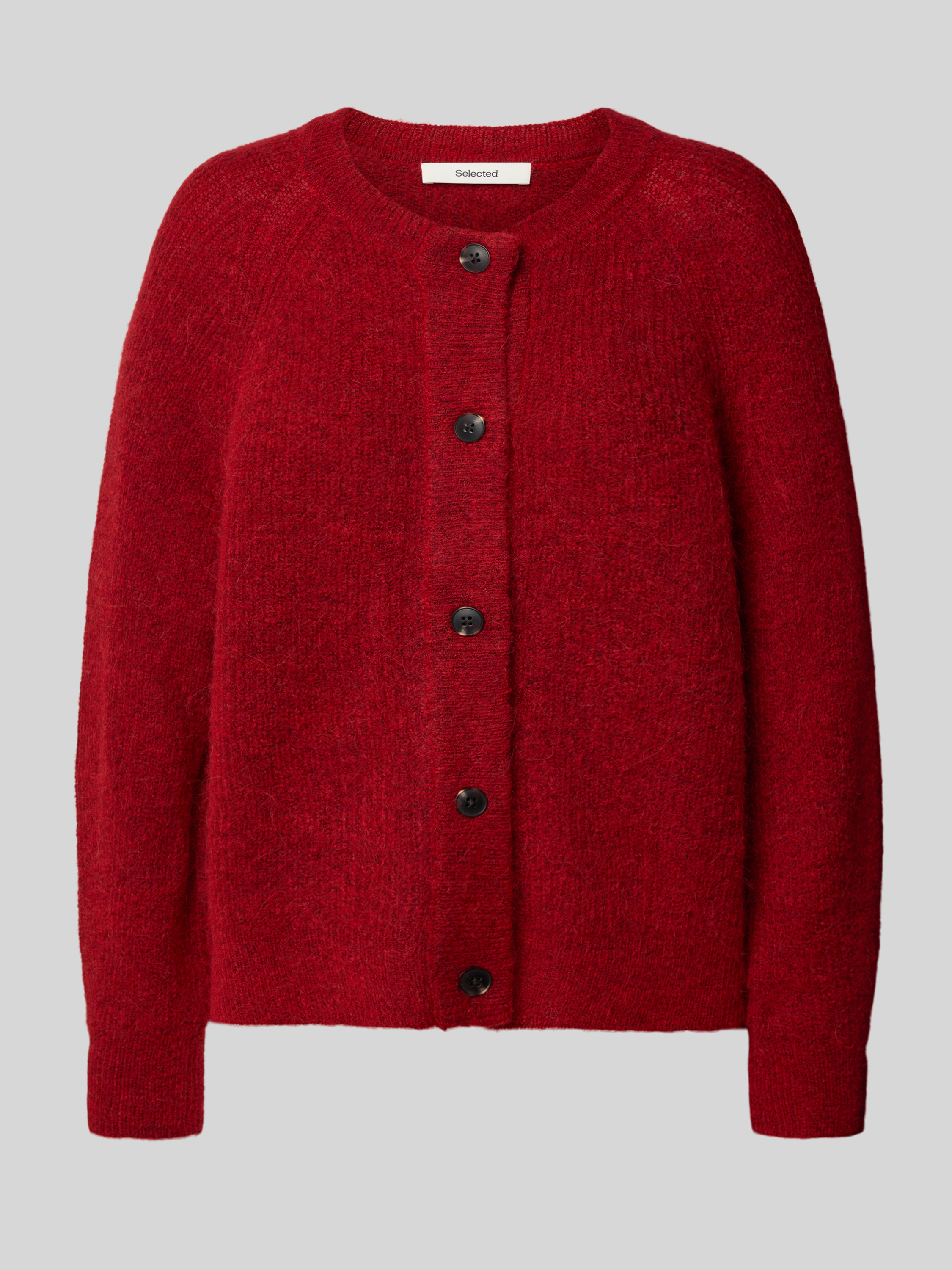 Regular fit gebreid jack van wolmix met alpaca, model 'LULU' in rood
