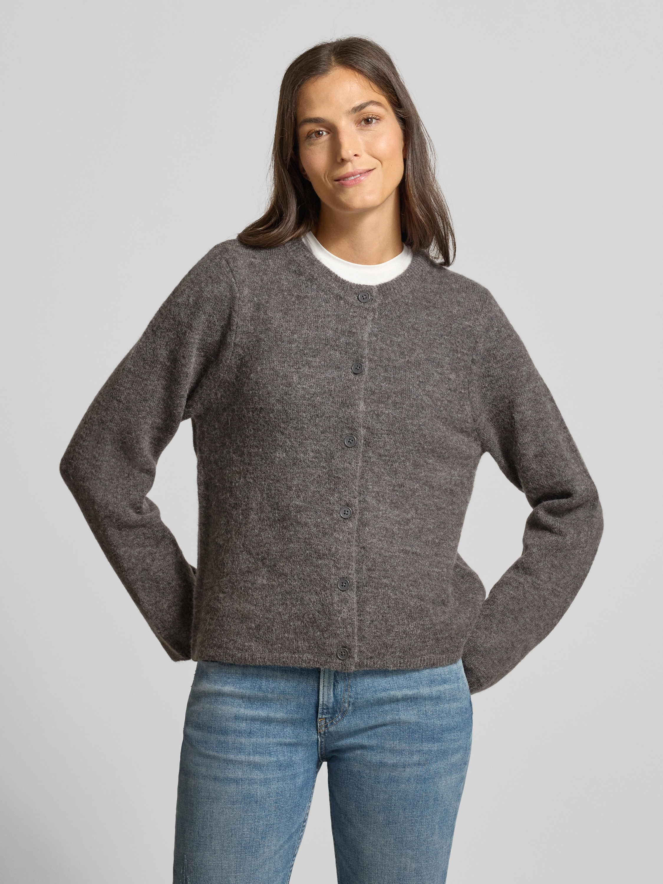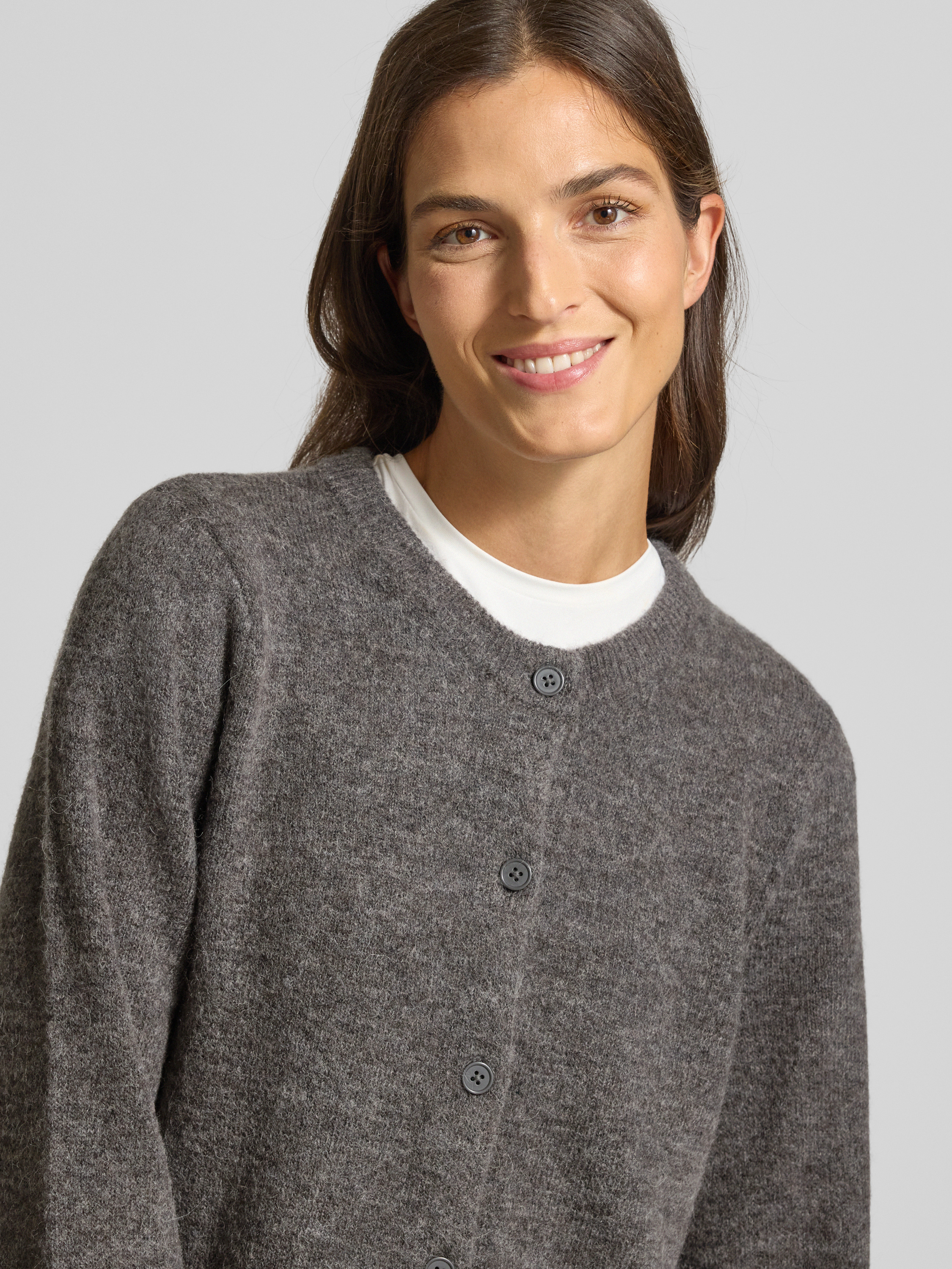 Regular fit gebreid jack van wolmix, model 'LULU' in middengrijs
