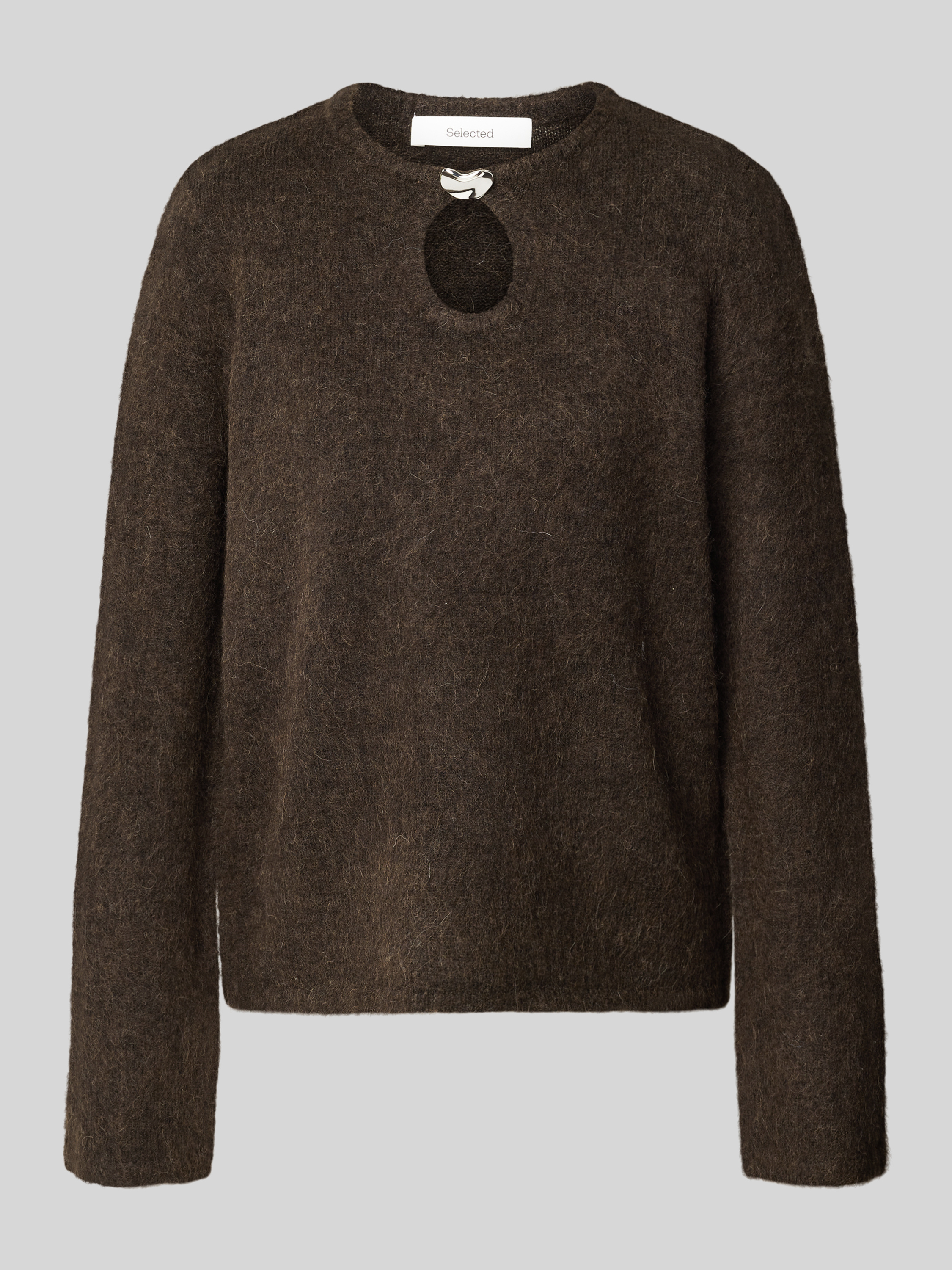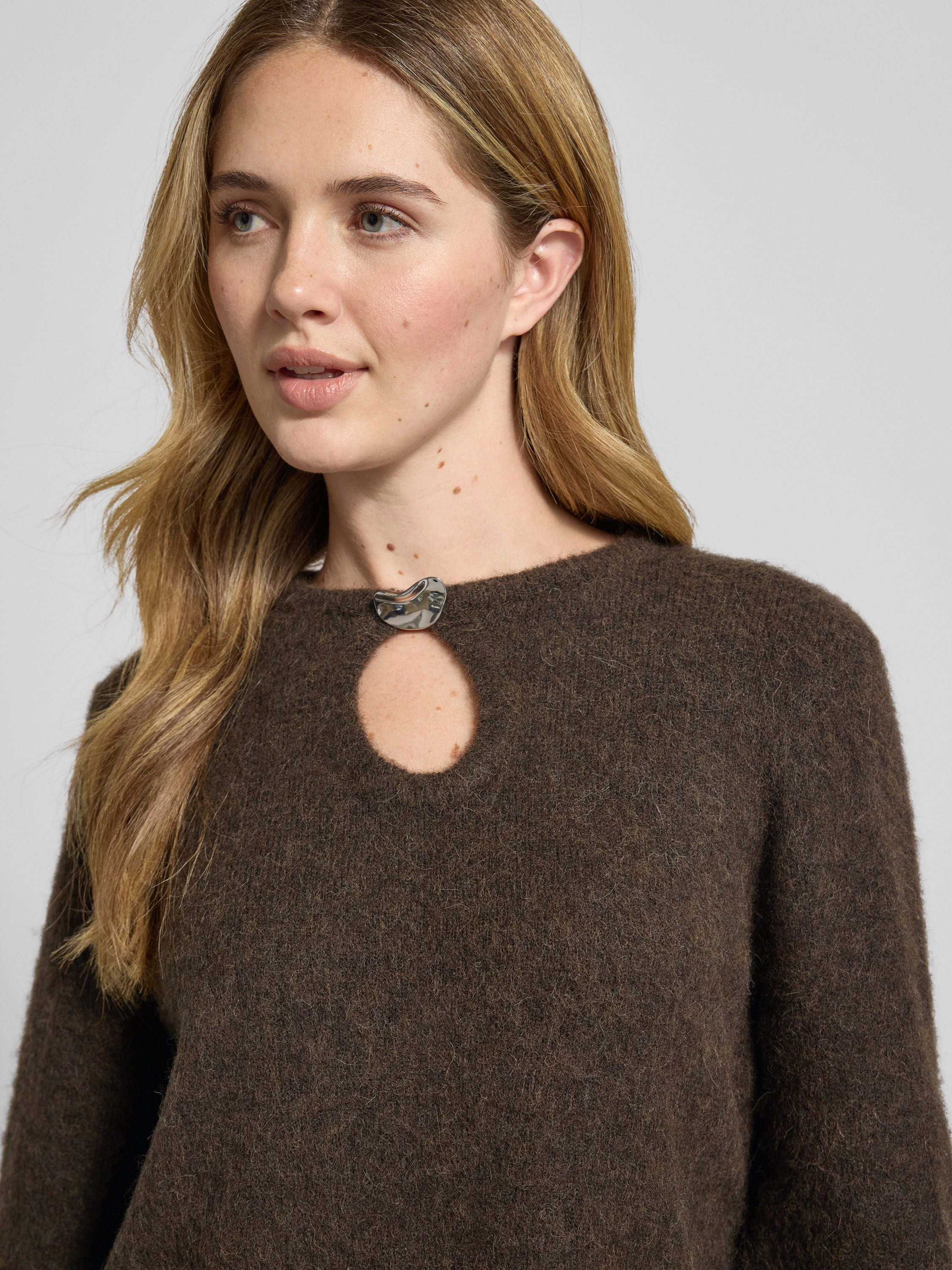 Relaxed fit pullover van wolmix met alpaca, model 'LULU' in donkerbruin
