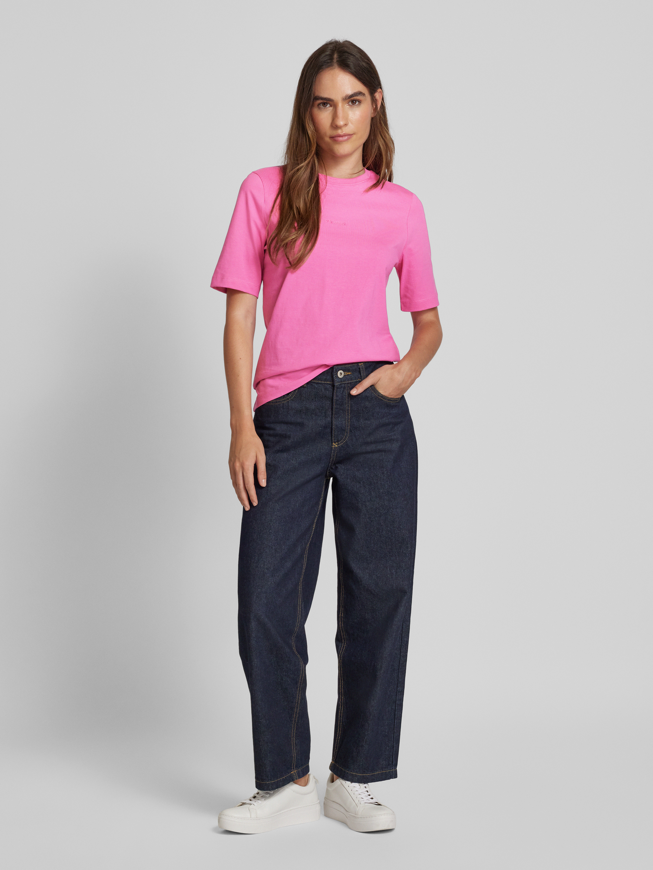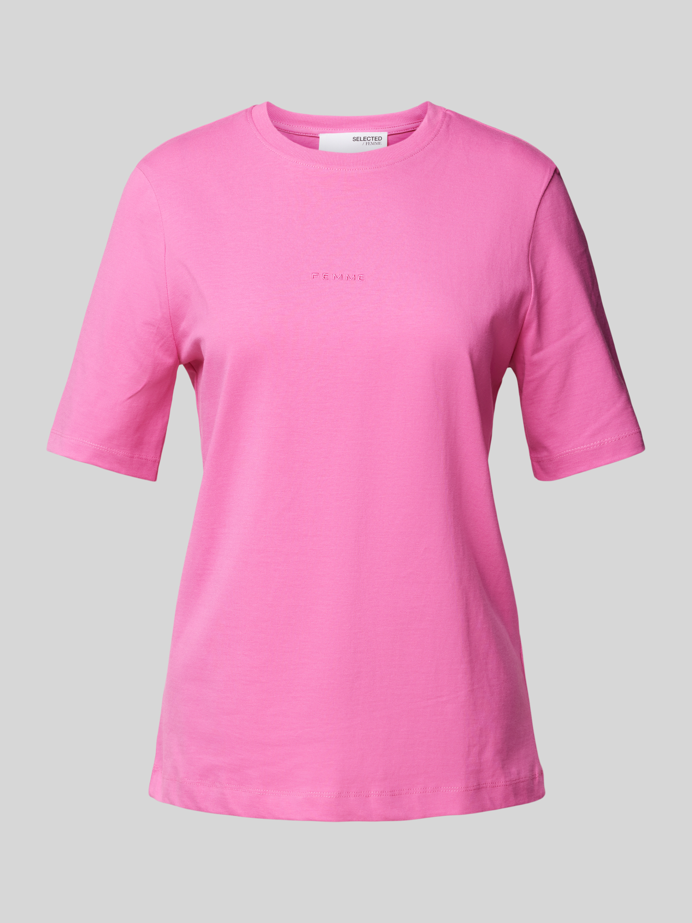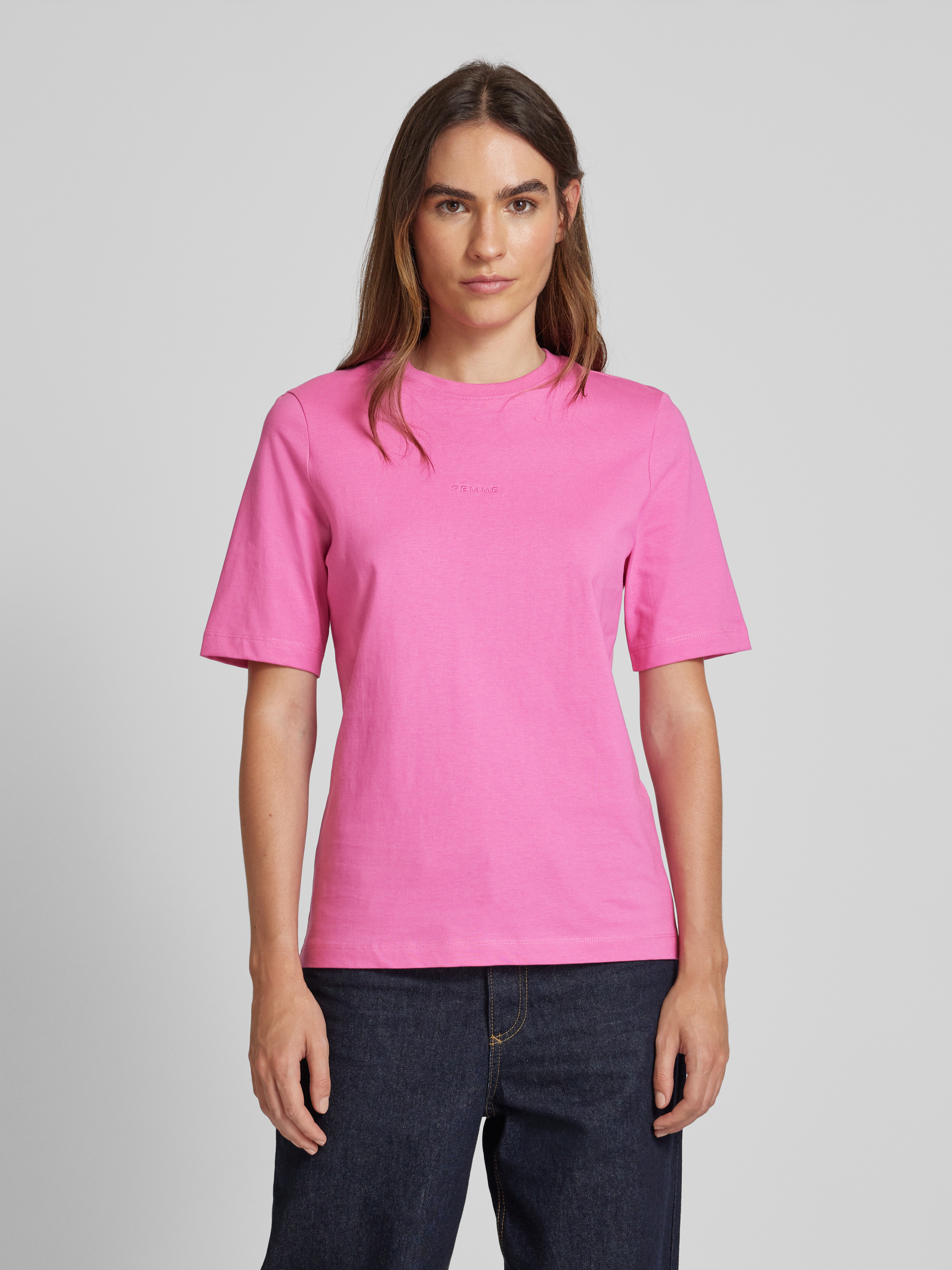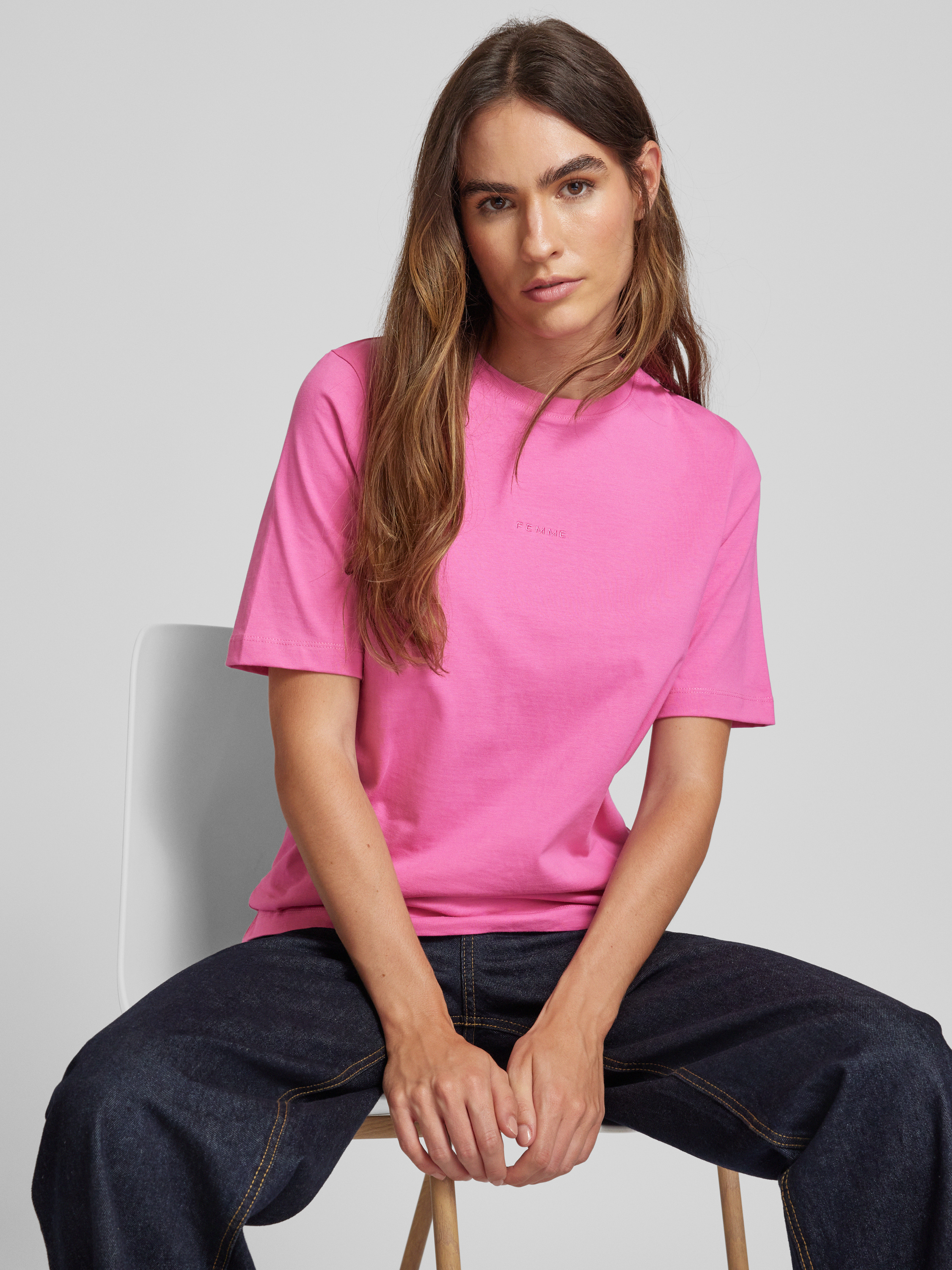 T-shirt met labelstitching, model 'SIGNE-HANKIE' in felroze