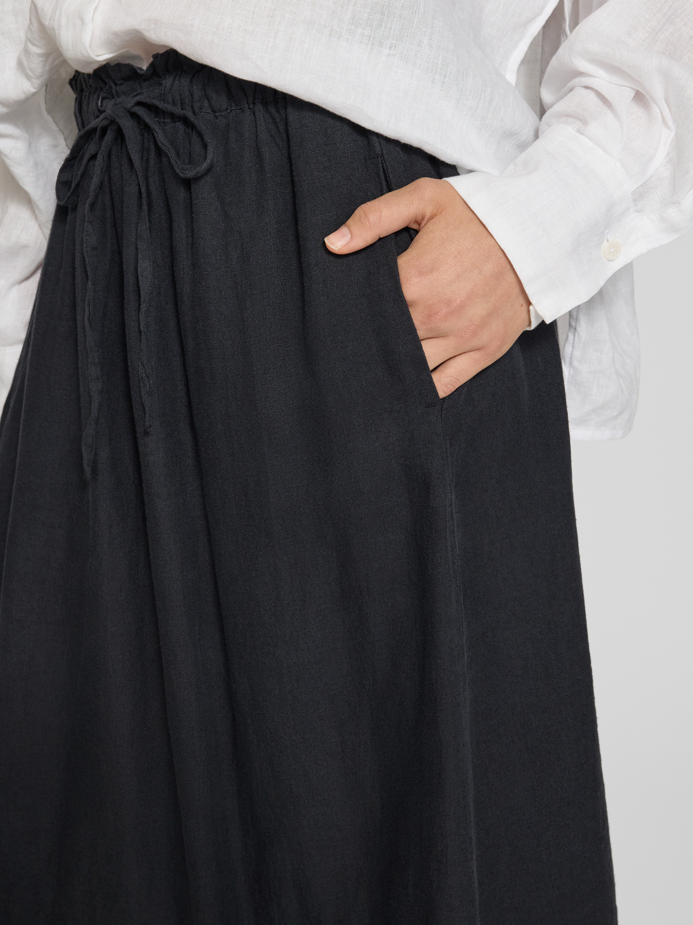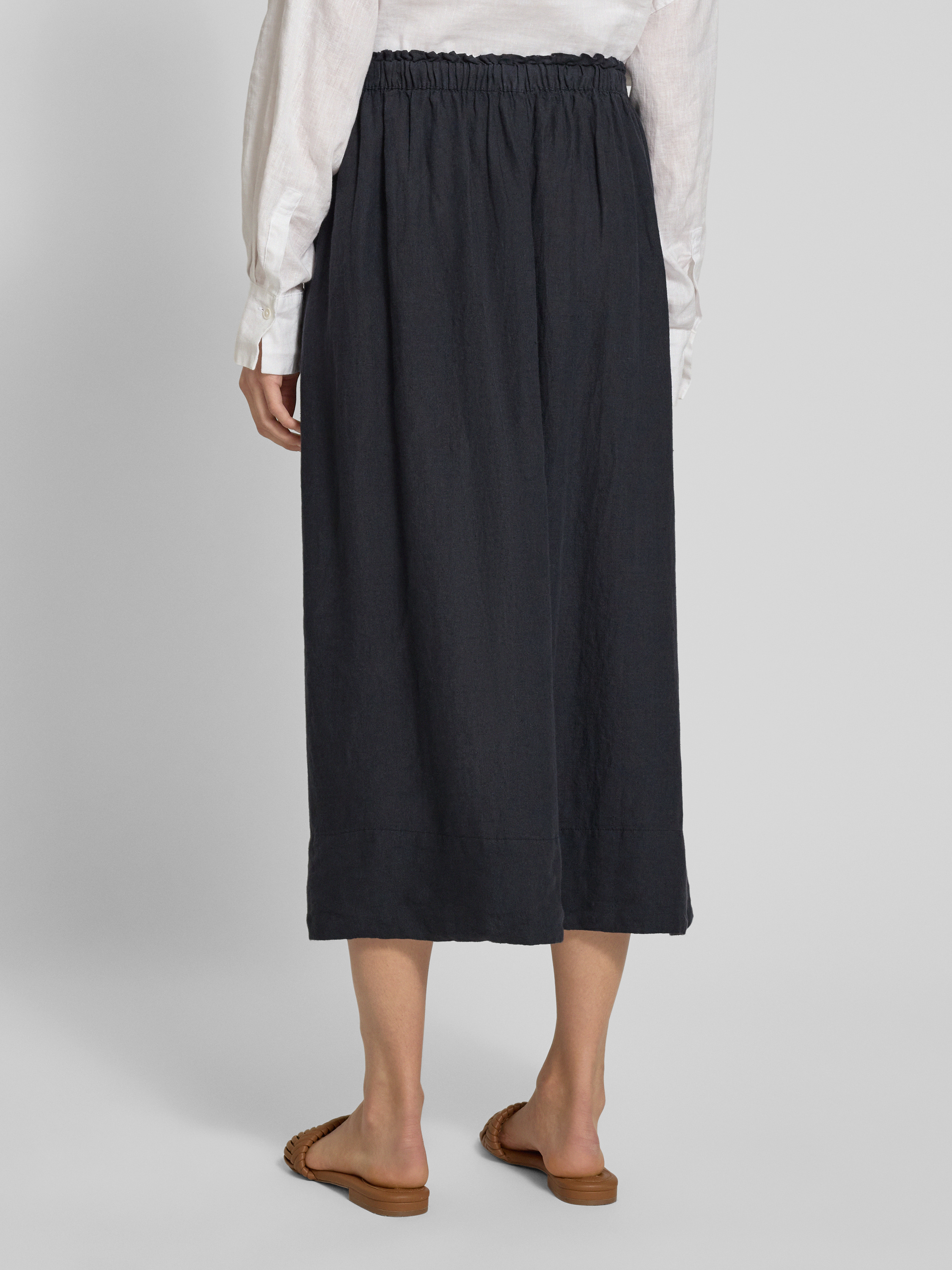 Uitlopende midirok van puur linnen, model 'INNA' in zwart