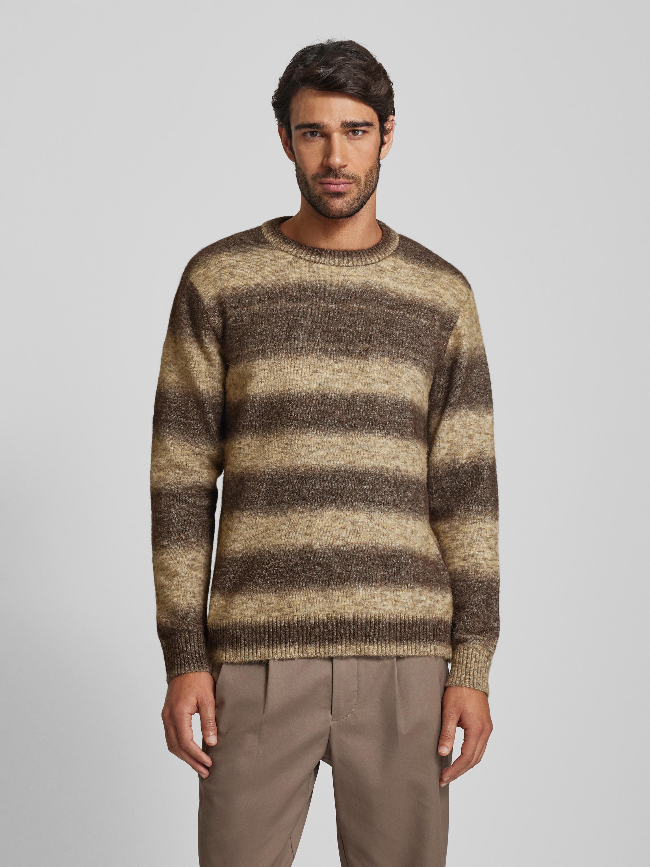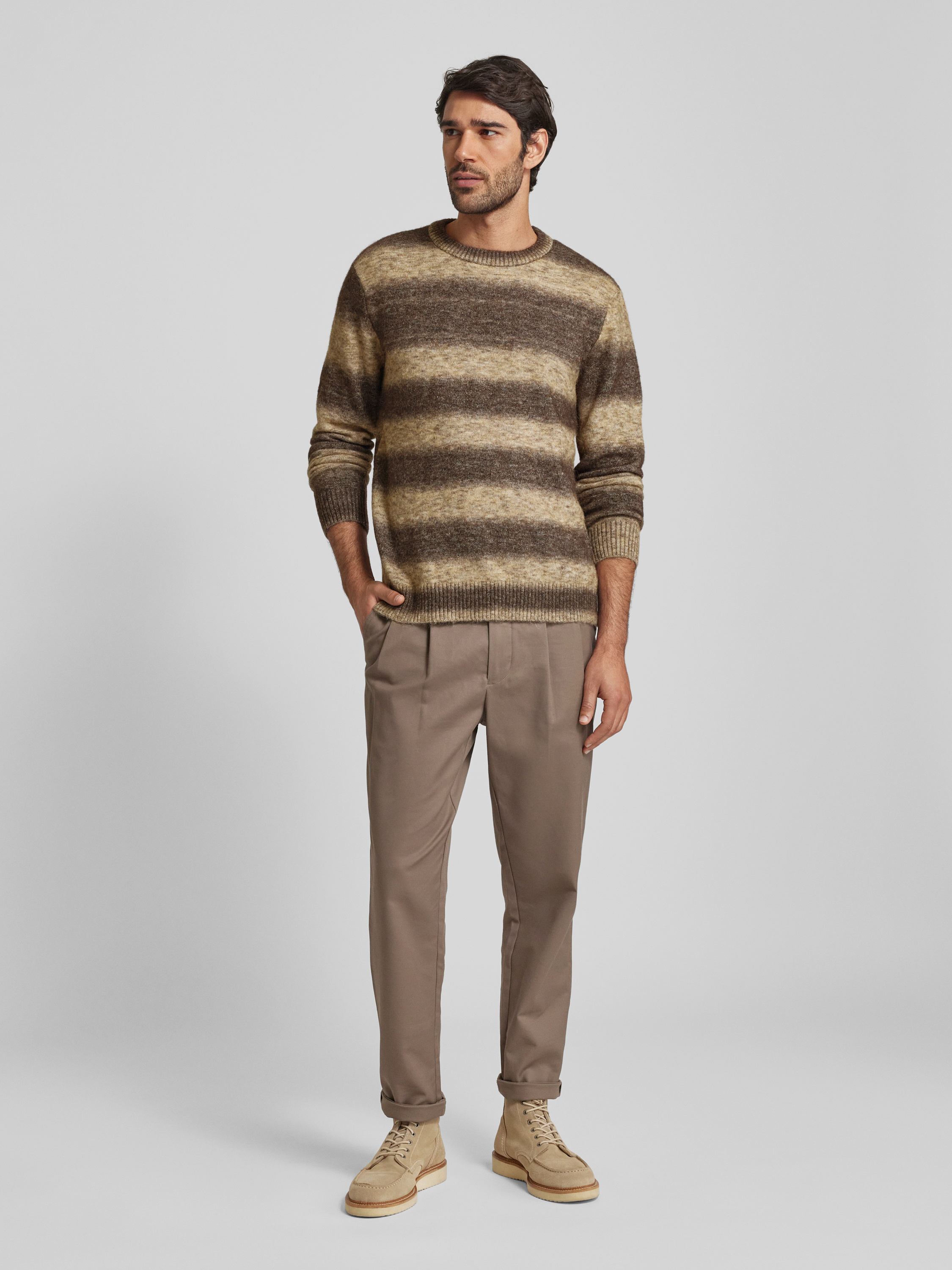 Gebreide pullover met ribboorden, model 'RAI' in zand