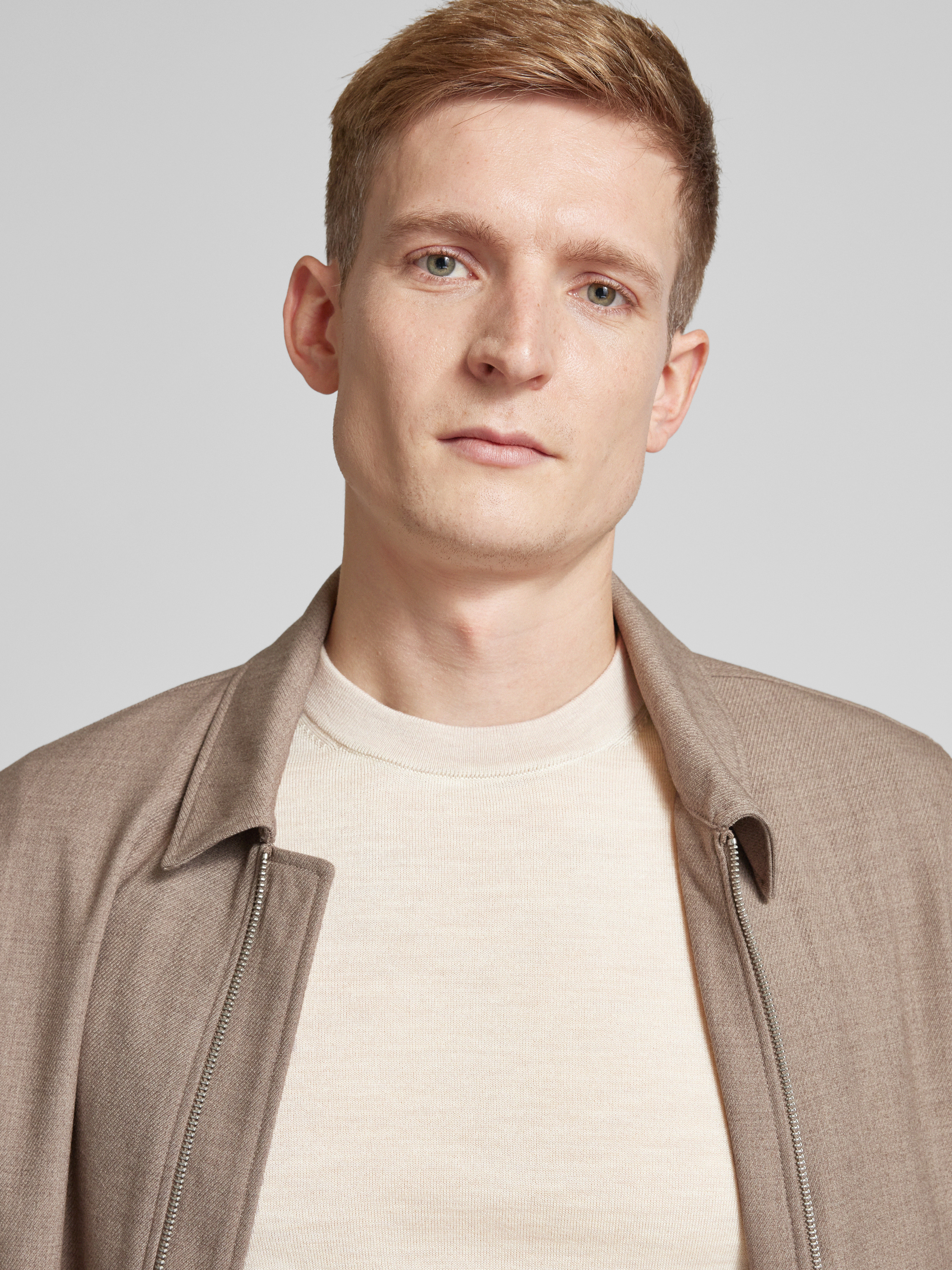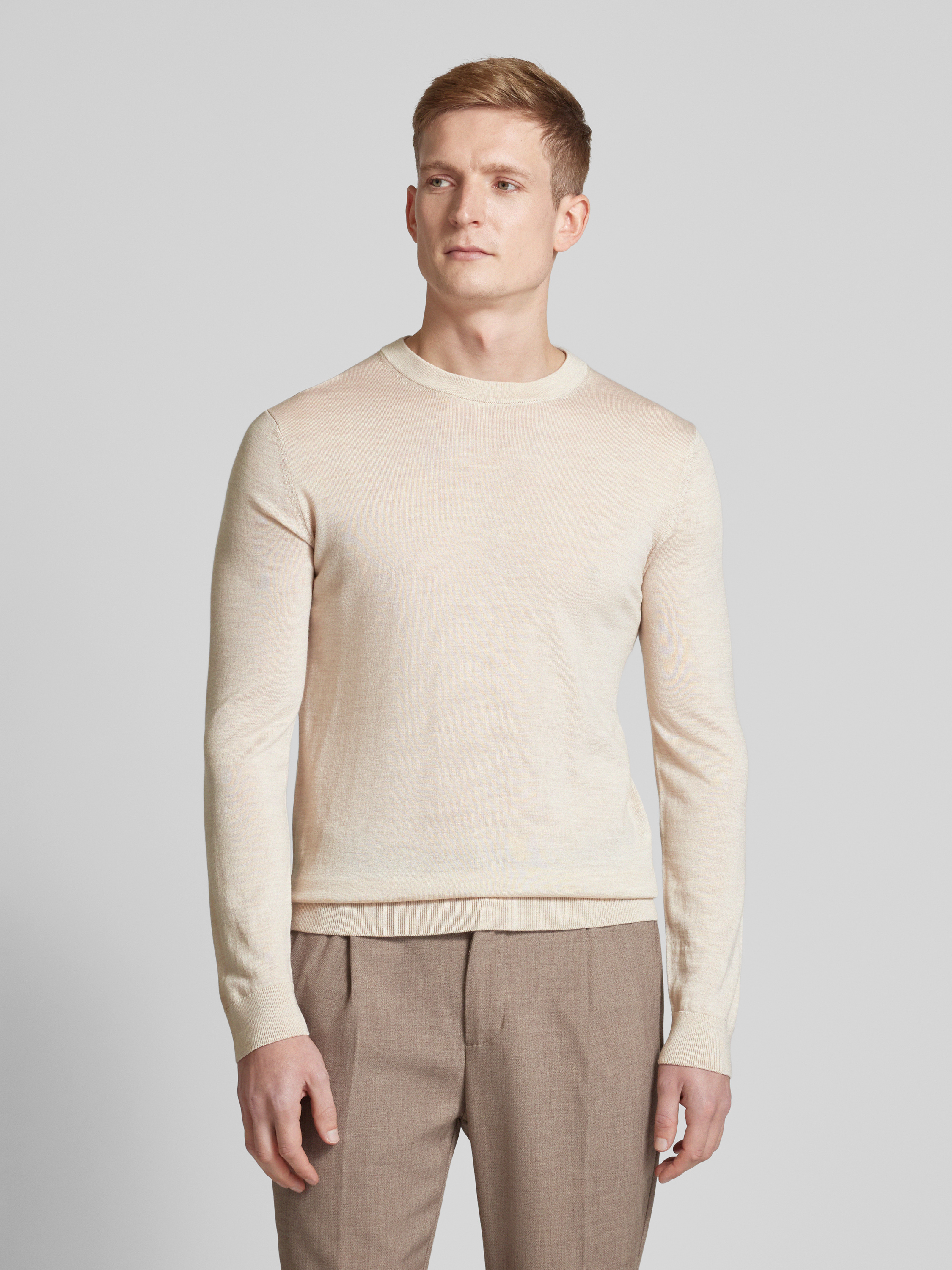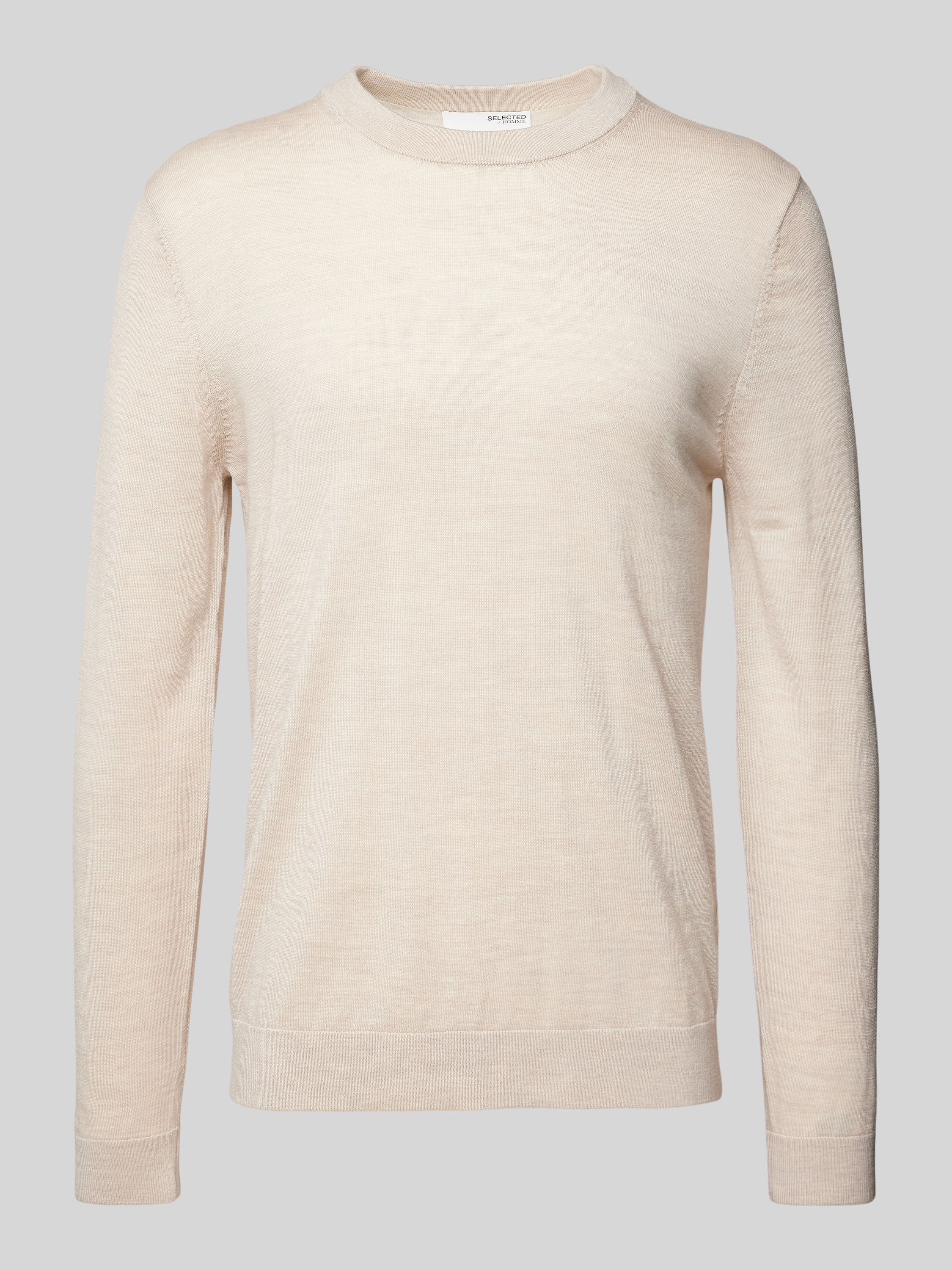 SELECTED HOMMEGebreide pullover met ribboorden, model 'TRAY' in zand gemêleerd