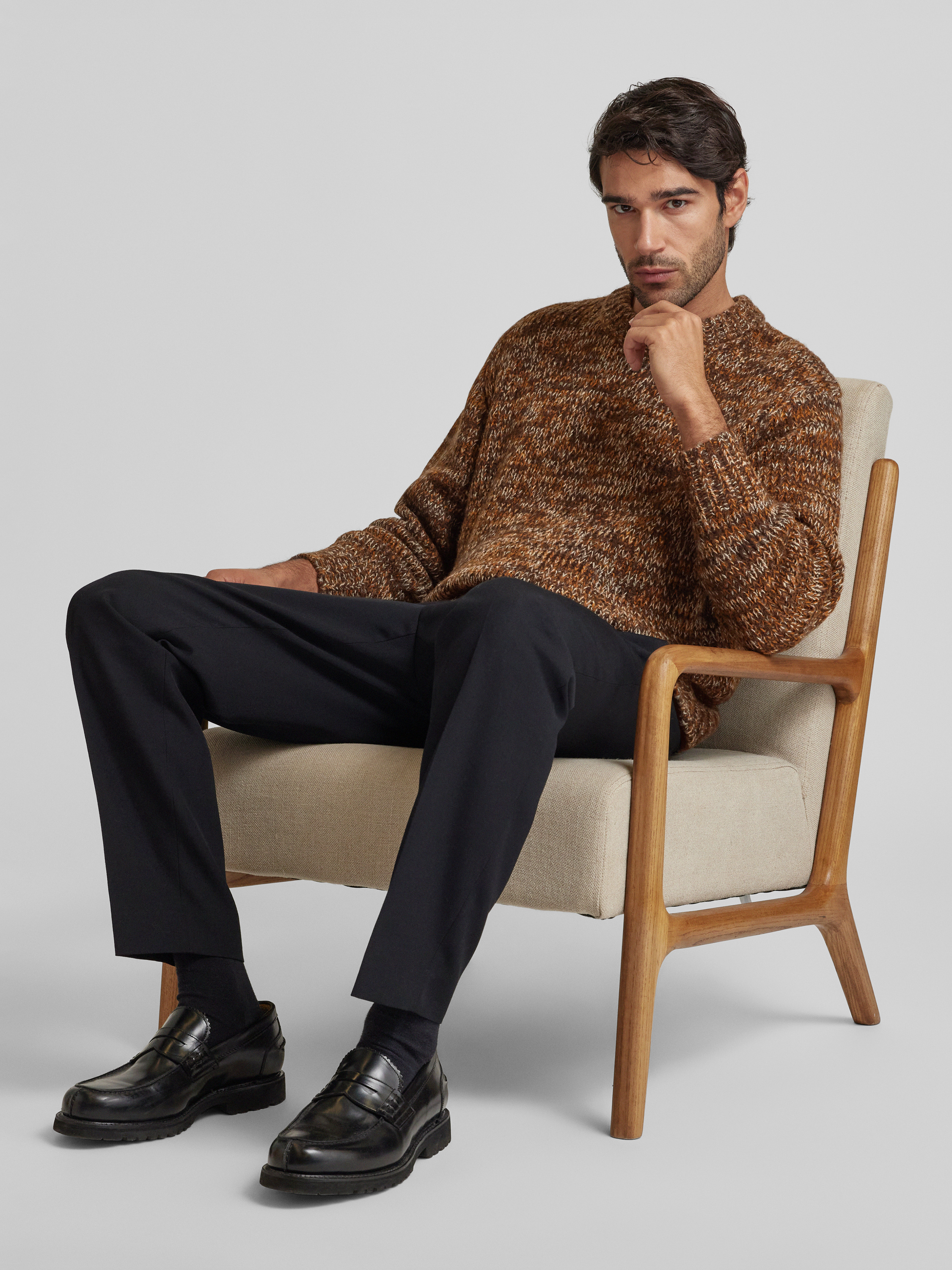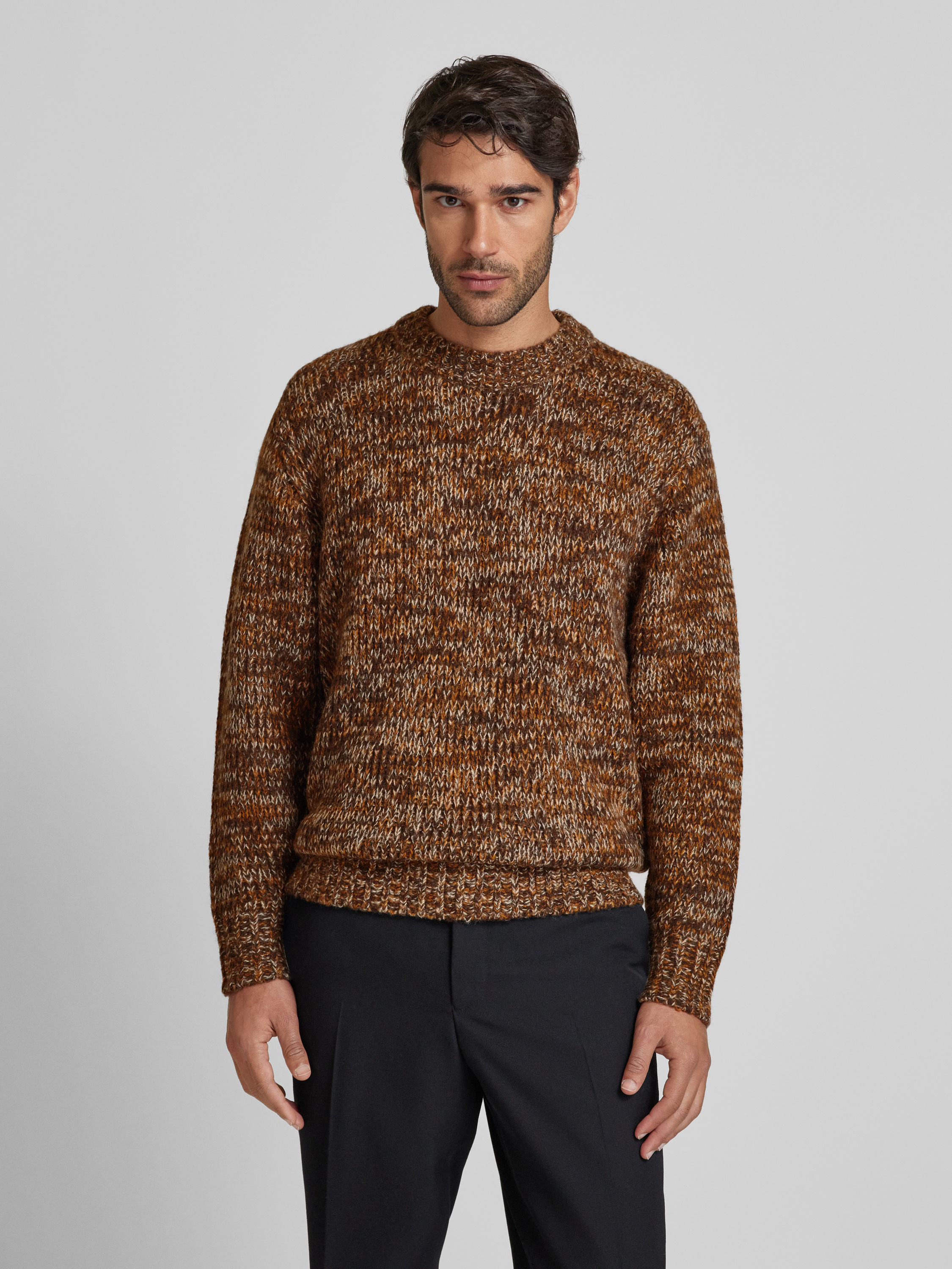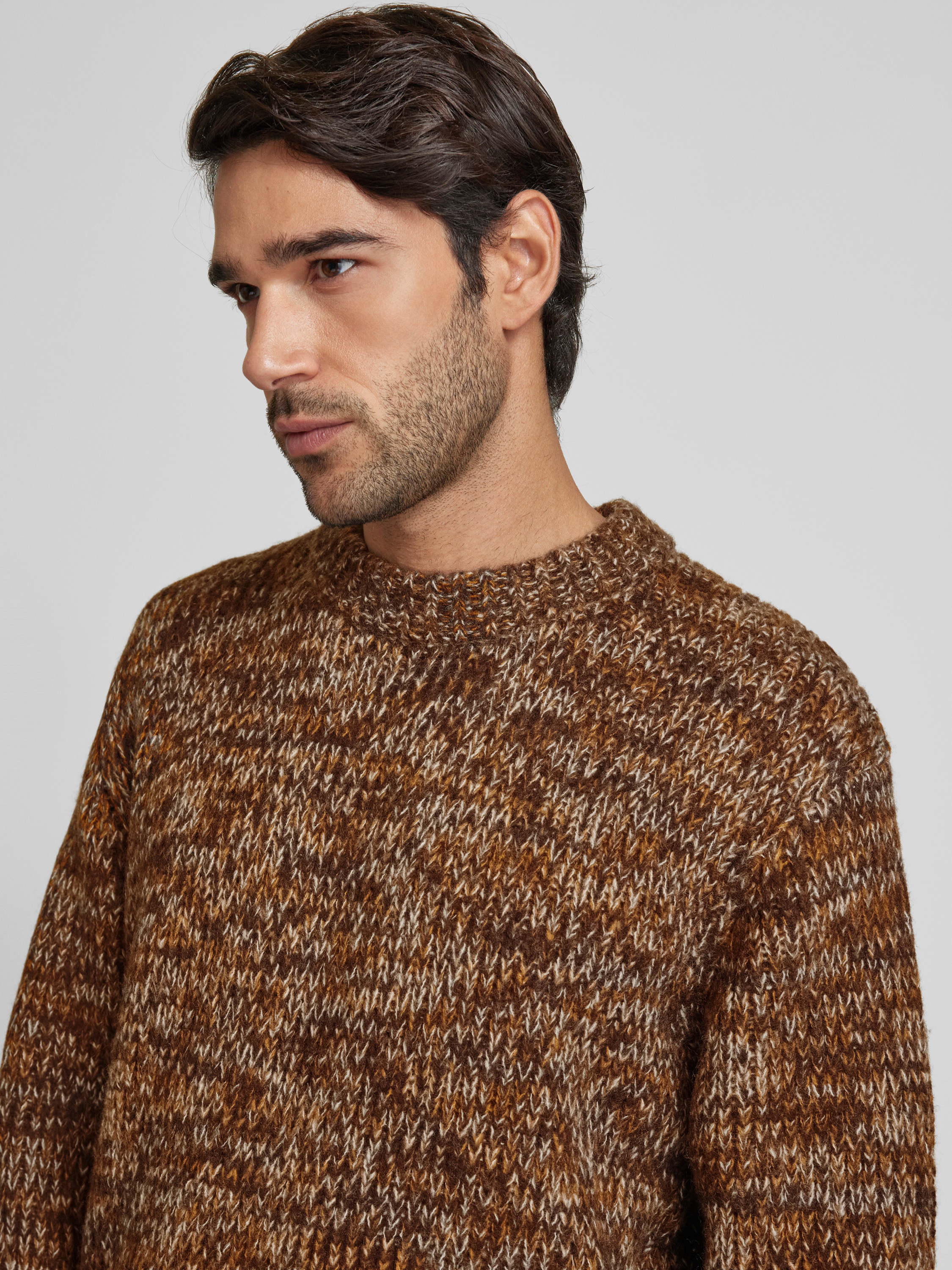SELECTED HOMMEGebreide pullover met ronde hals, model 'PEPPER' in lichtbruin