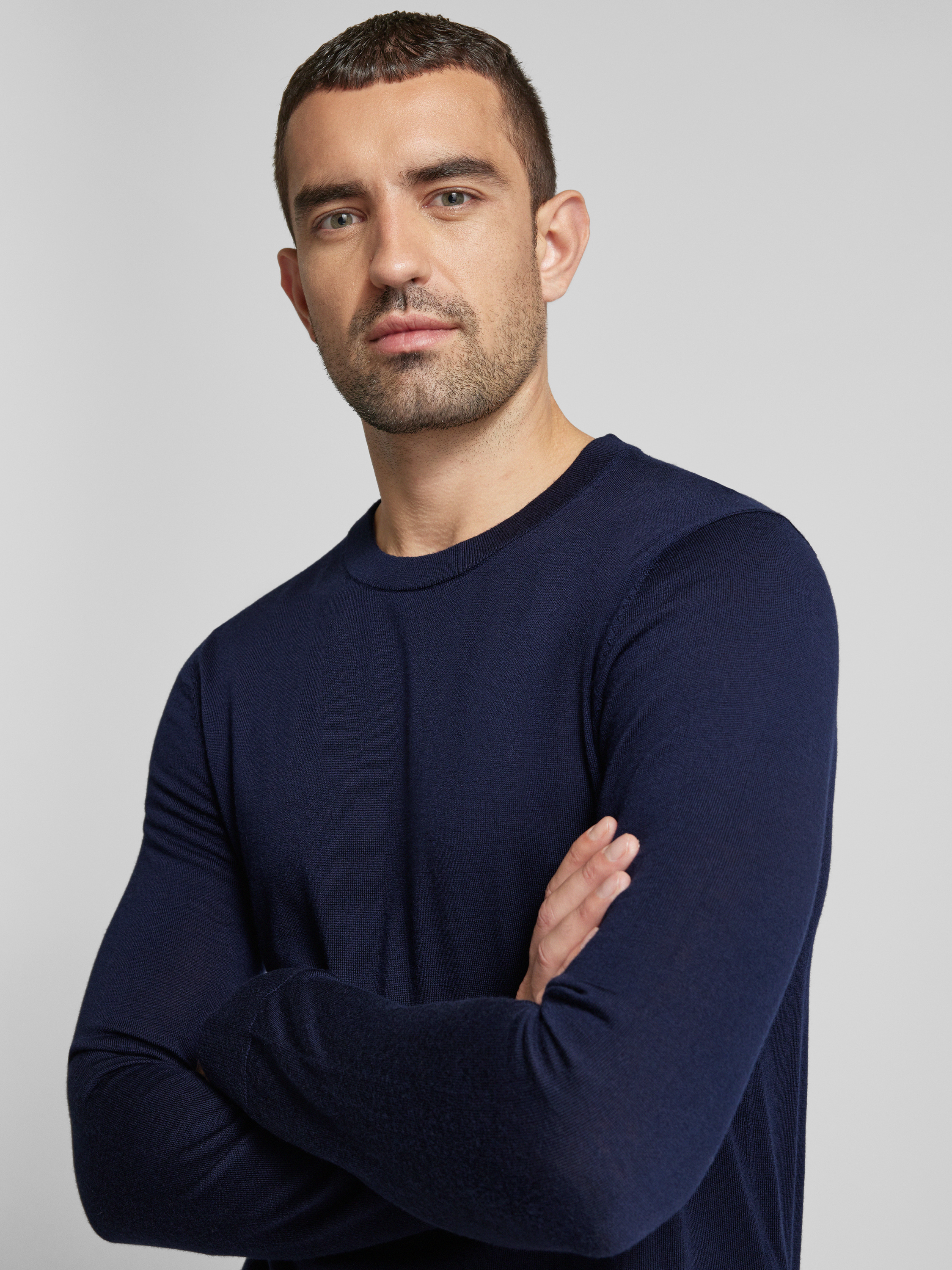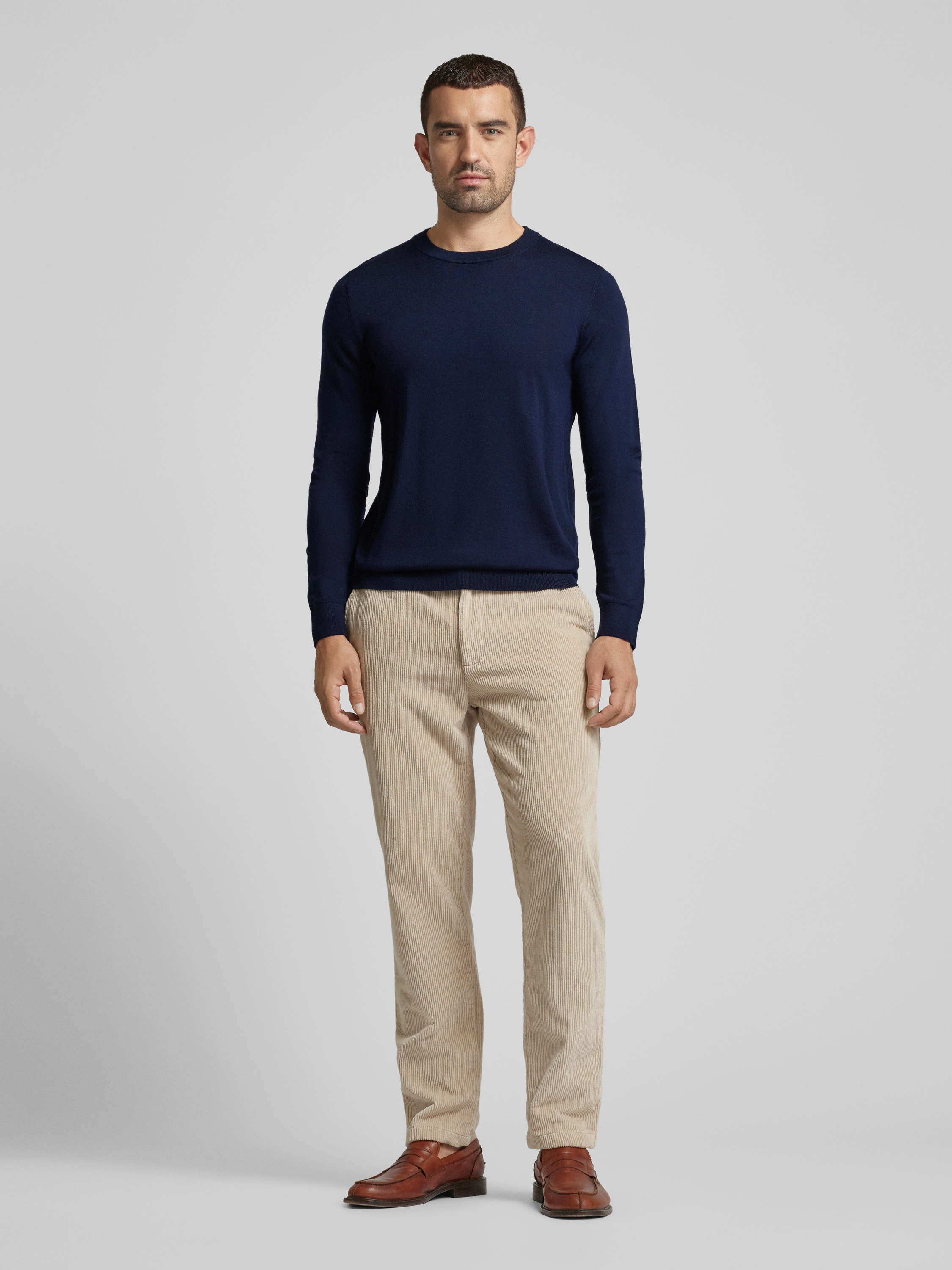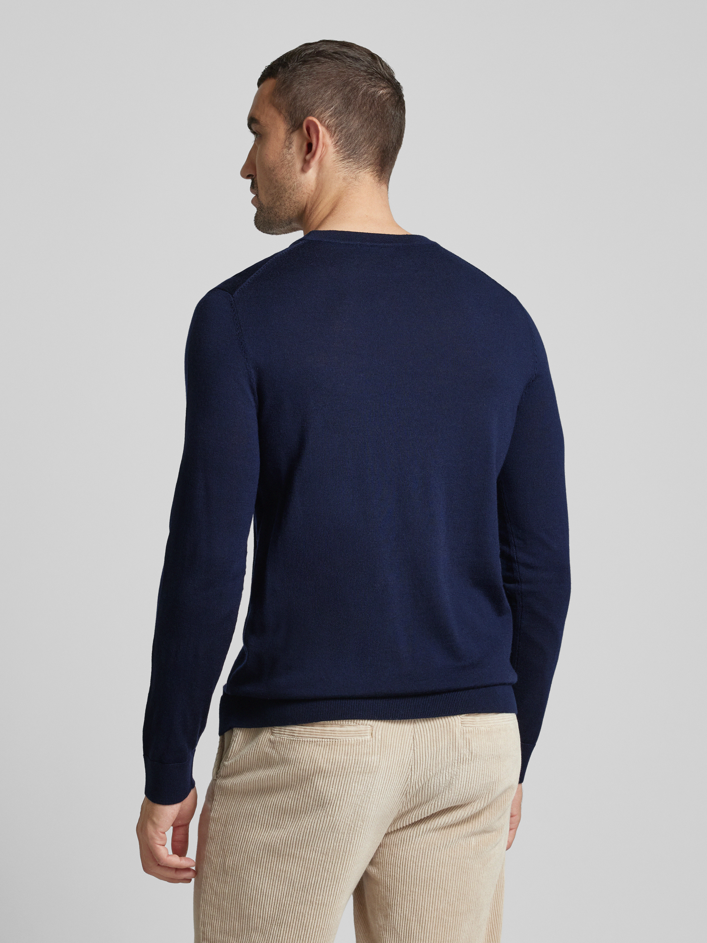 SELECTED HOMMEGebreide pullover van merinowol met ribboorden, model 'TRAY' in donkerblauw