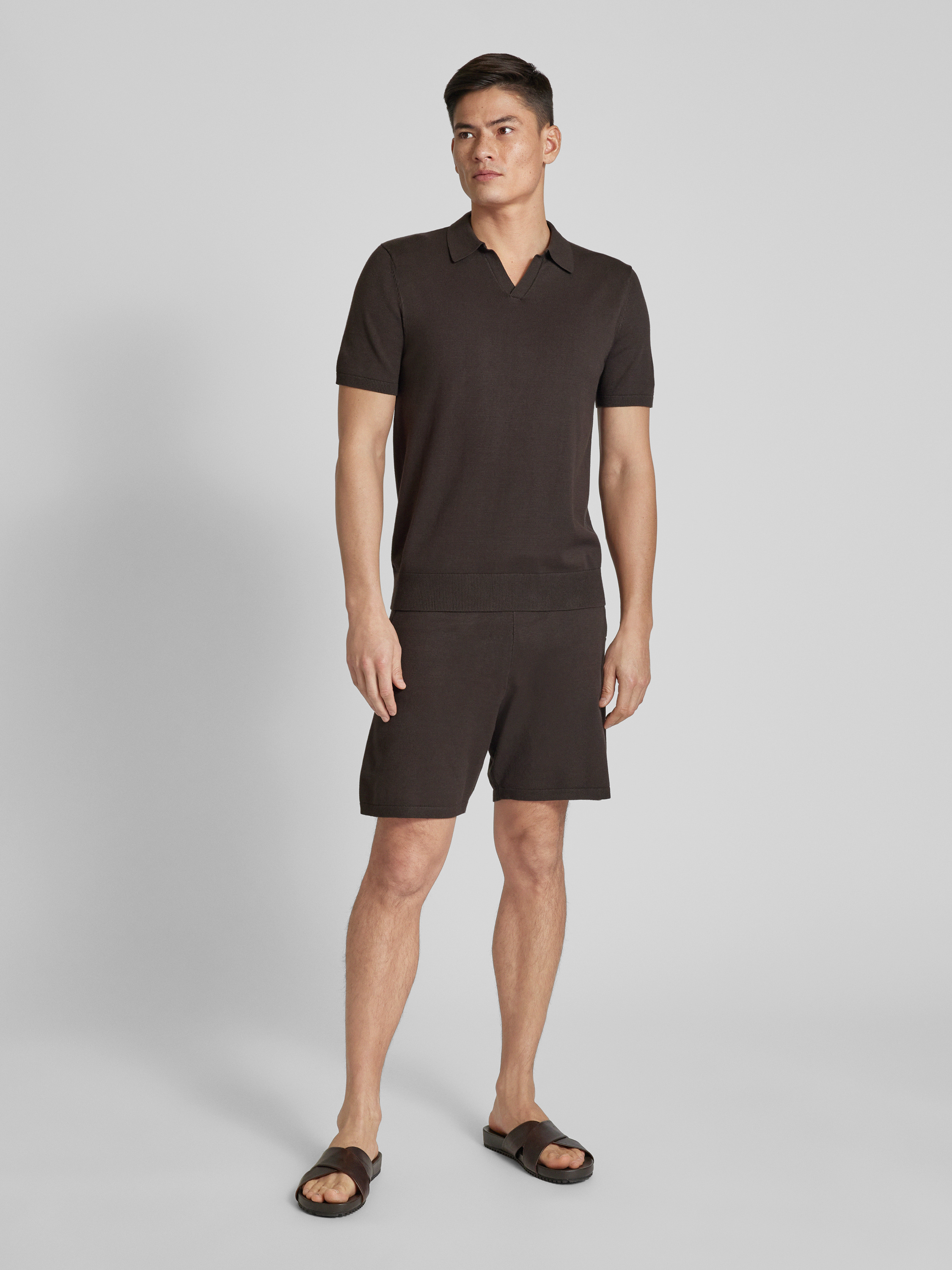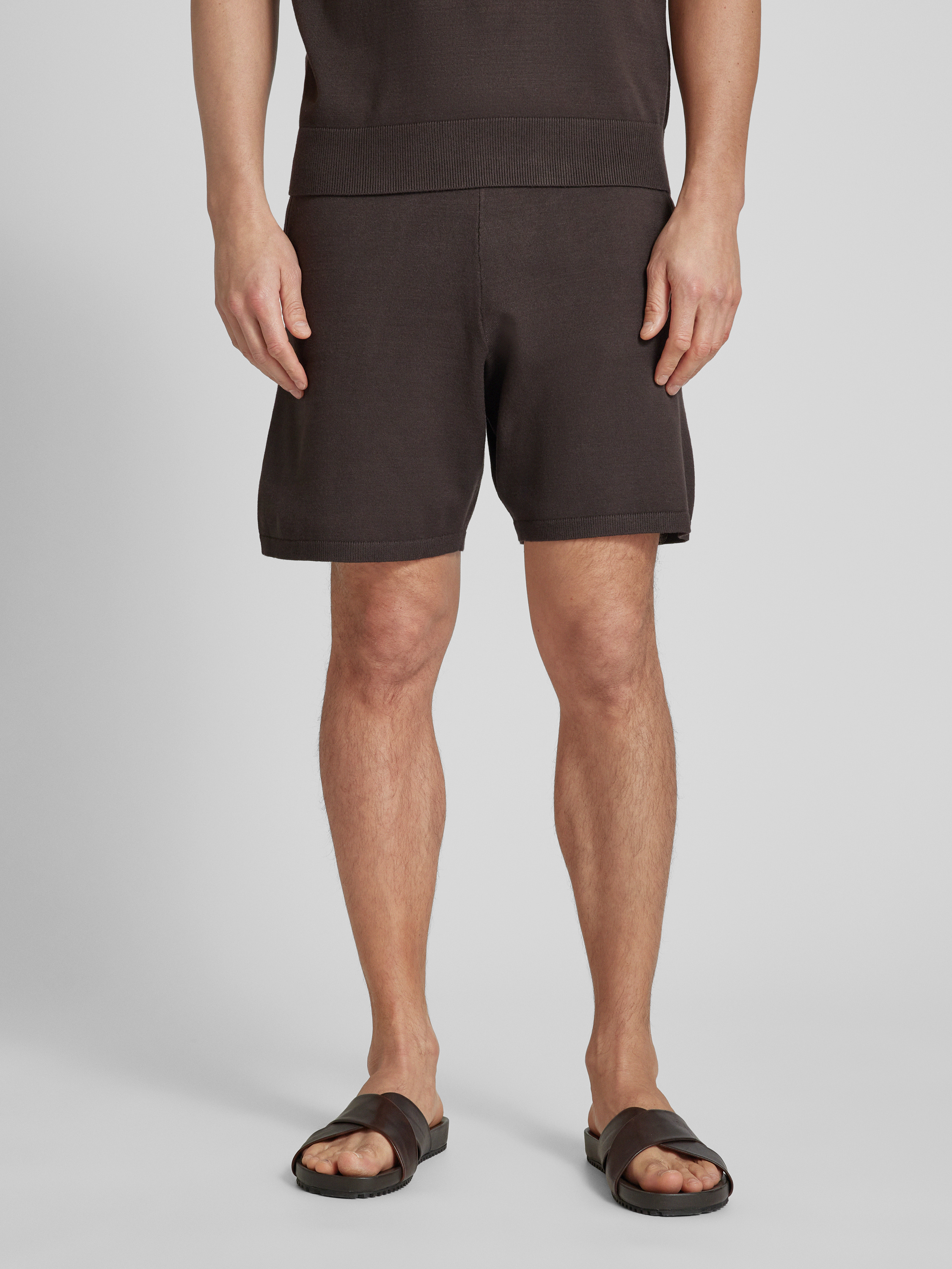 Korte broek met elastische band, model 'TELLER' in chocoladebruin