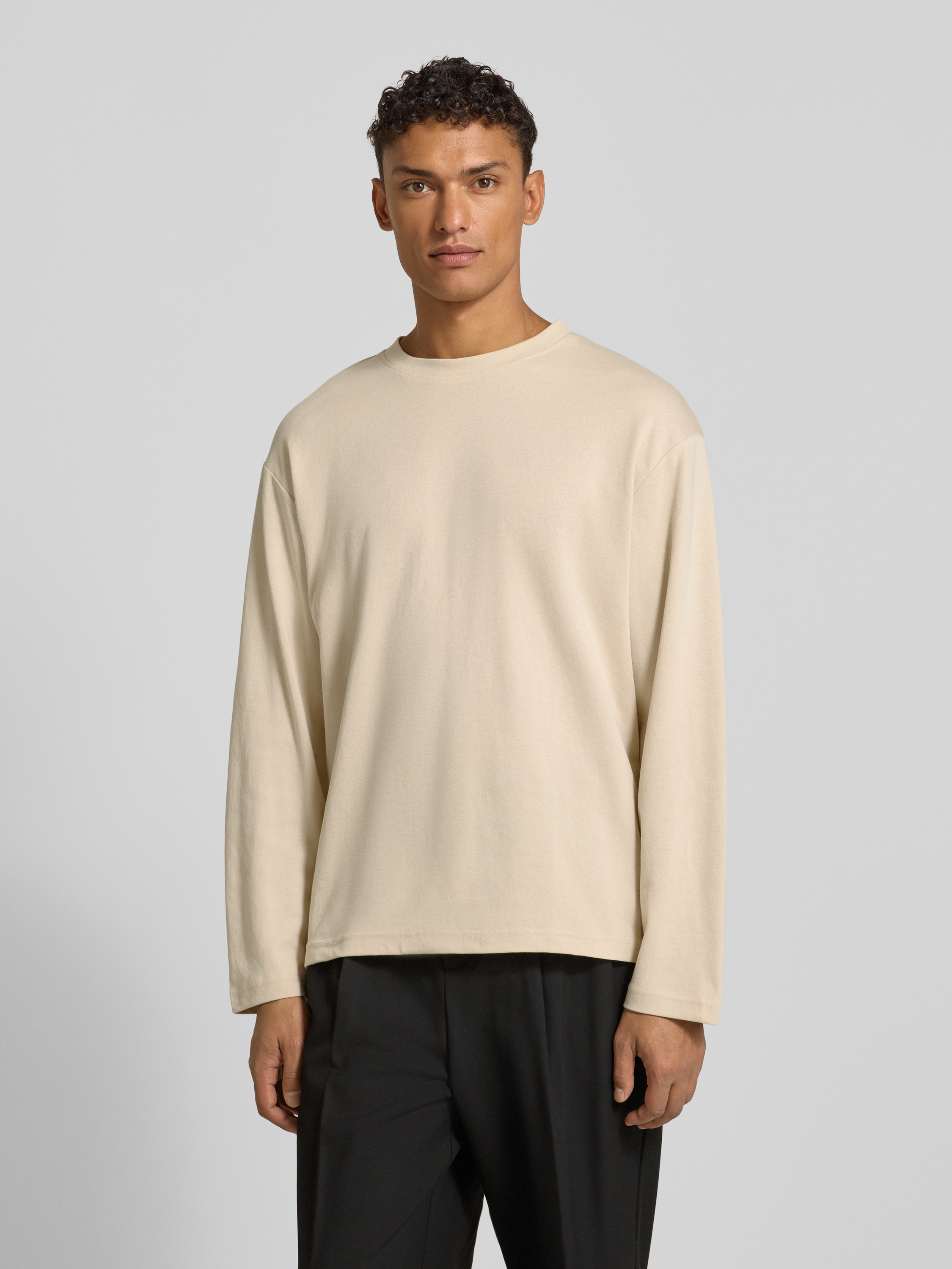 Loose fit shirt met lange mouwen van katoenmix, model 'LOOSEOSCAR' in offwhite