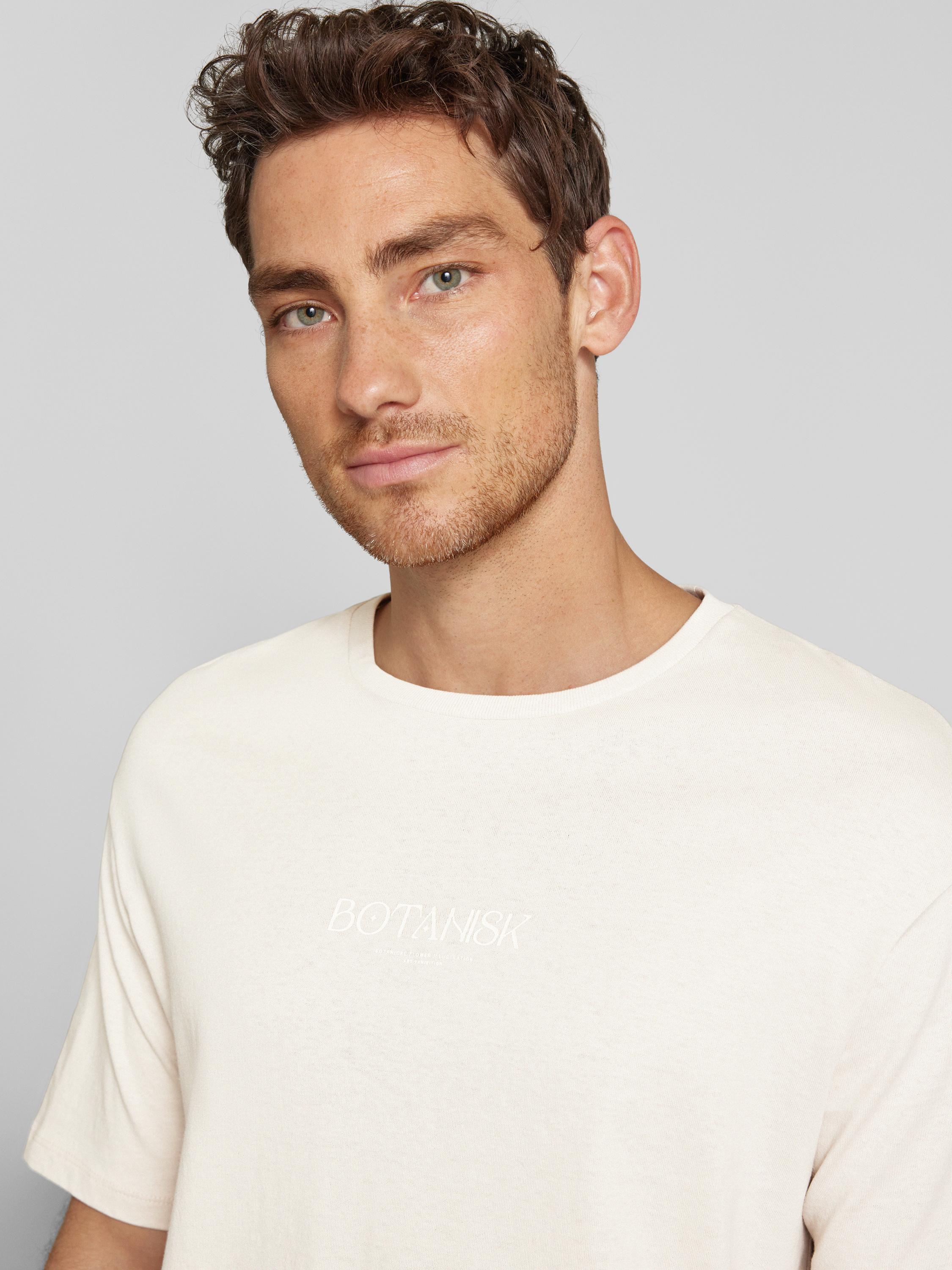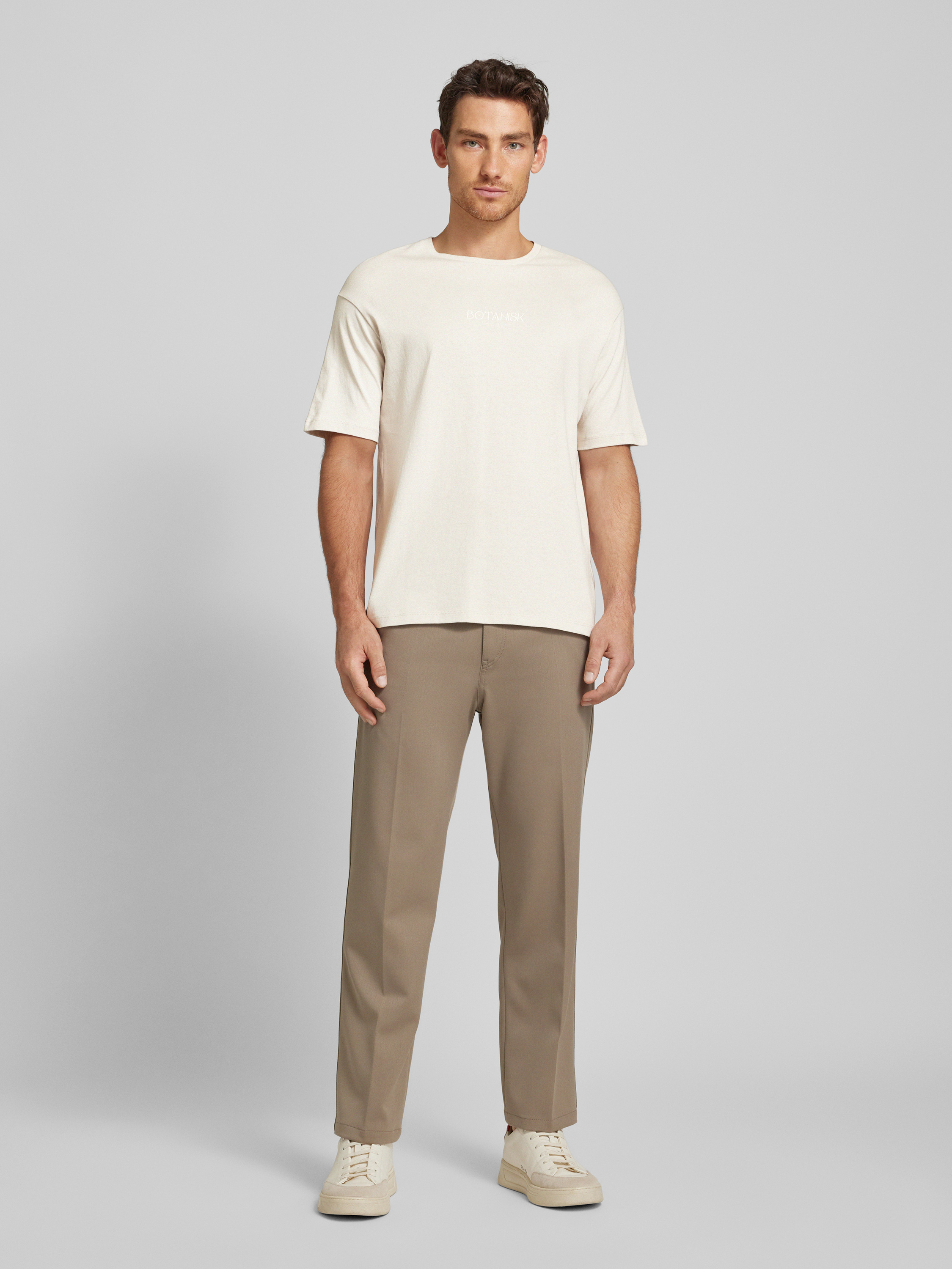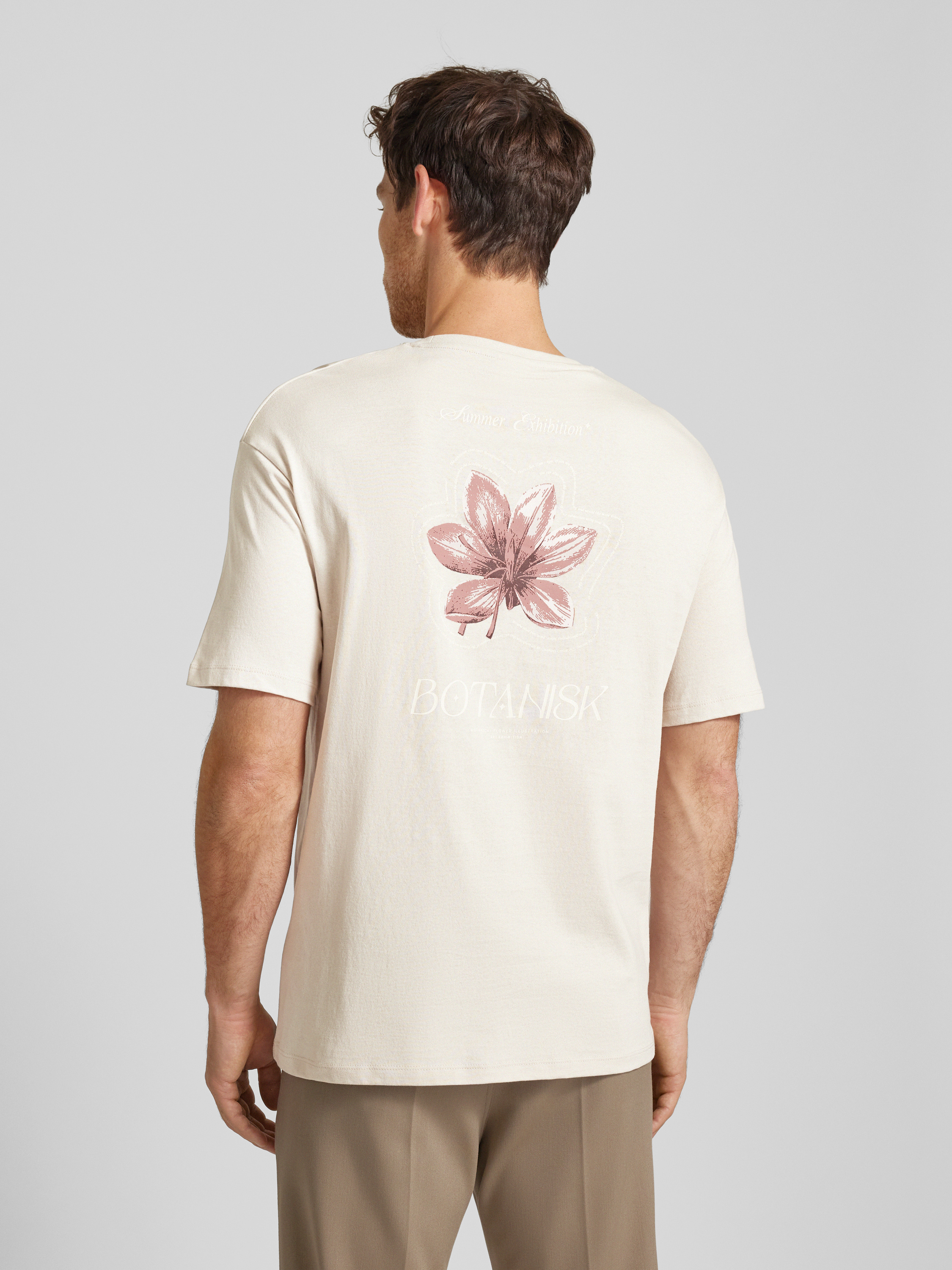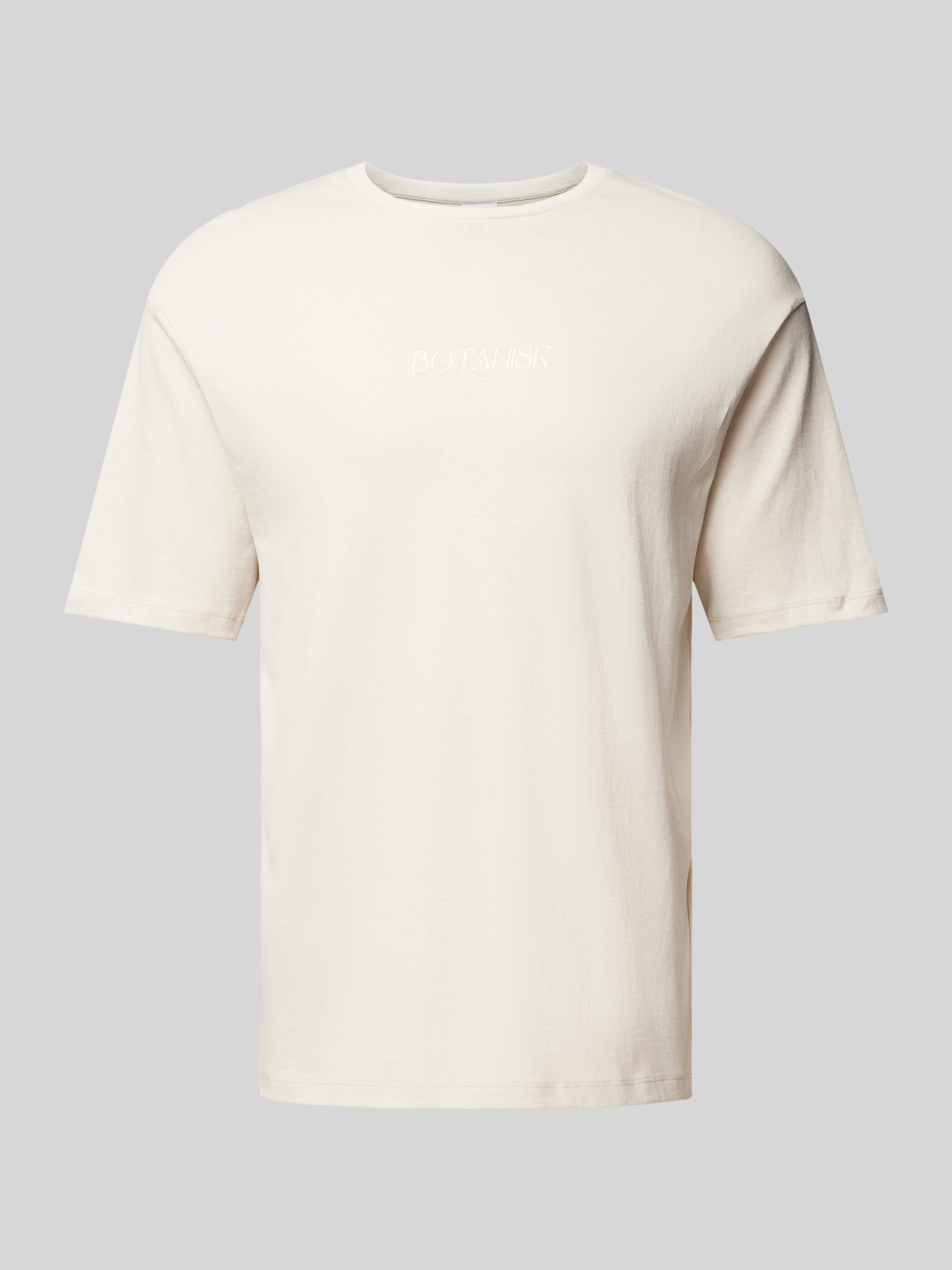Loose fit T-shirt met ronde hals, model 'BOTANIC FLOWER' in lichtbruin