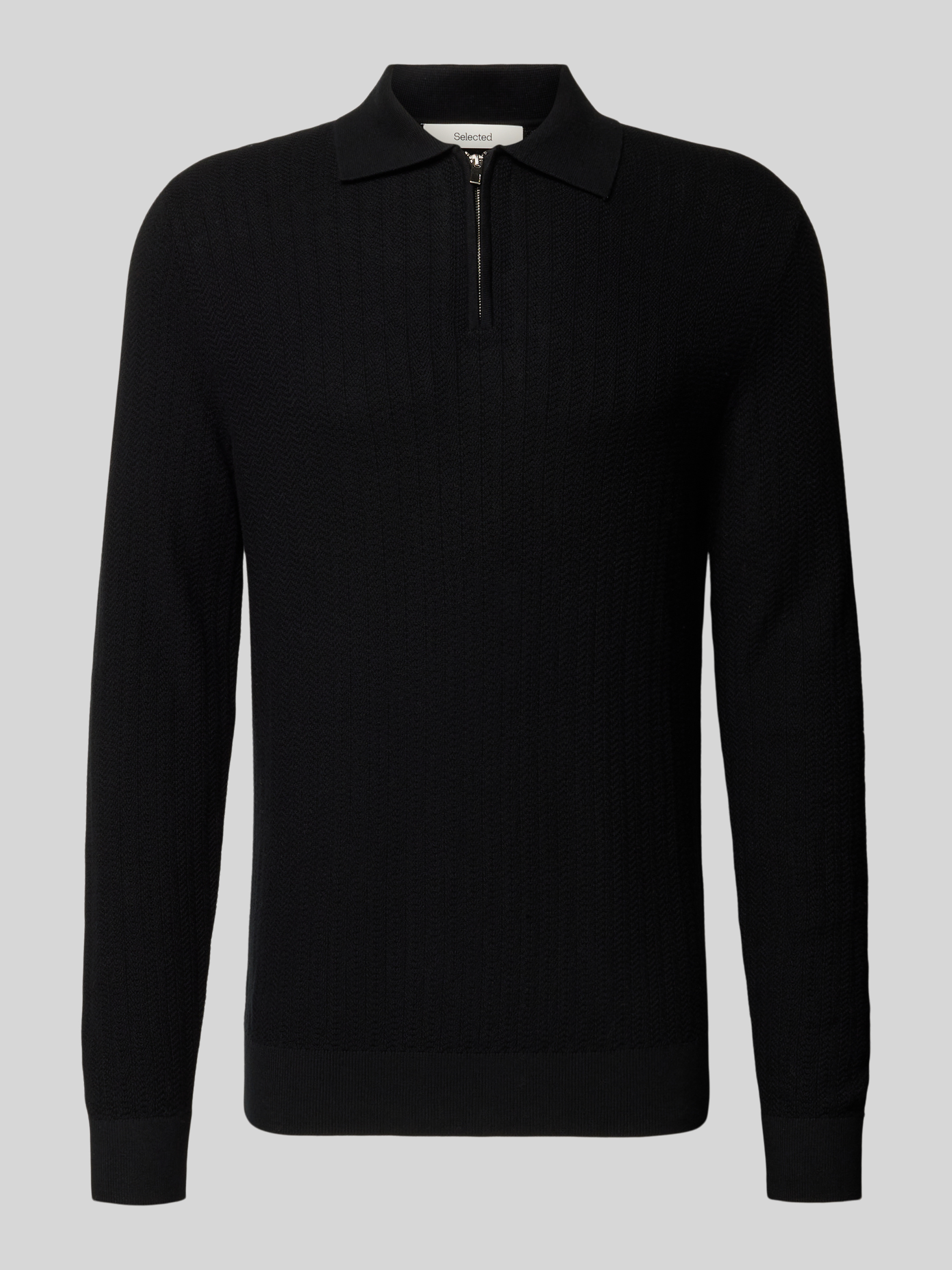 Oversized poloshirt van puur katoen, model 'CRAN' in zwart