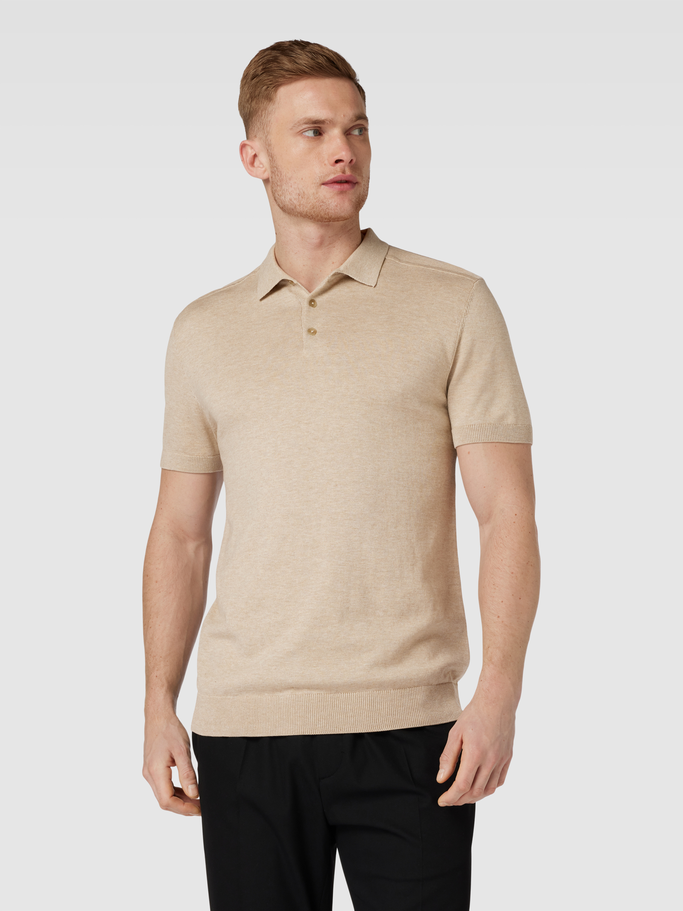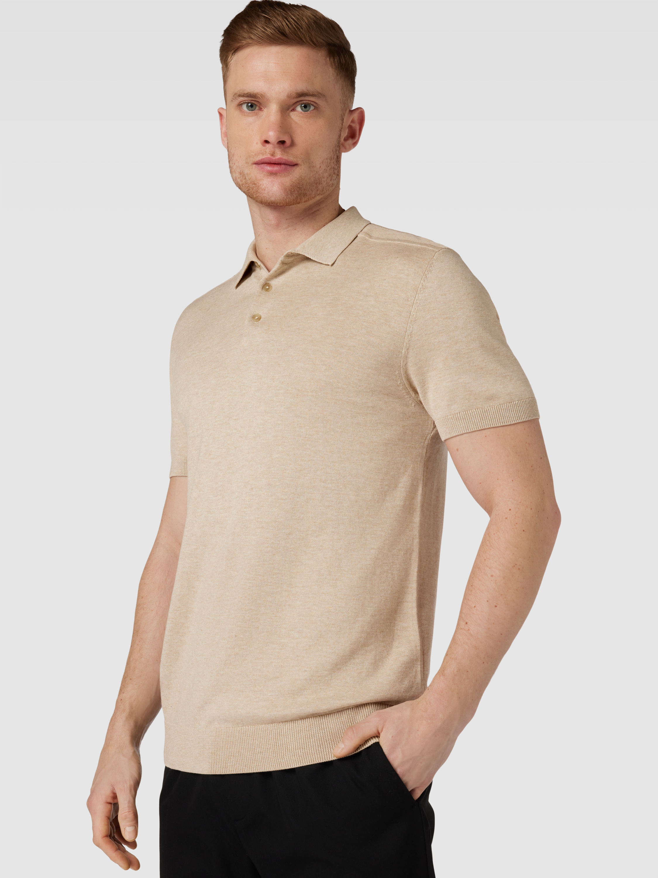 SELECTED HOMMEPoloshirt met korte knoopsluiting, model 'BERG' in beige gemêleerd