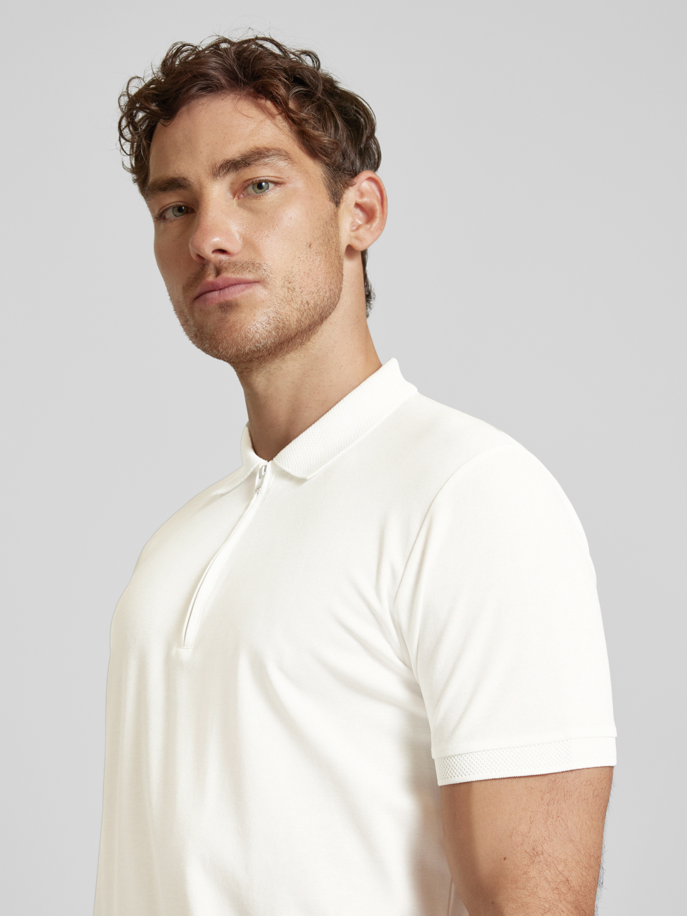 Poloshirt met korte ritssluiting, model 'FAVE' in wit
