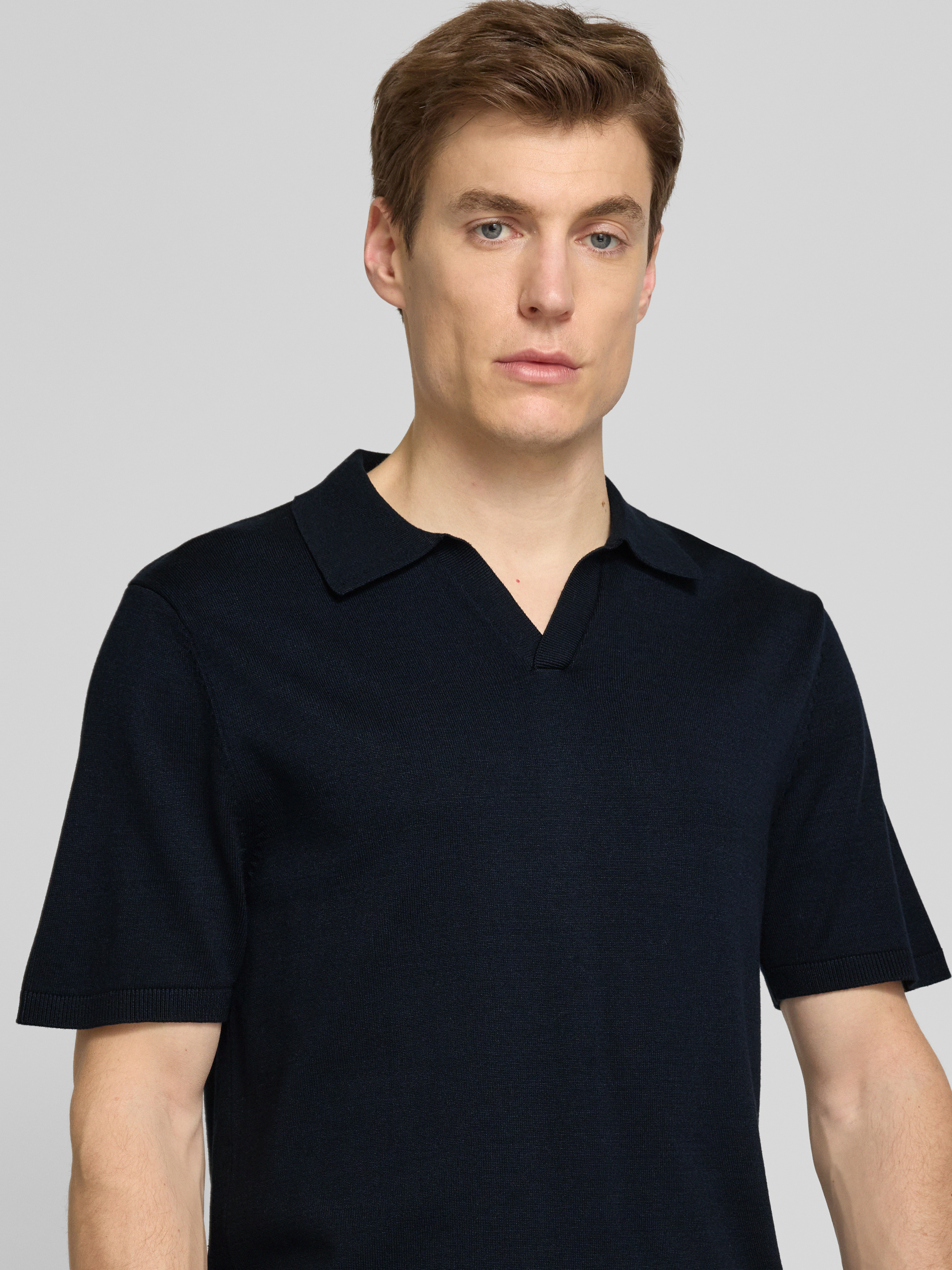 Poloshirt met V-hals, model 'TELLER' in marineblauw