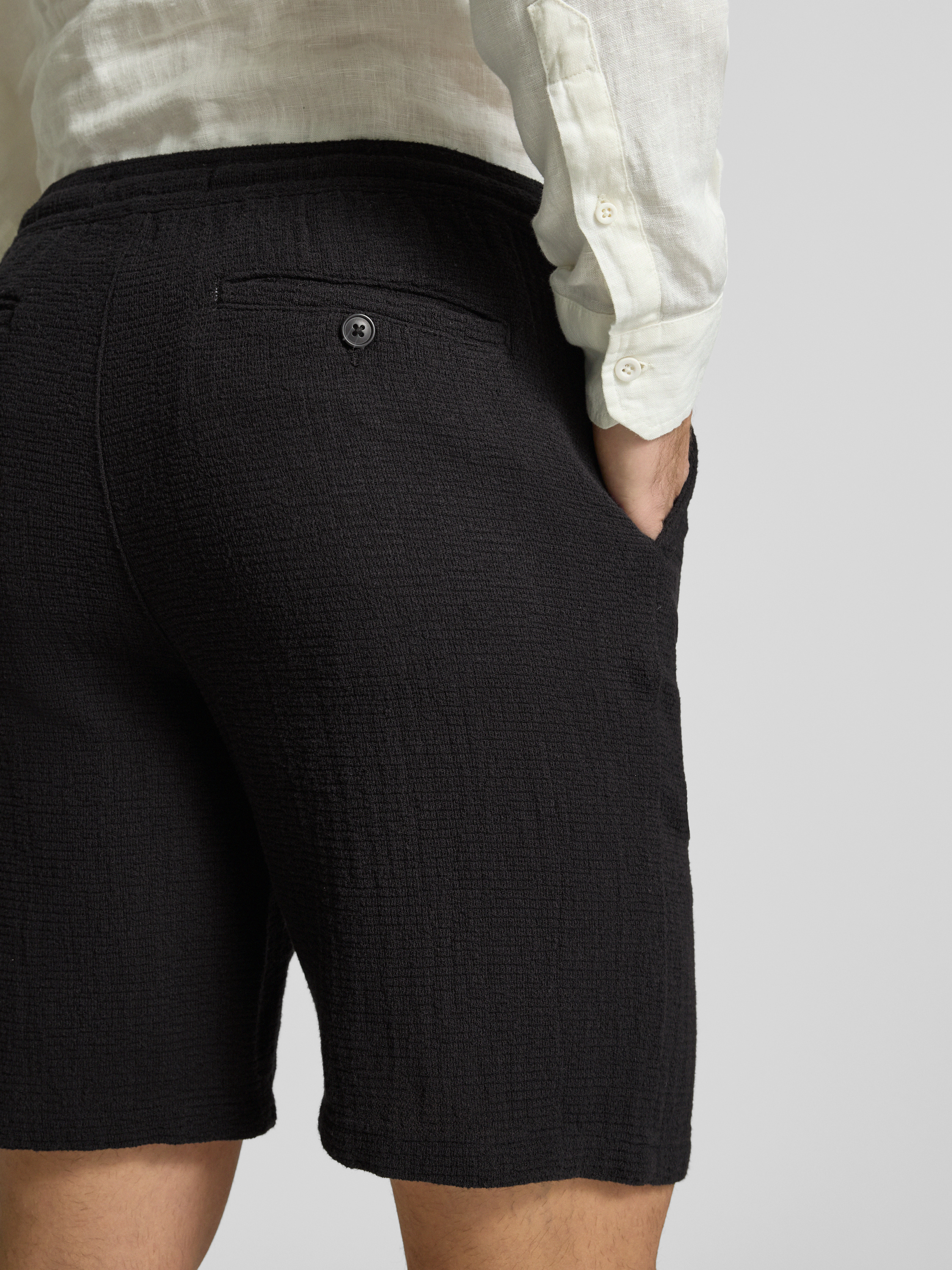Regular fit bermuda met structuurmotief, model 'BRODY' in zwart