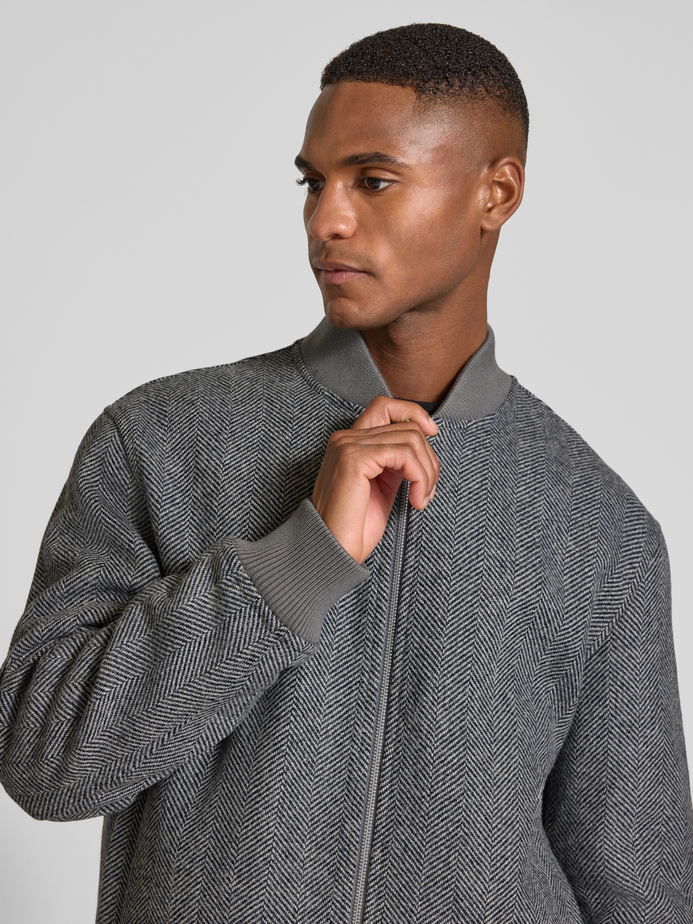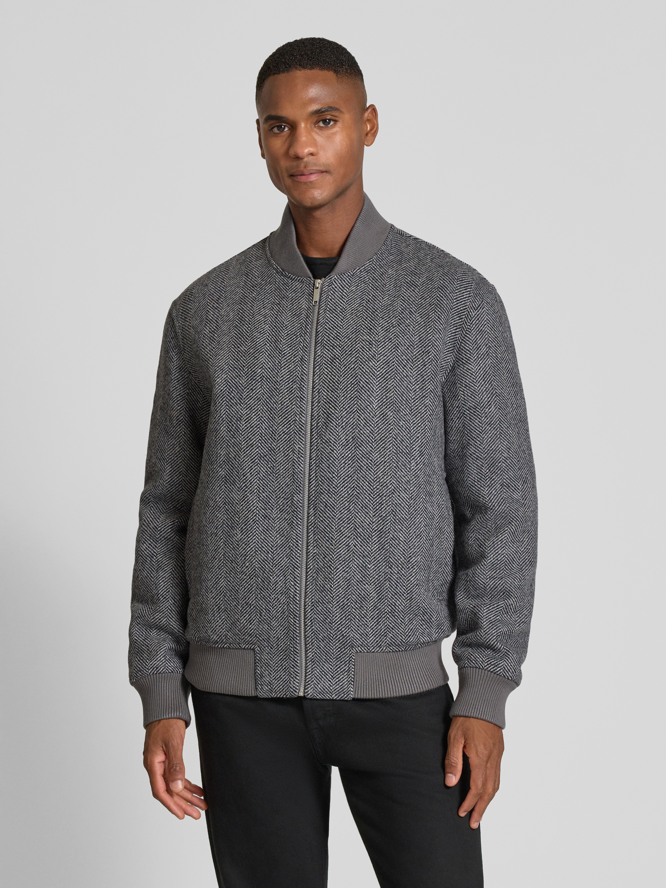 Regular fit bomberjack van wolmix, model 'JENS' in middengrijs