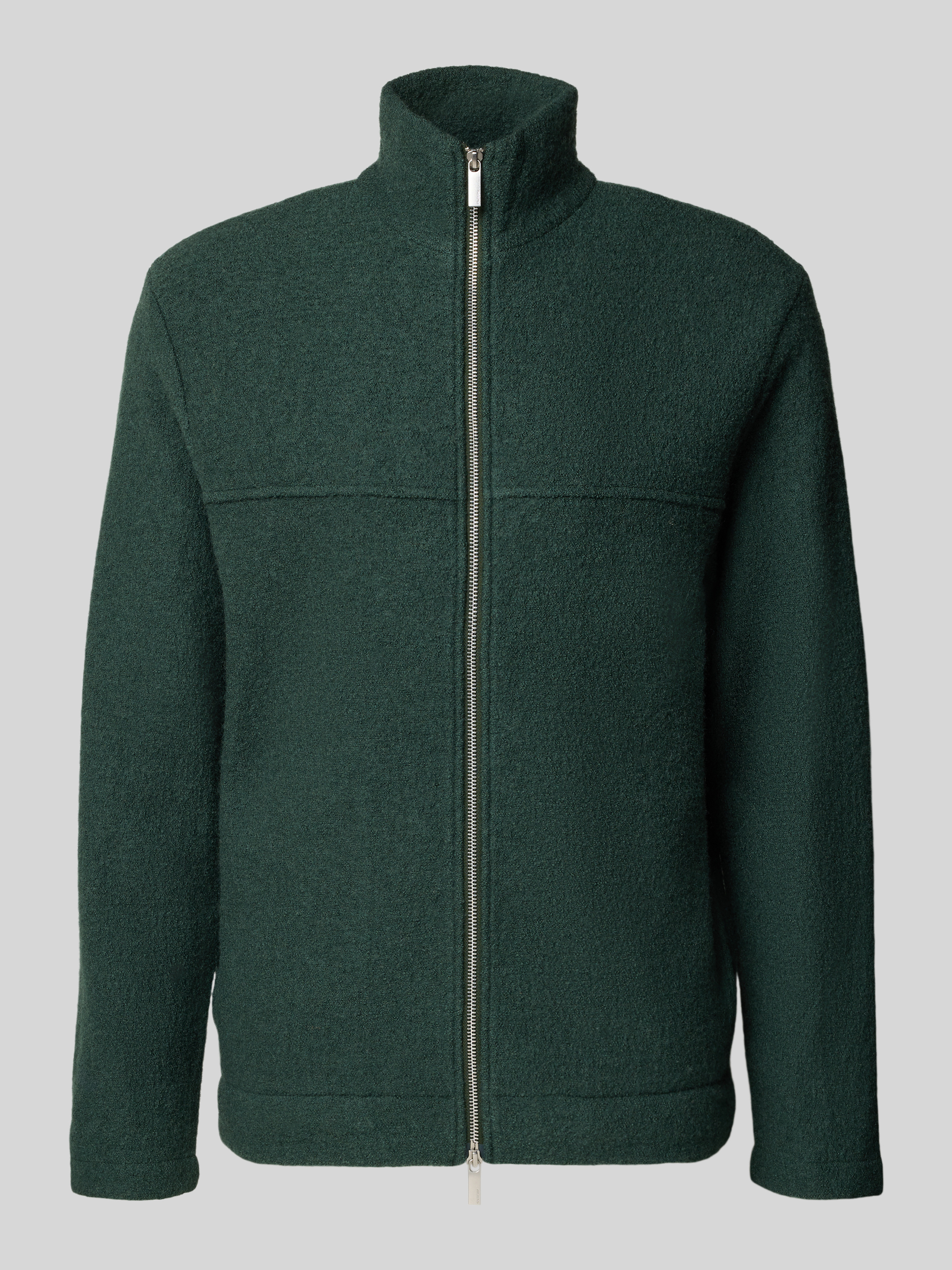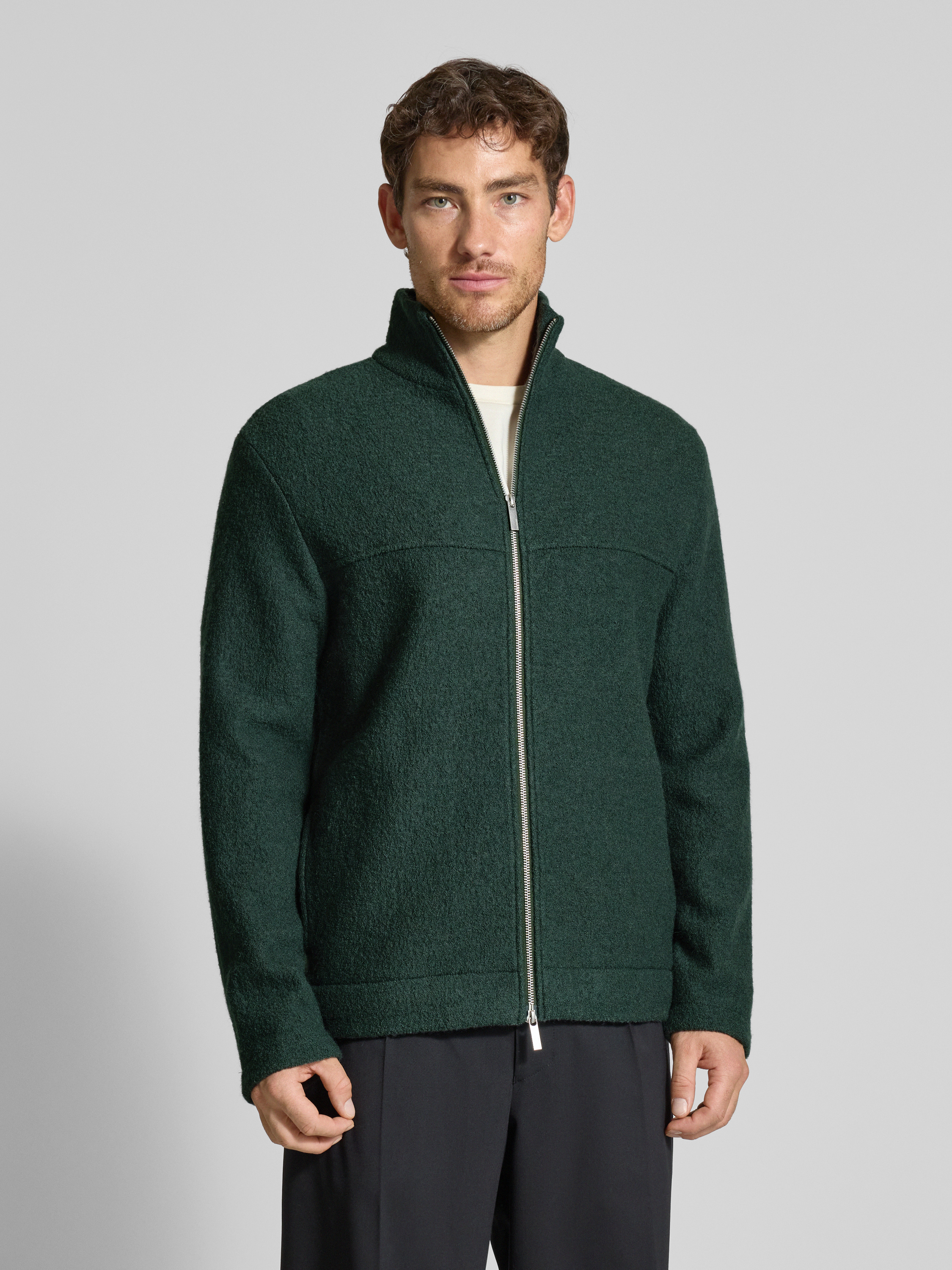 Regular fit cardigan van zuivere wollen bouclé, model 'NEALY' in donkergroen