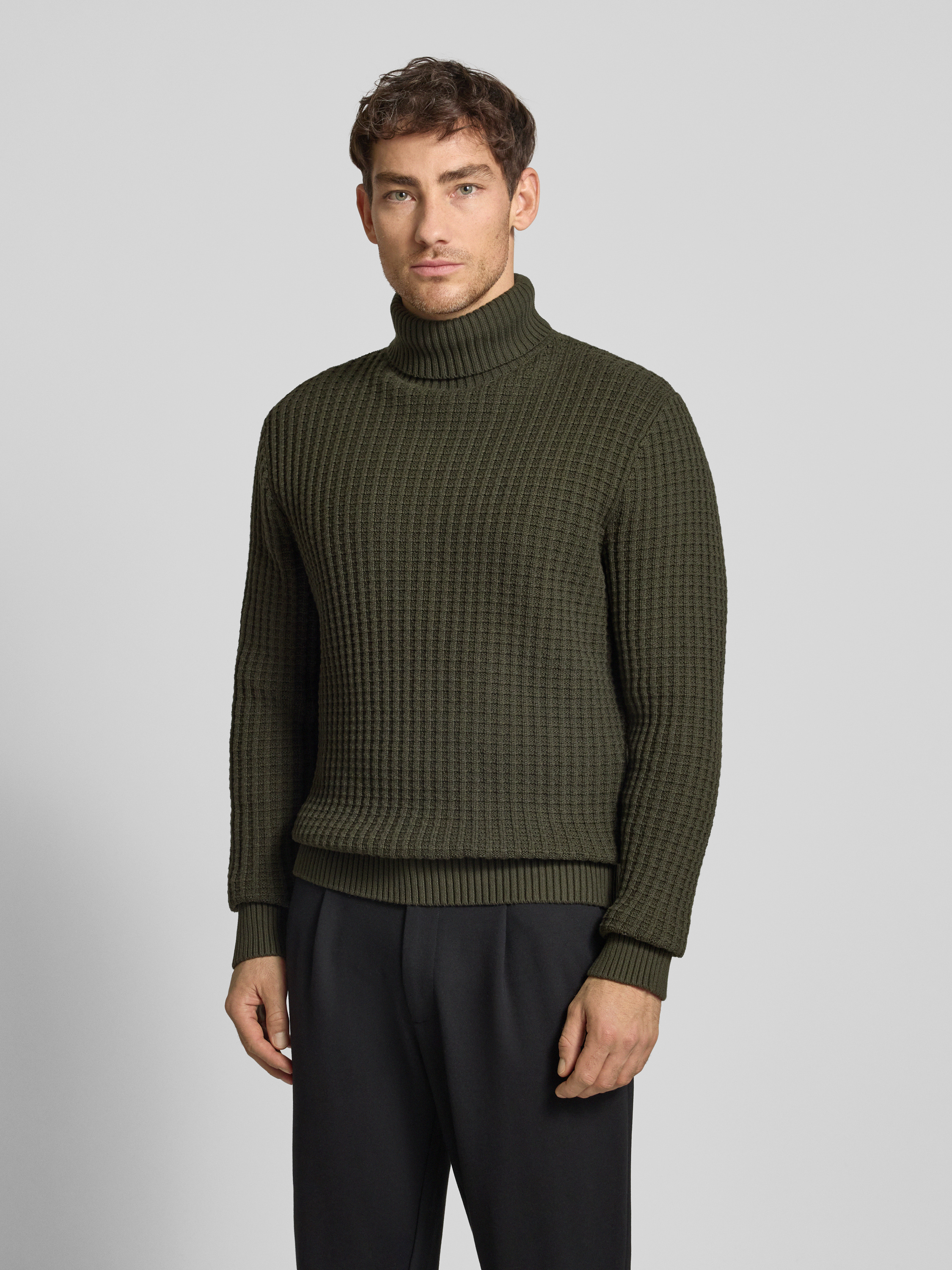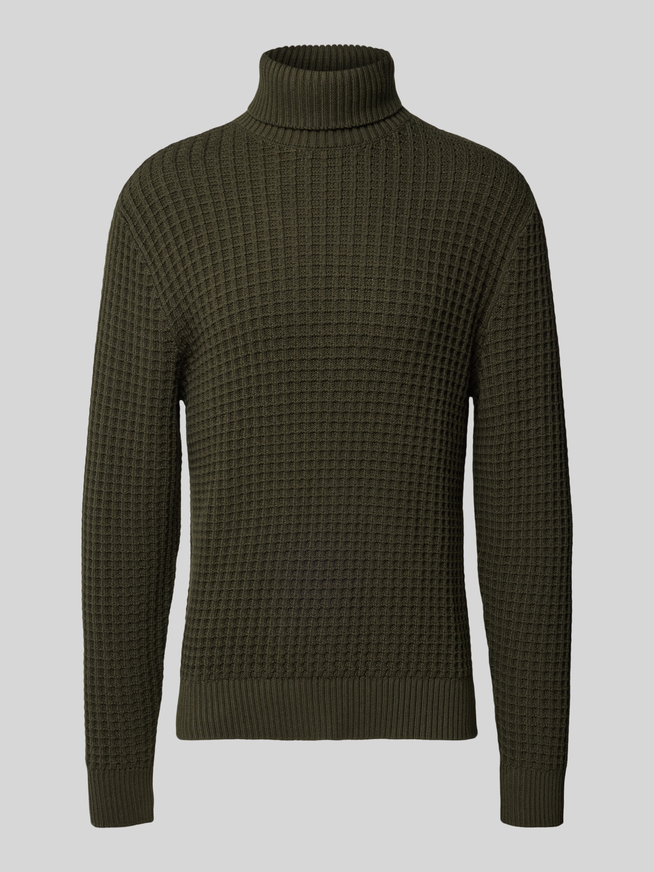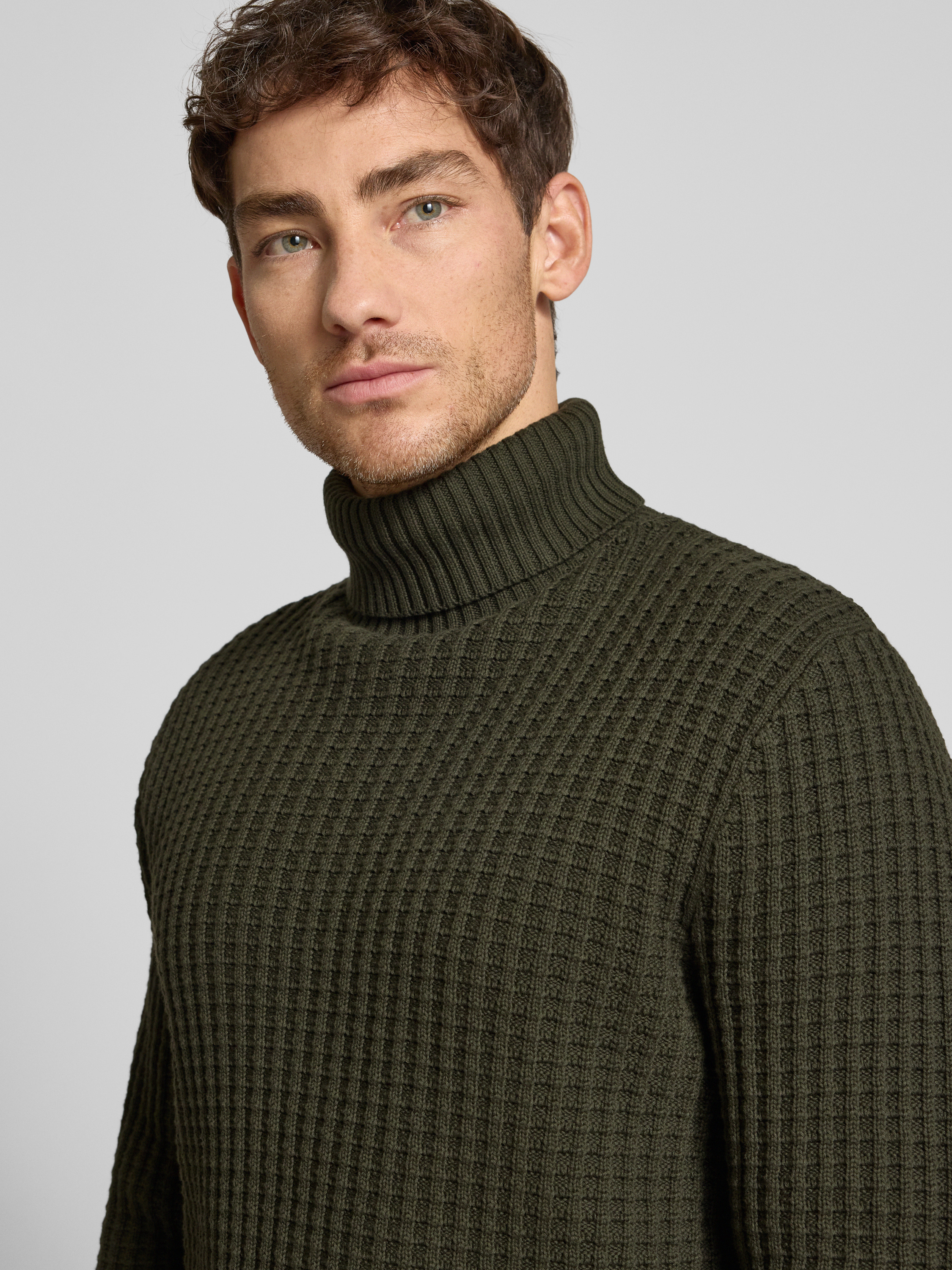 SELECTED HOMMERegular fit coltrui in wafelstructuur, model 'TOM' in donkergroen