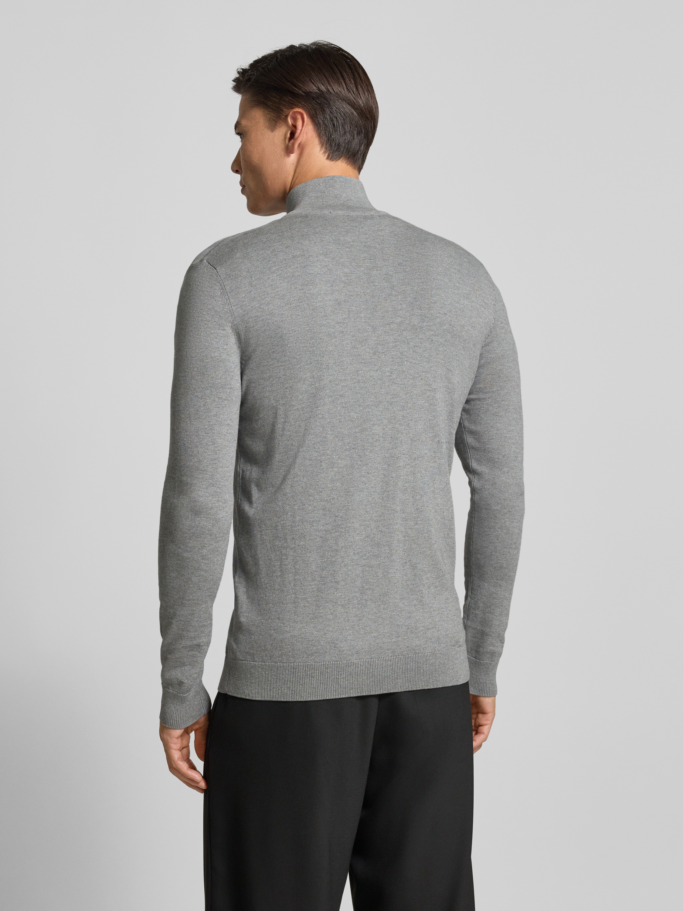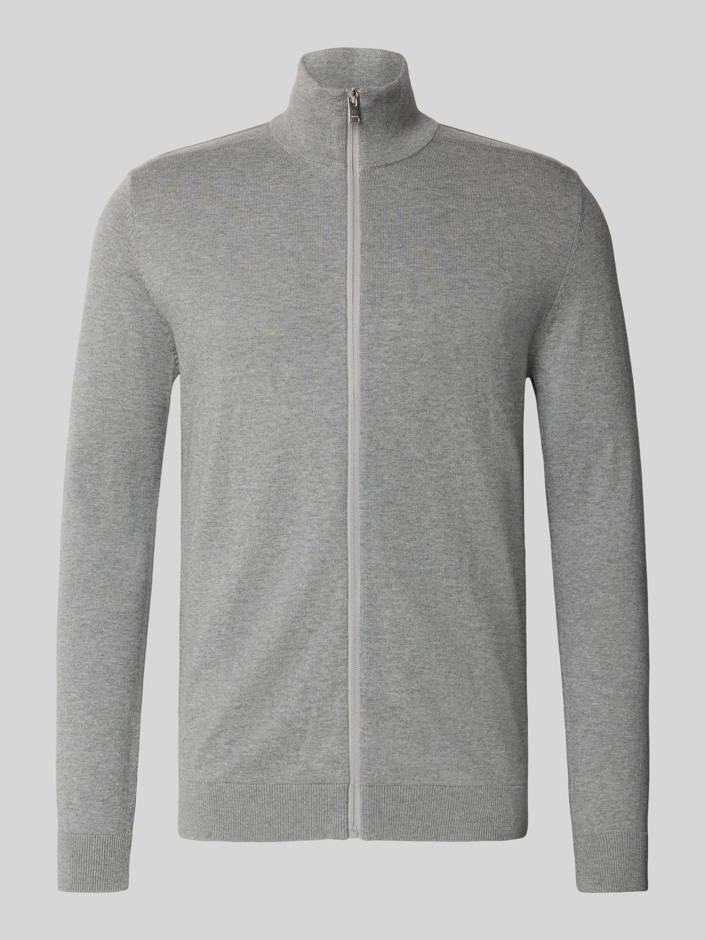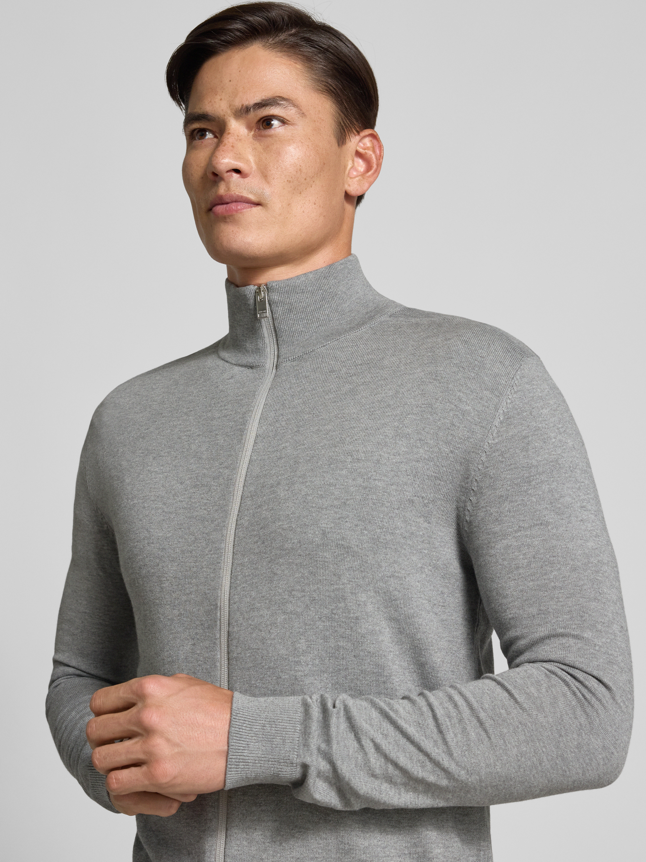 SELECTED HOMMERegular fit gebreid jack van puur katoen, model 'BERG' in middengrijs