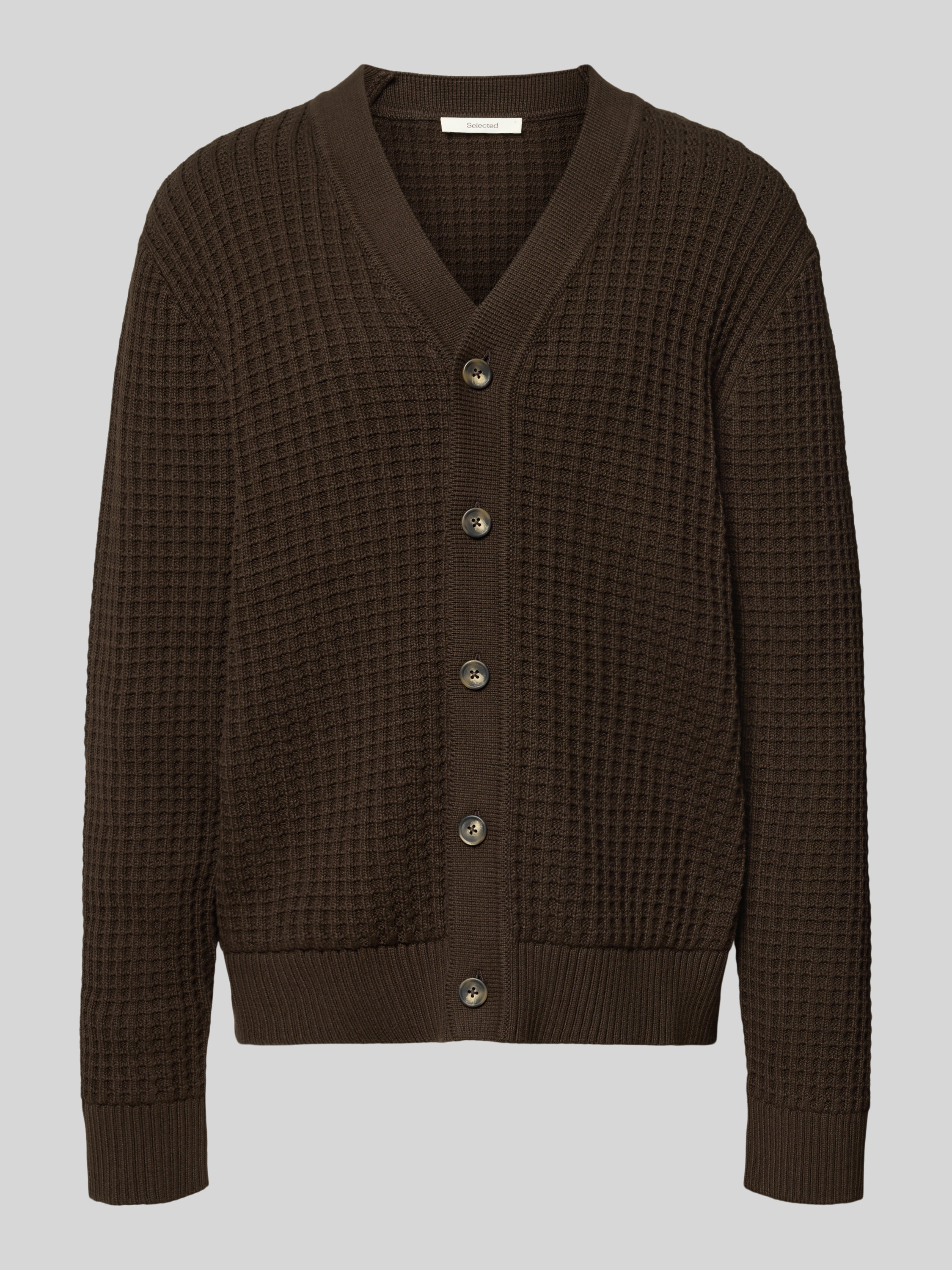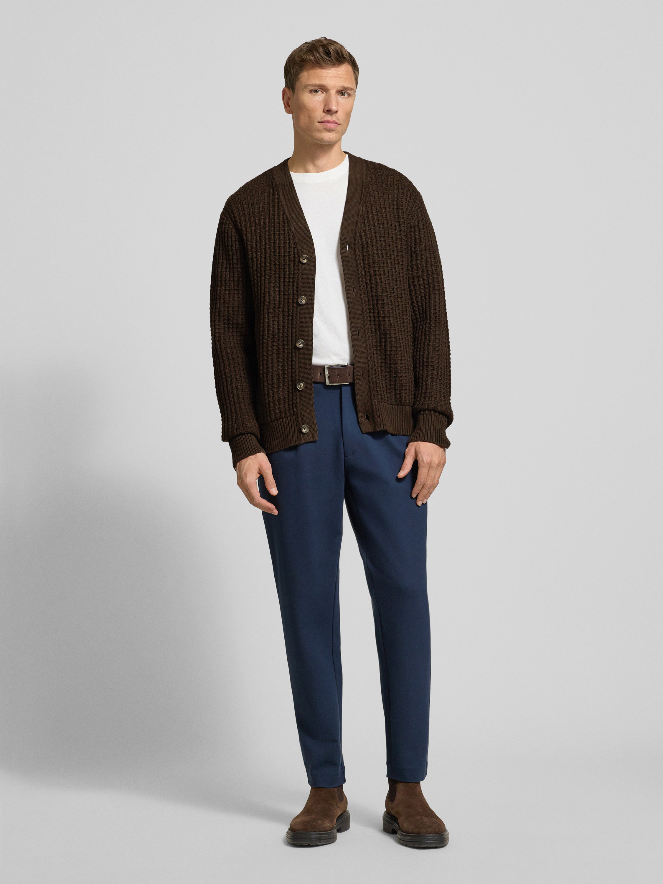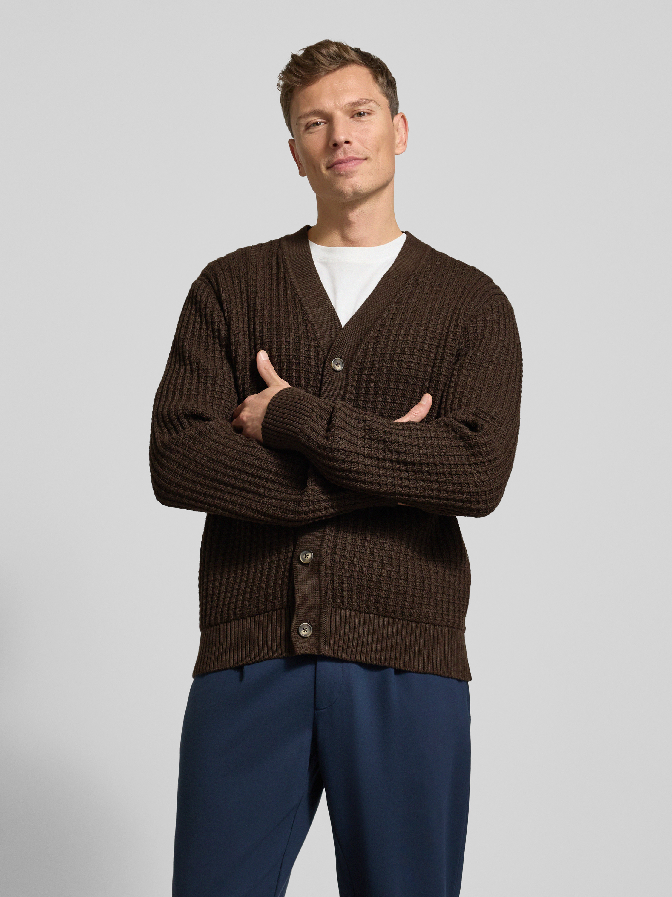 SELECTED HOMMERegular fit gebreid jack van puur katoen, model 'TOM' in chocoladebruin