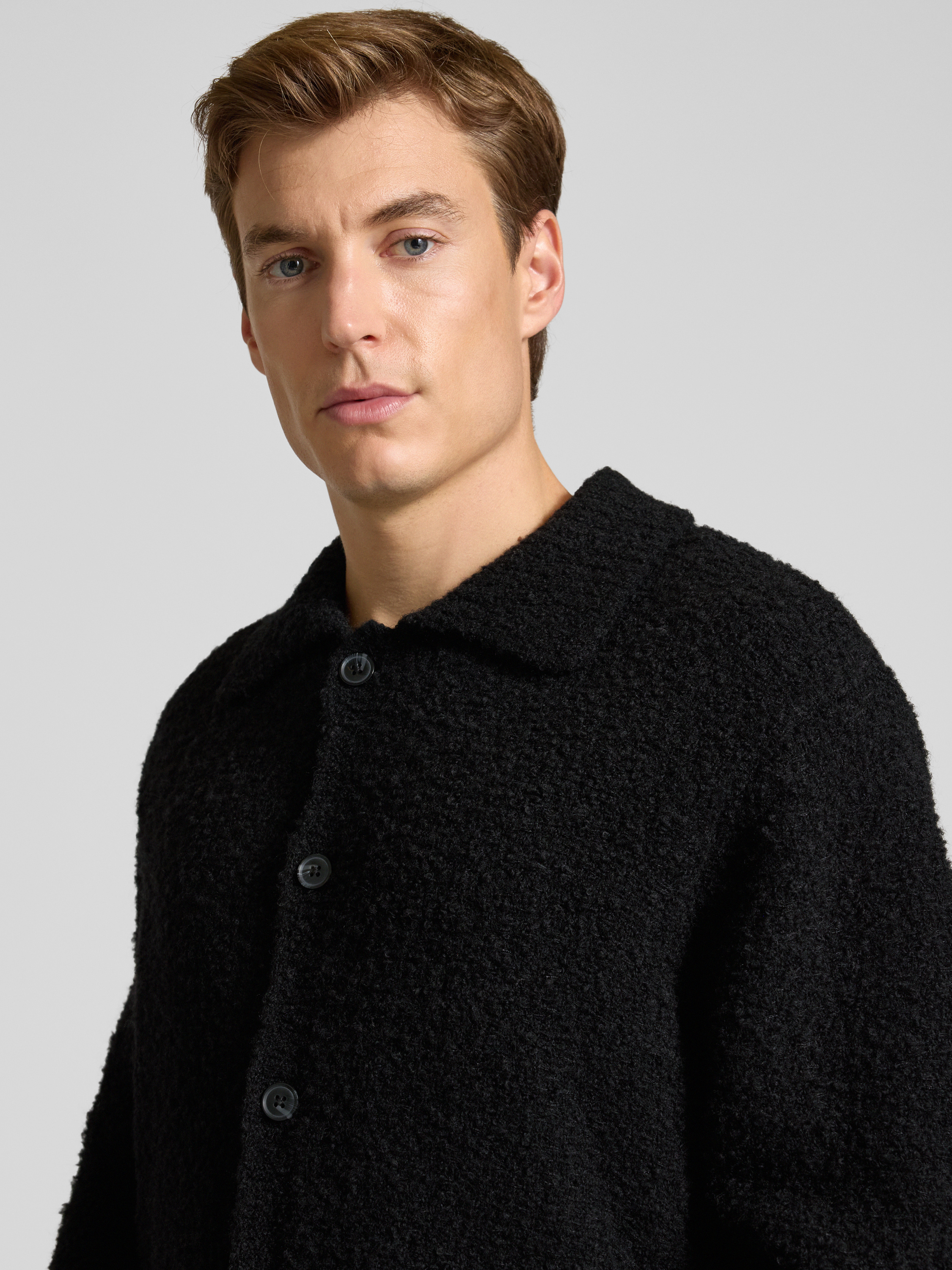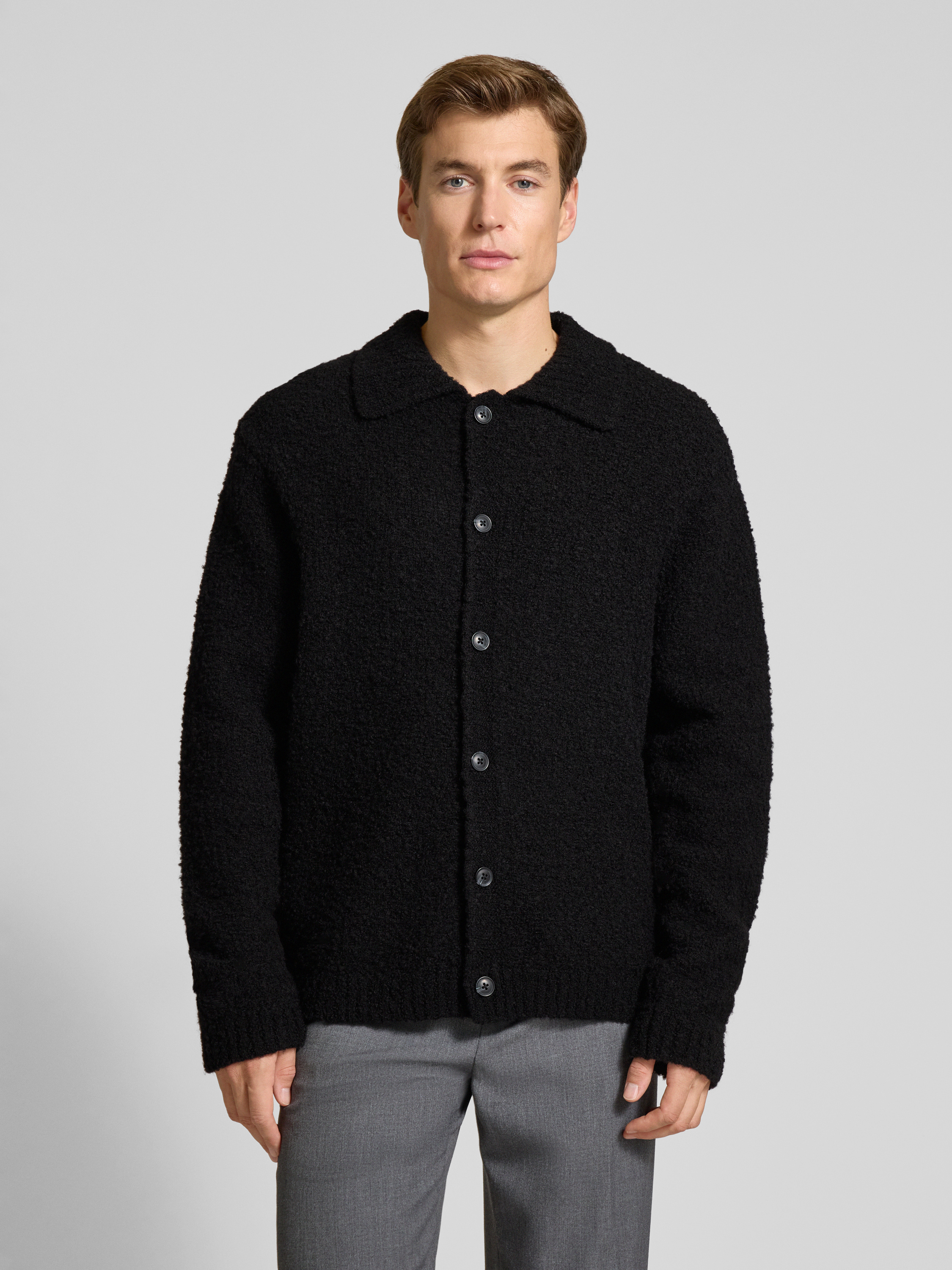 SELECTED HOMMERegular fit gebreid jack van wolmix, model 'LOYD' in zwart