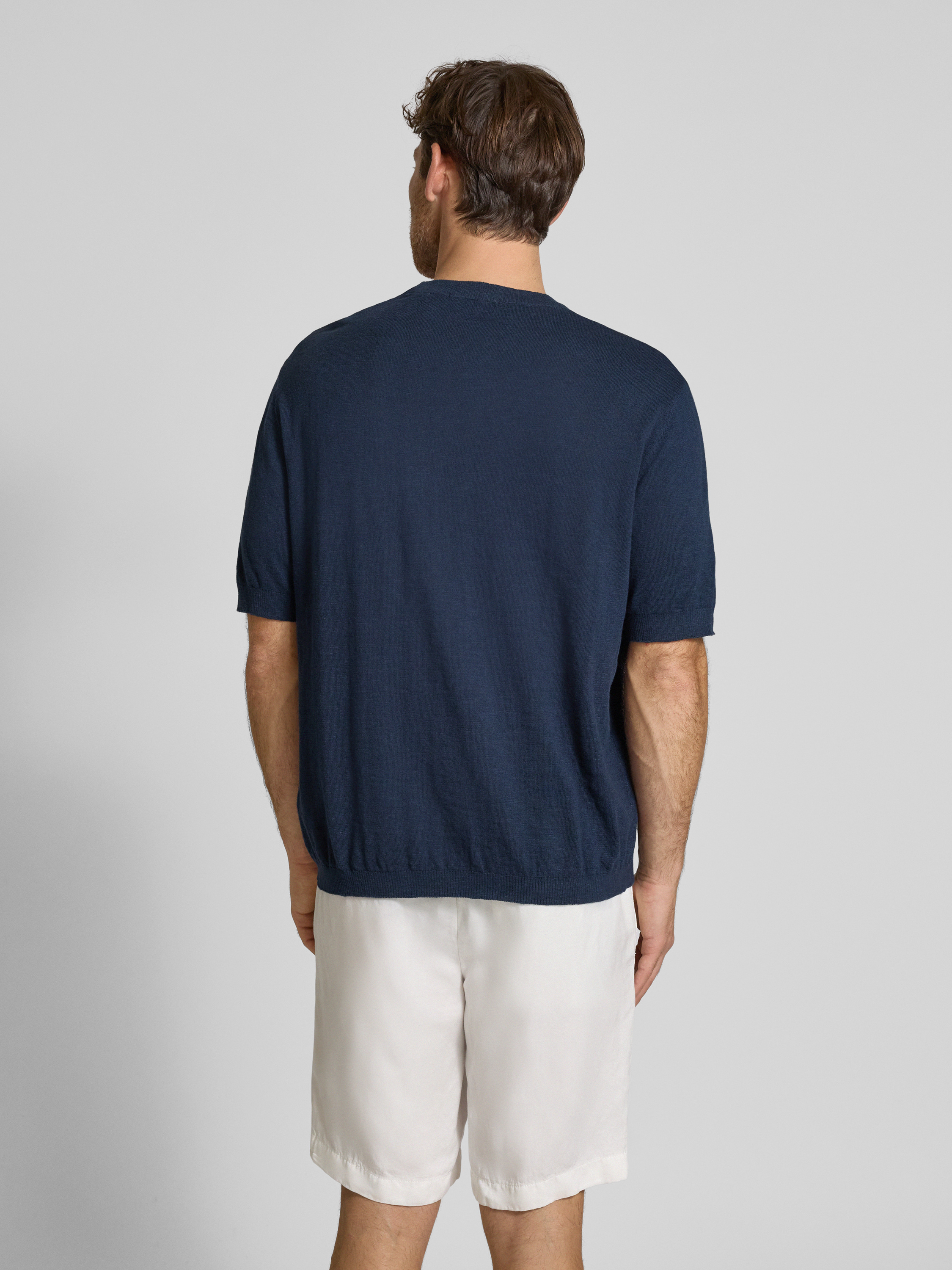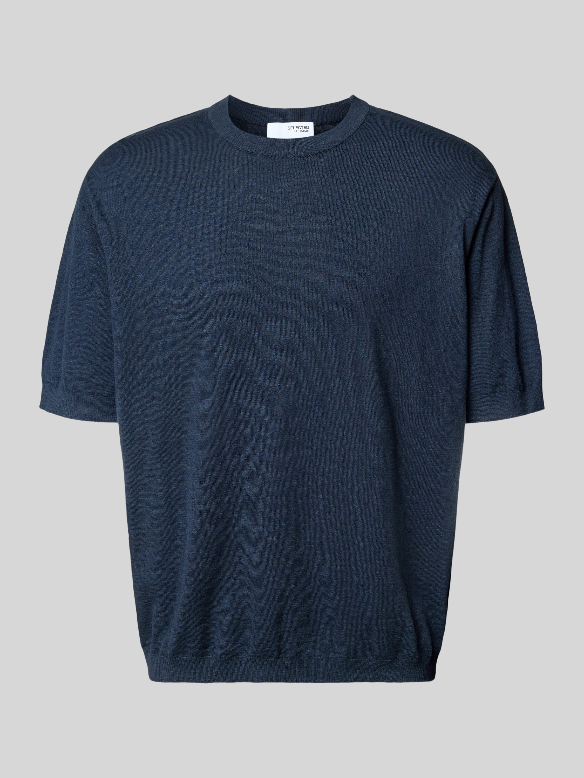 SELECTED HOMMERegular fit gebreid shirt van een mix van katoen en linnen, model 'BERG SUN' in marineblauw