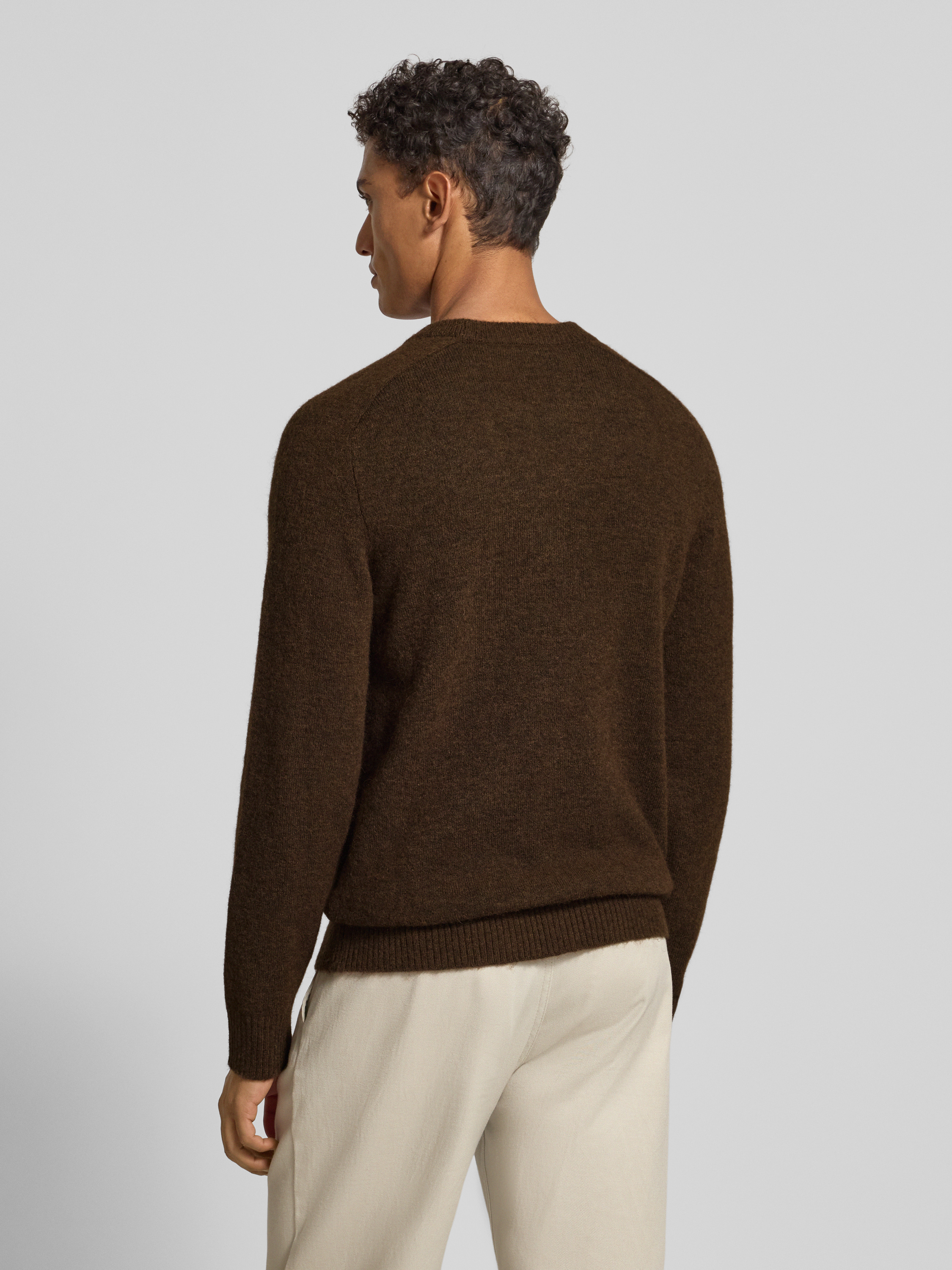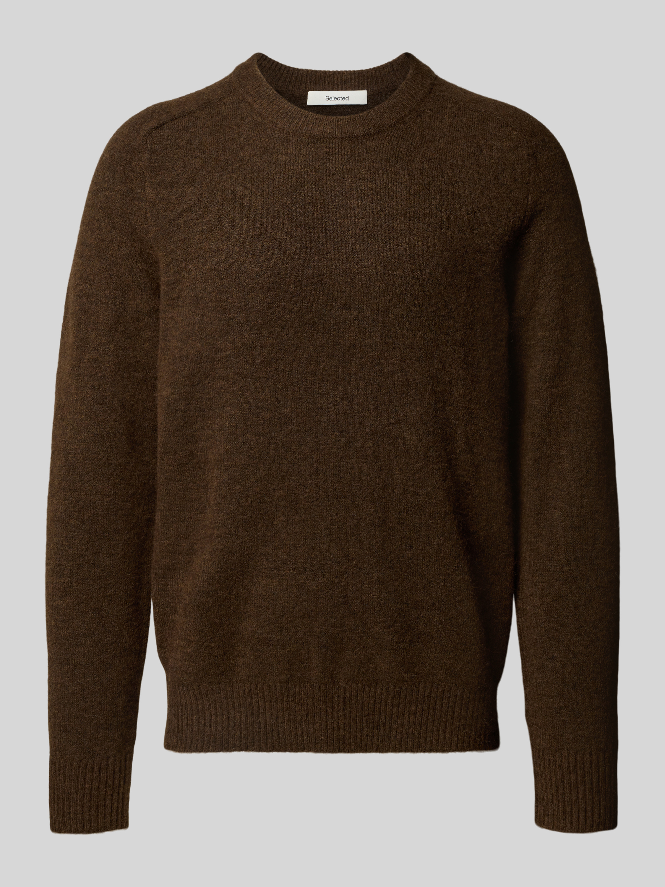Regular fit gebreide pullover met mix van alpaca en wol, model 'RAI' in chocoladebruin