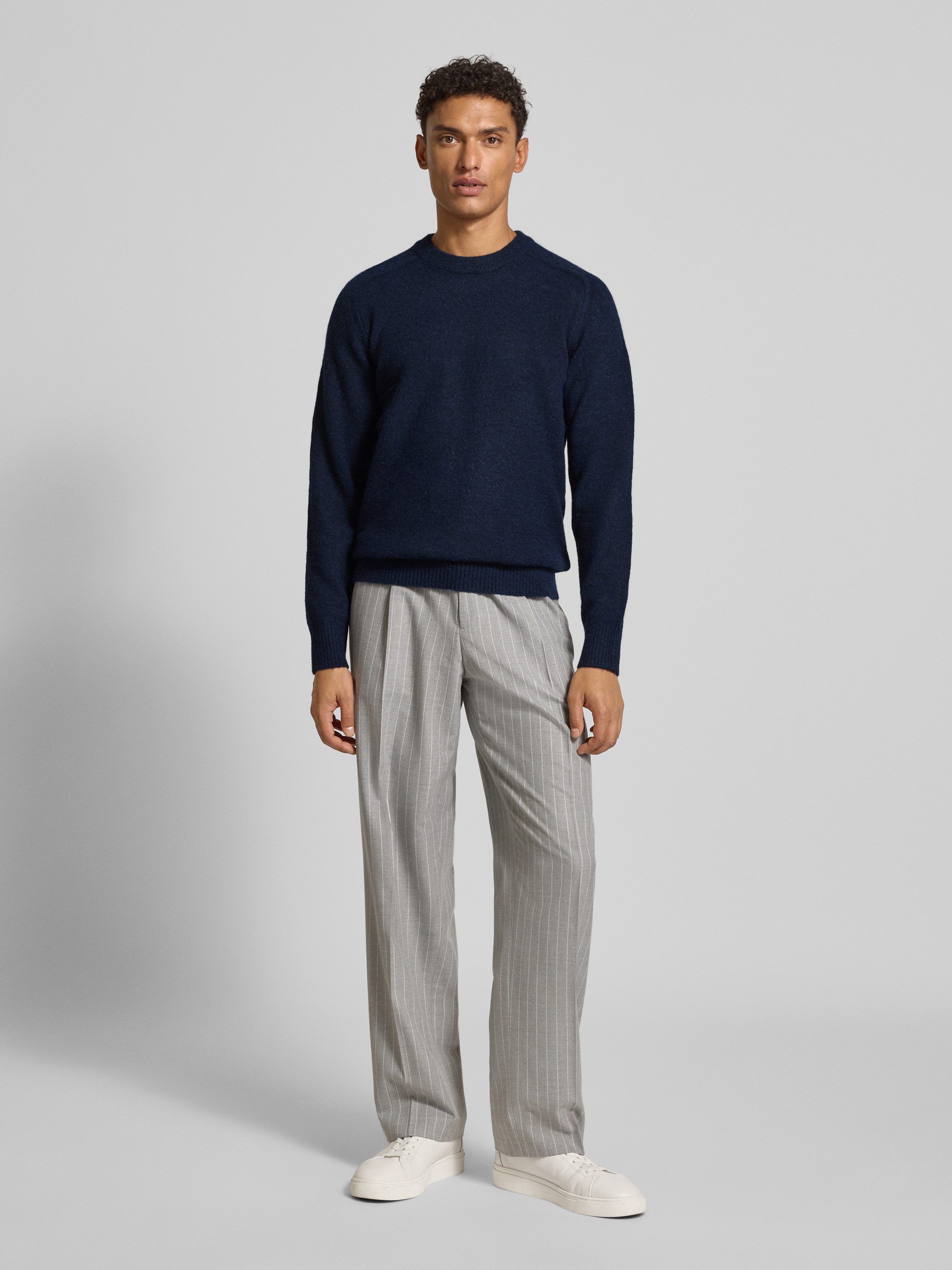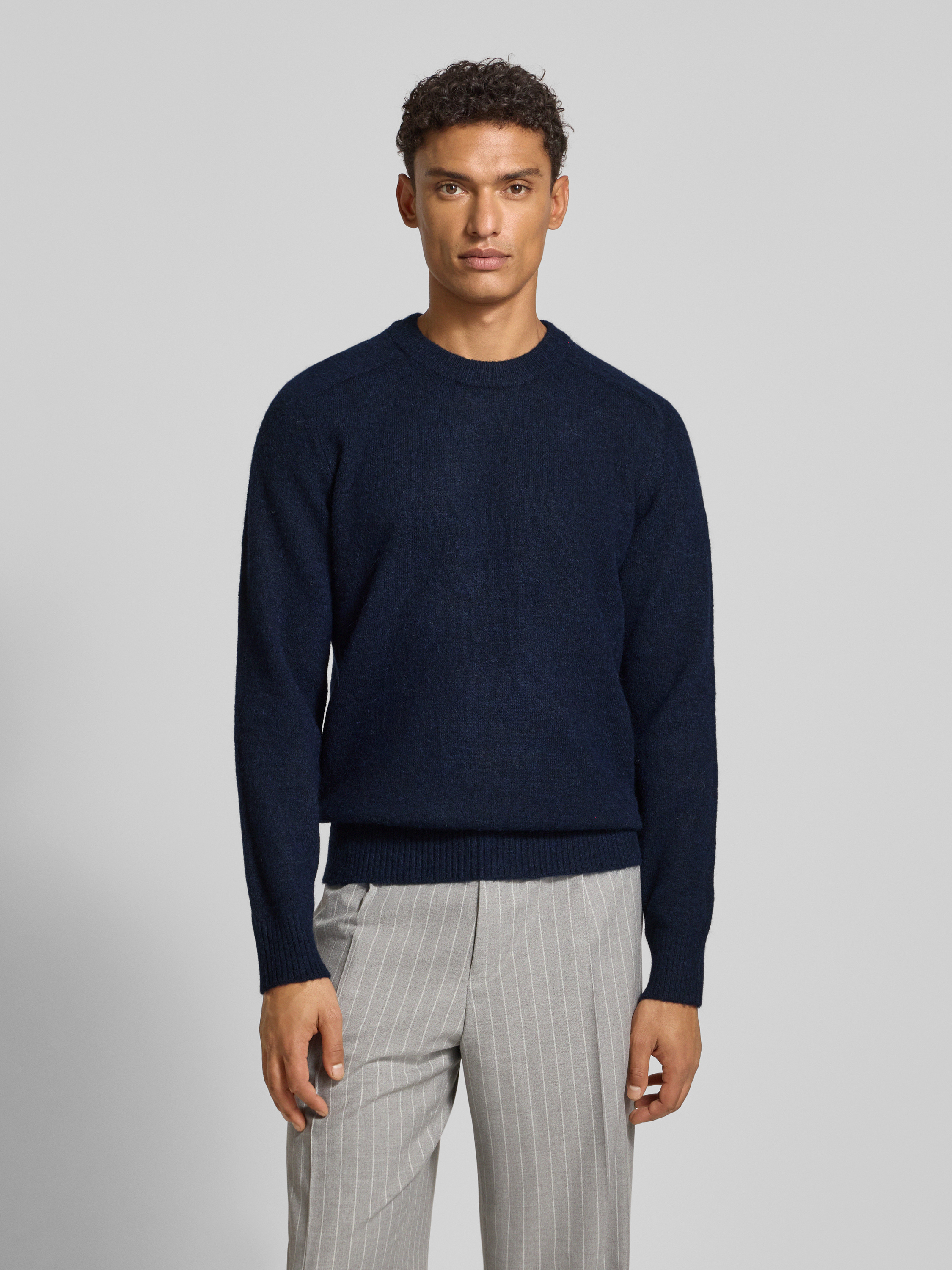 Regular fit gebreide pullover met mix van alpaca en wol, model 'RAI' in donkerblauw