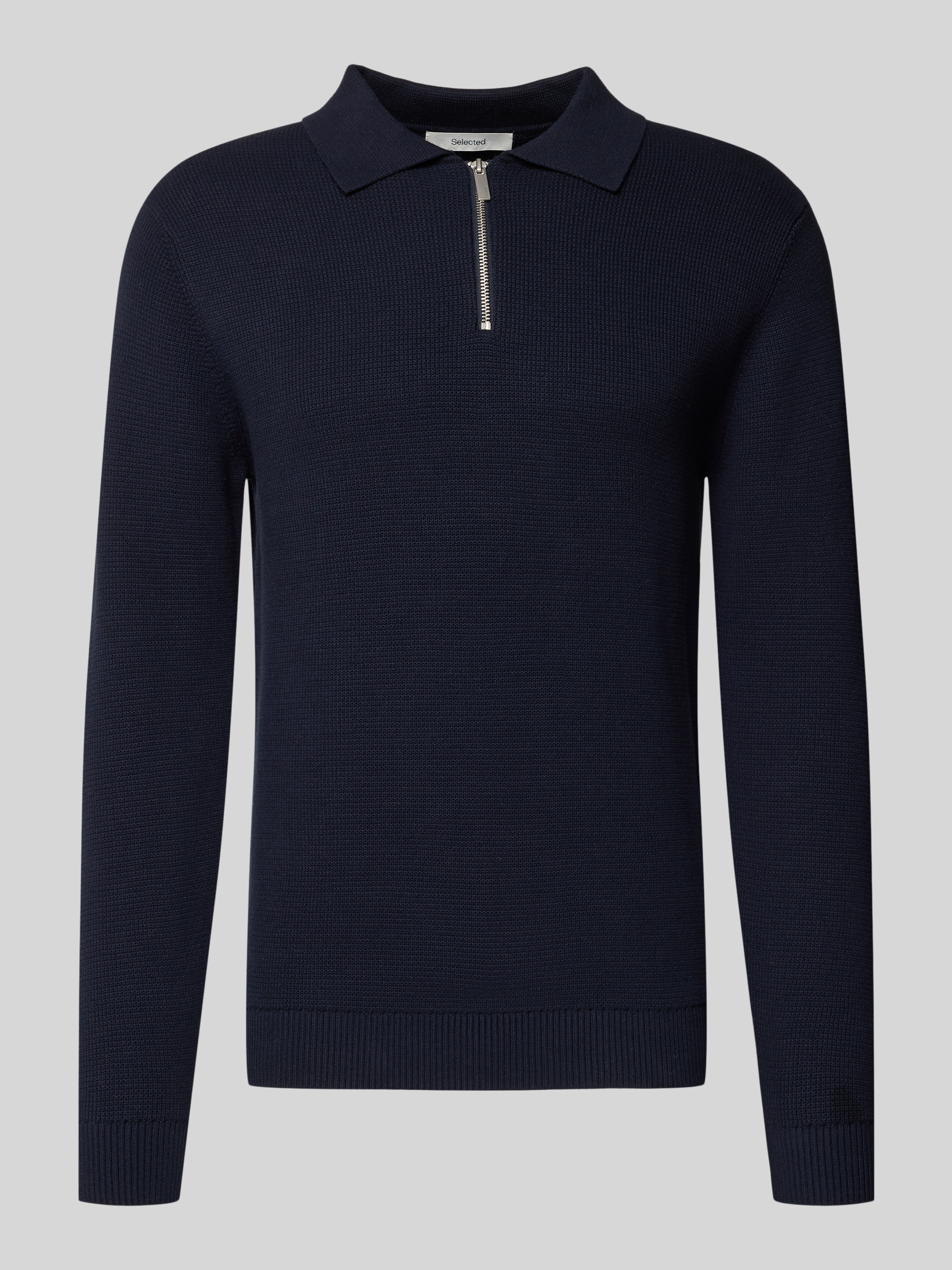 Regular fit gebreide pullover van biologisch katoen, model 'DANE' in marineblauw