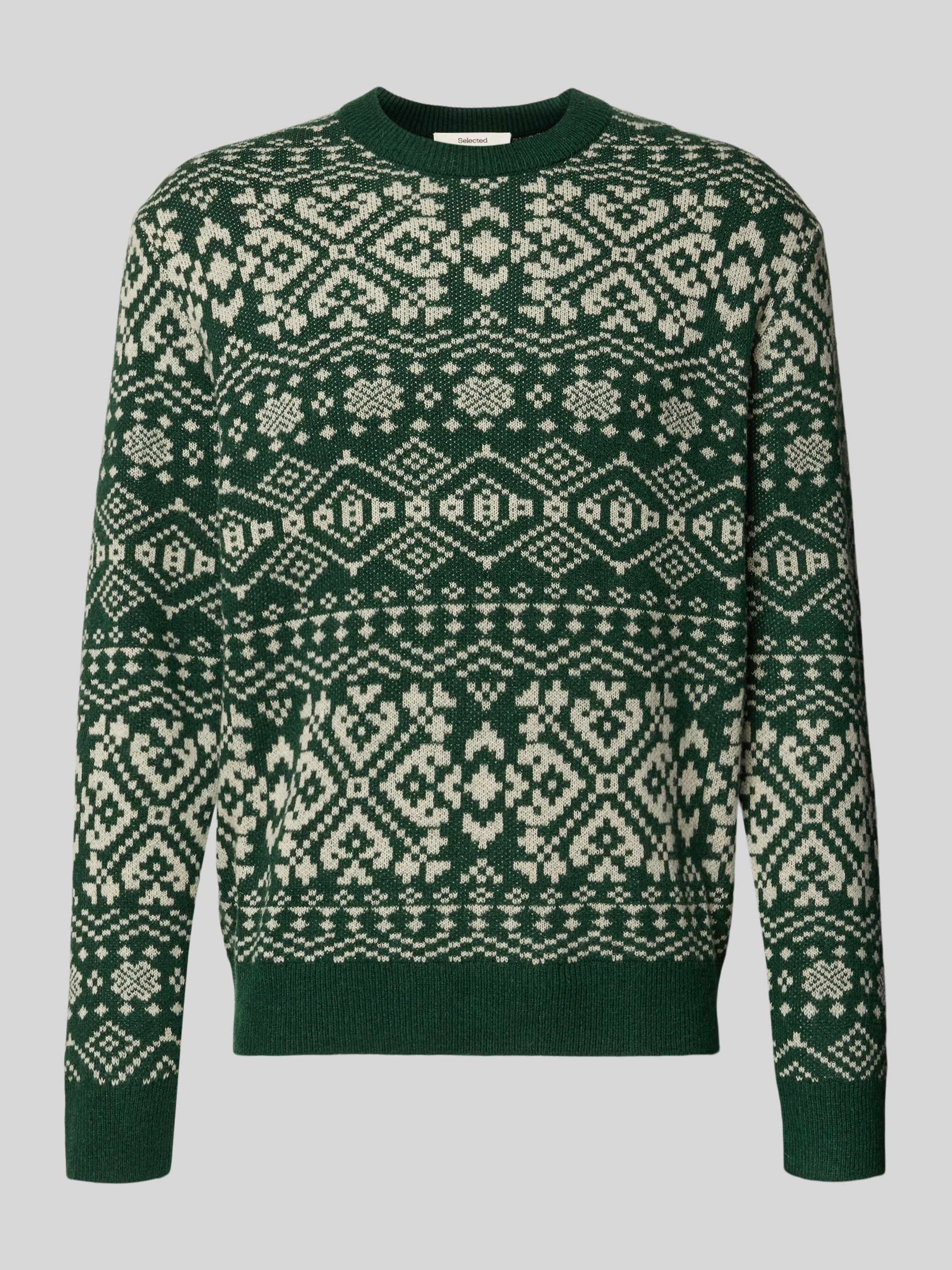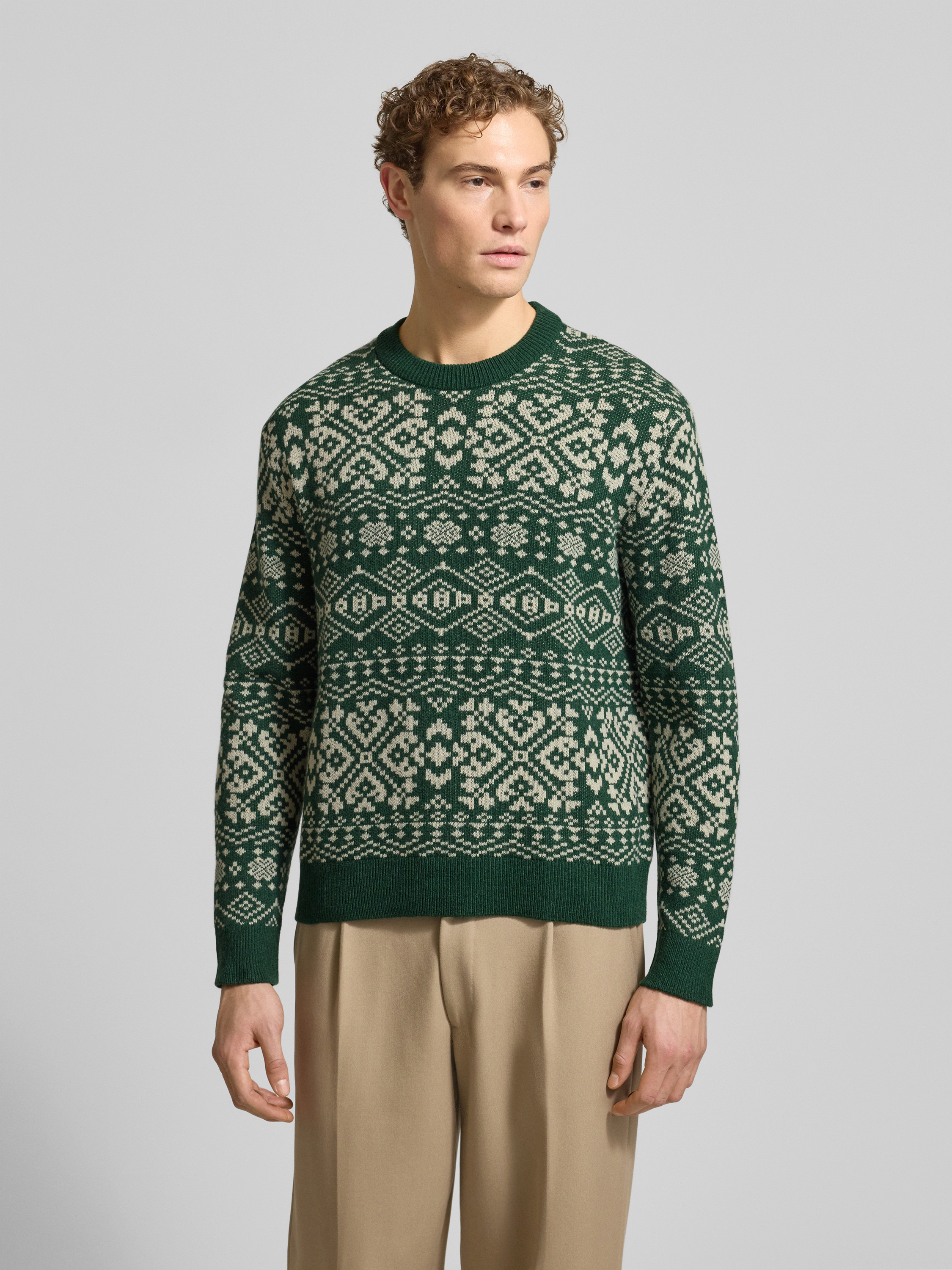 Regular fit gebreide pullover van een wolmix, model 'HOLGER' in donkergroen