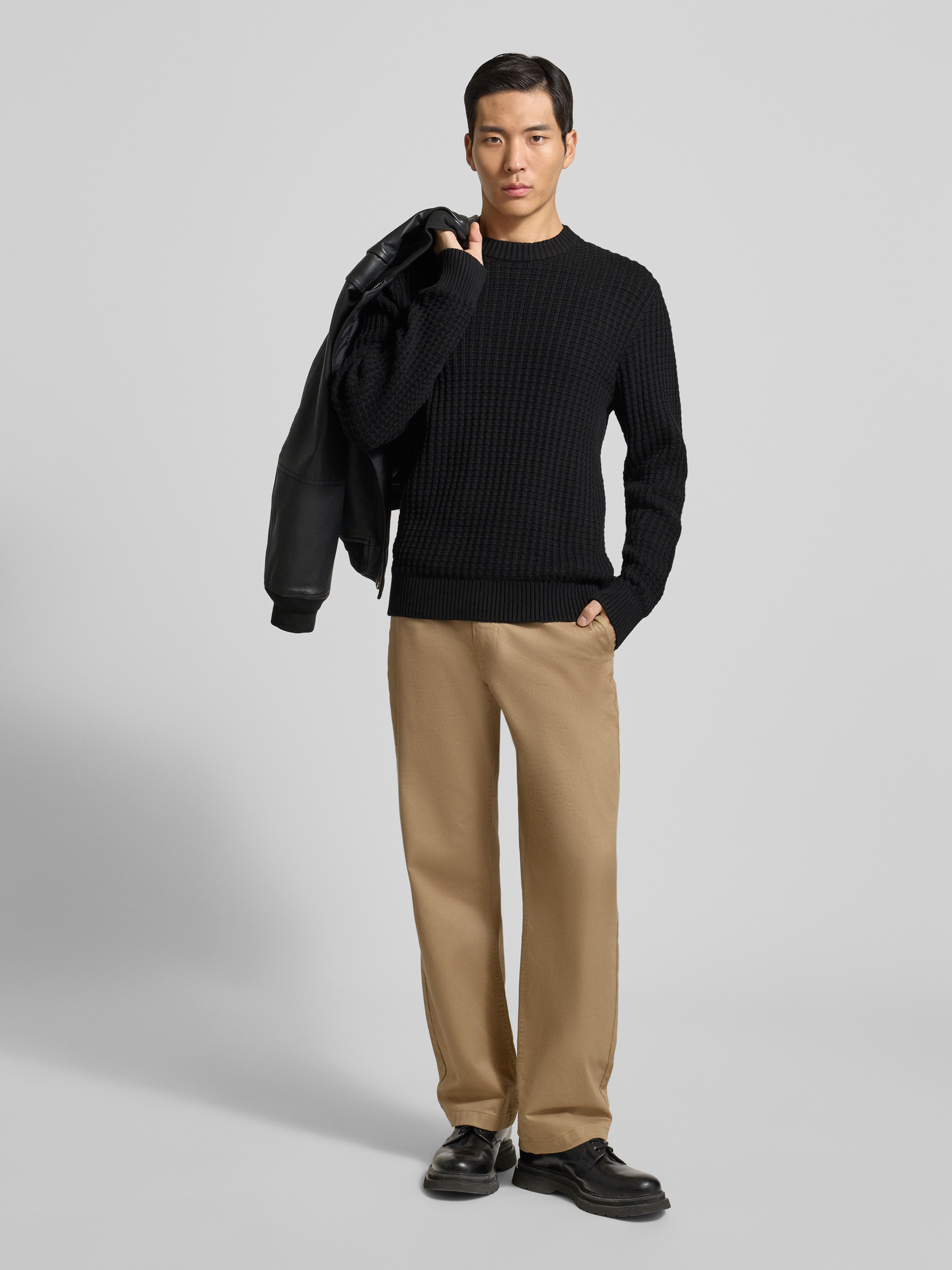 SELECTED HOMMERegular fit gebreide pullover van puur biologisch katoen, model 'TOM' in zwart
