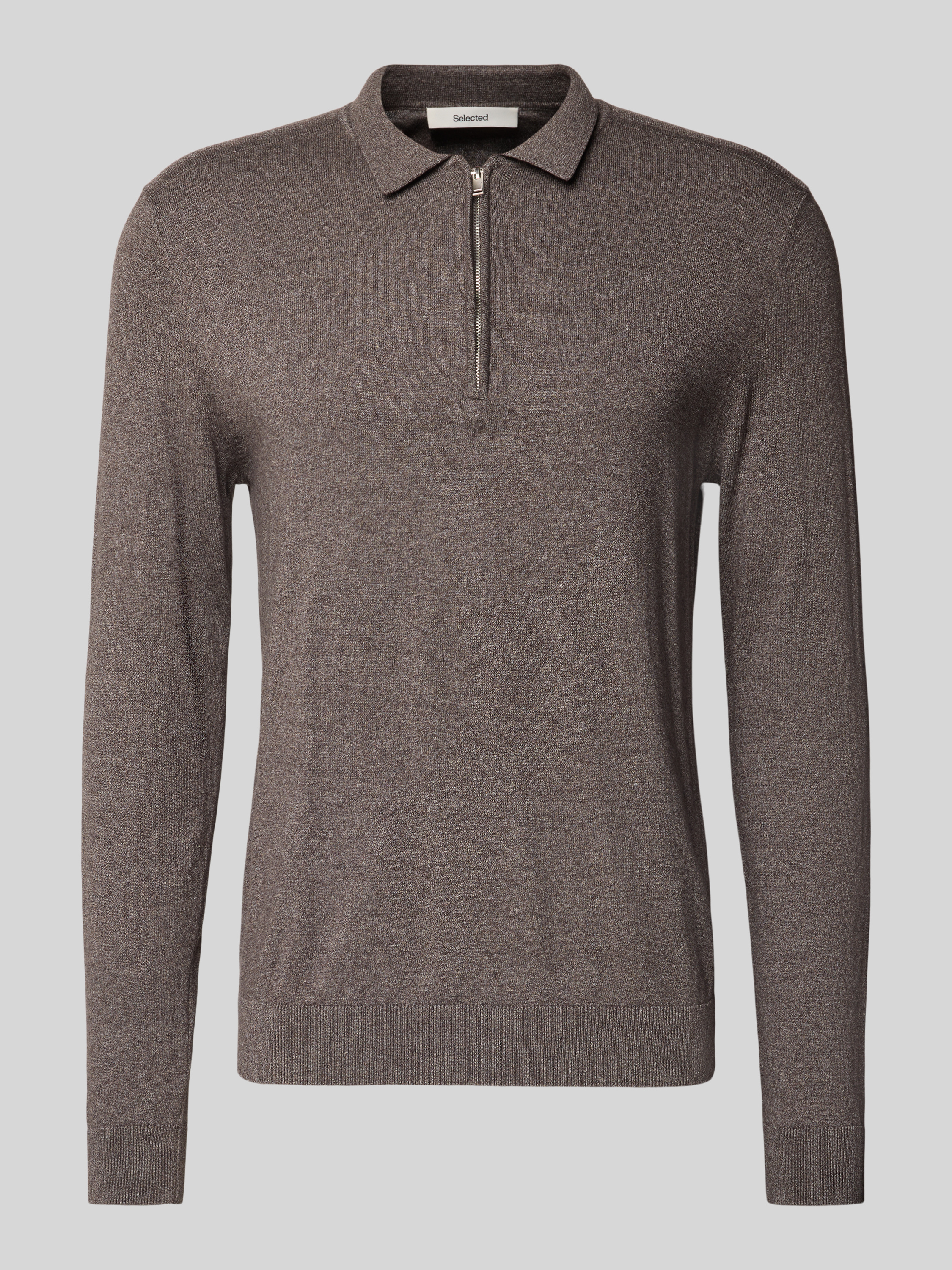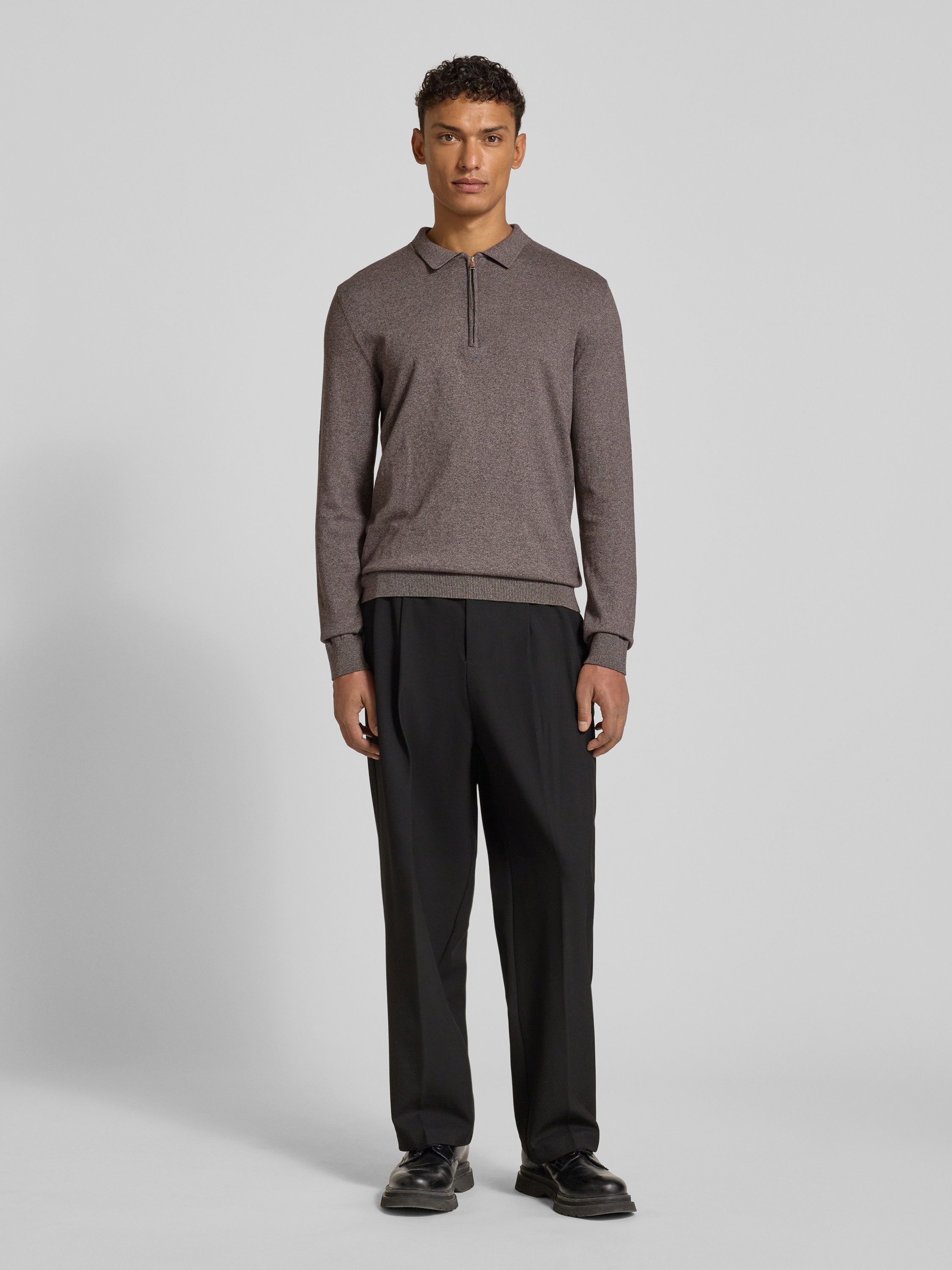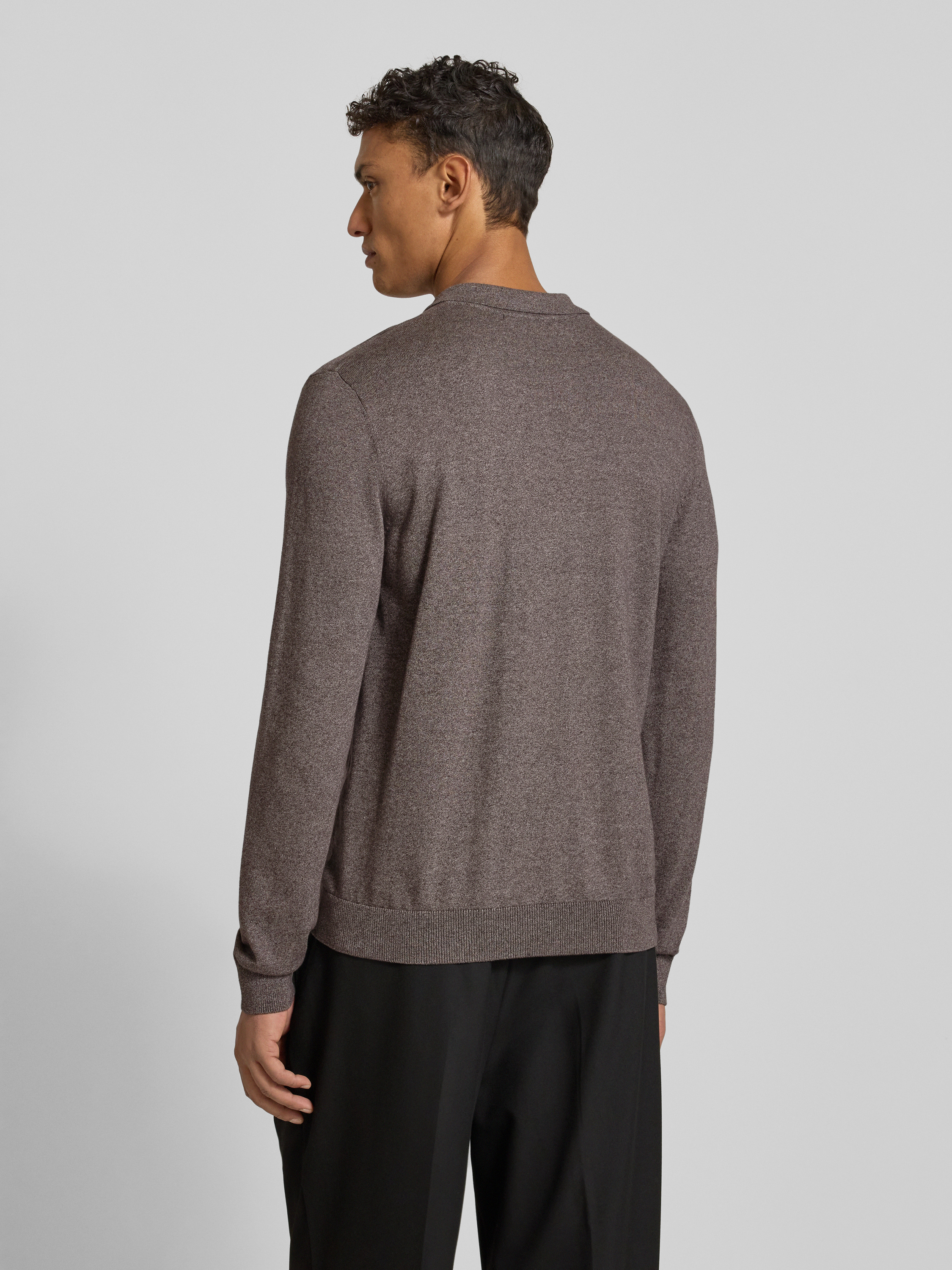 Regular fit gebreide pullover van puur katoen, model 'BERG' in donkerbruin gemêleerd