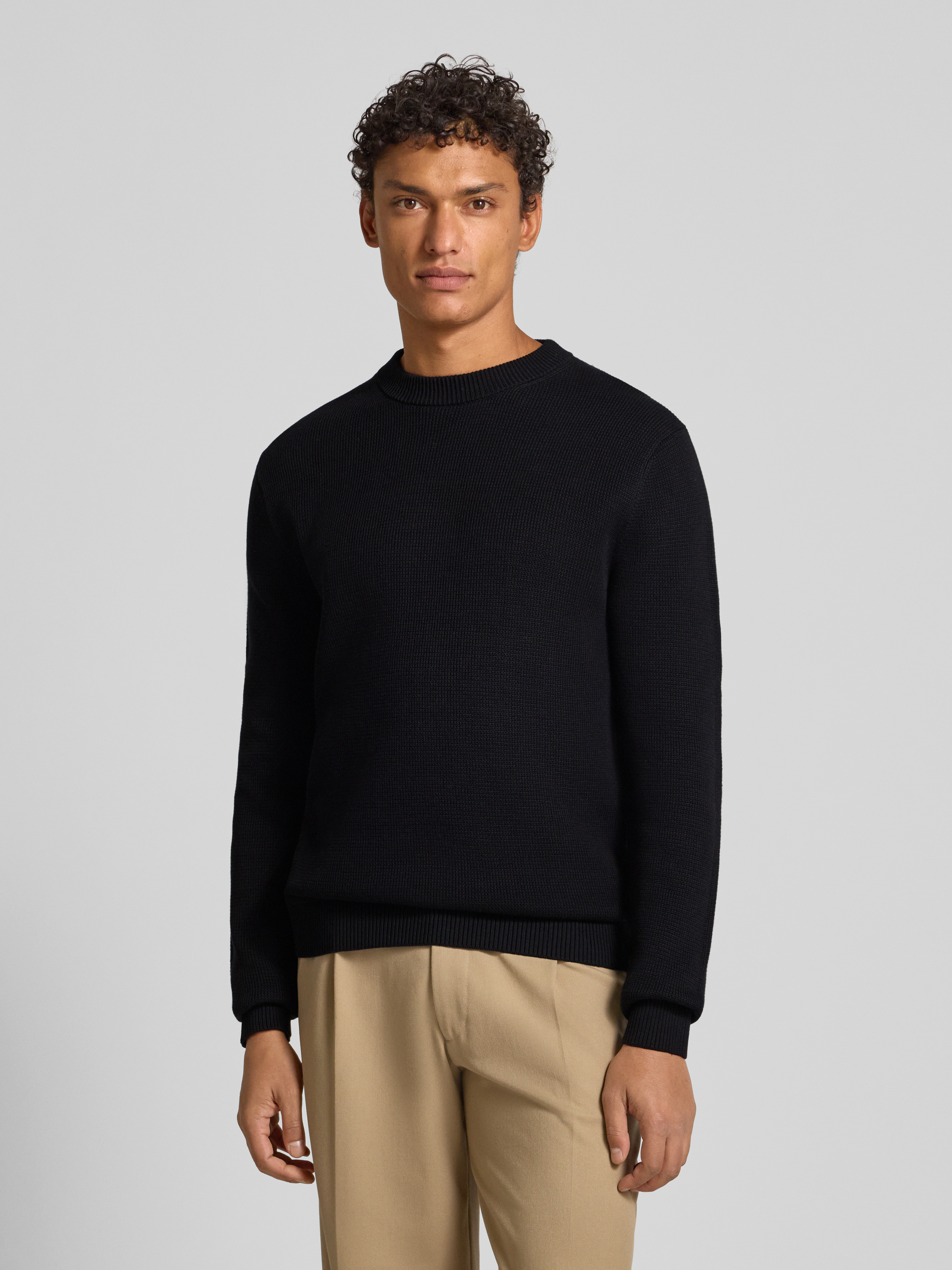Regular fit gebreide pullover van puur katoen, model 'DANE' in zwart