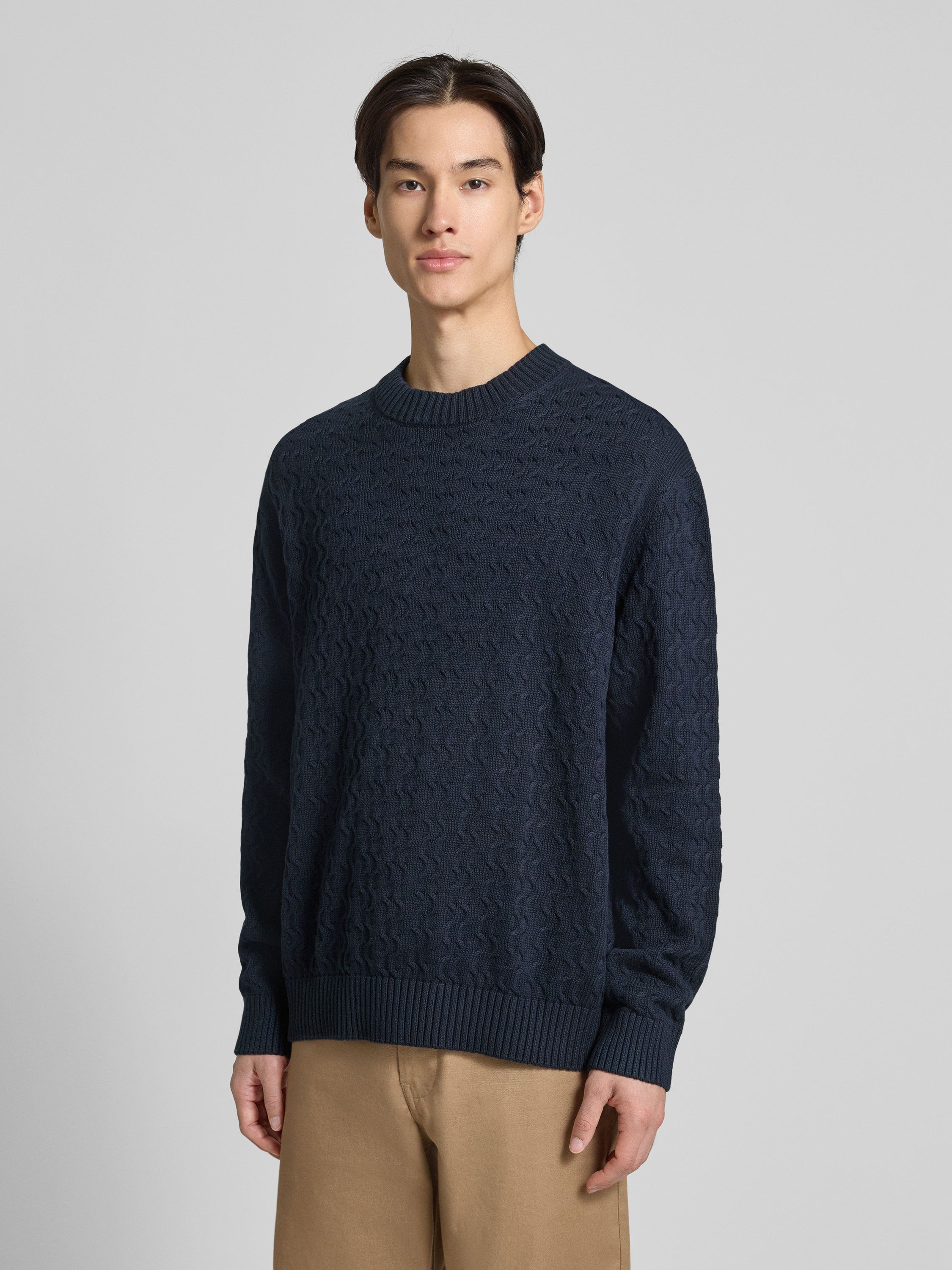 SELECTED HOMMERegular fit gebreide pullover van puur katoen, model 'PHILIP' in donkerblauw