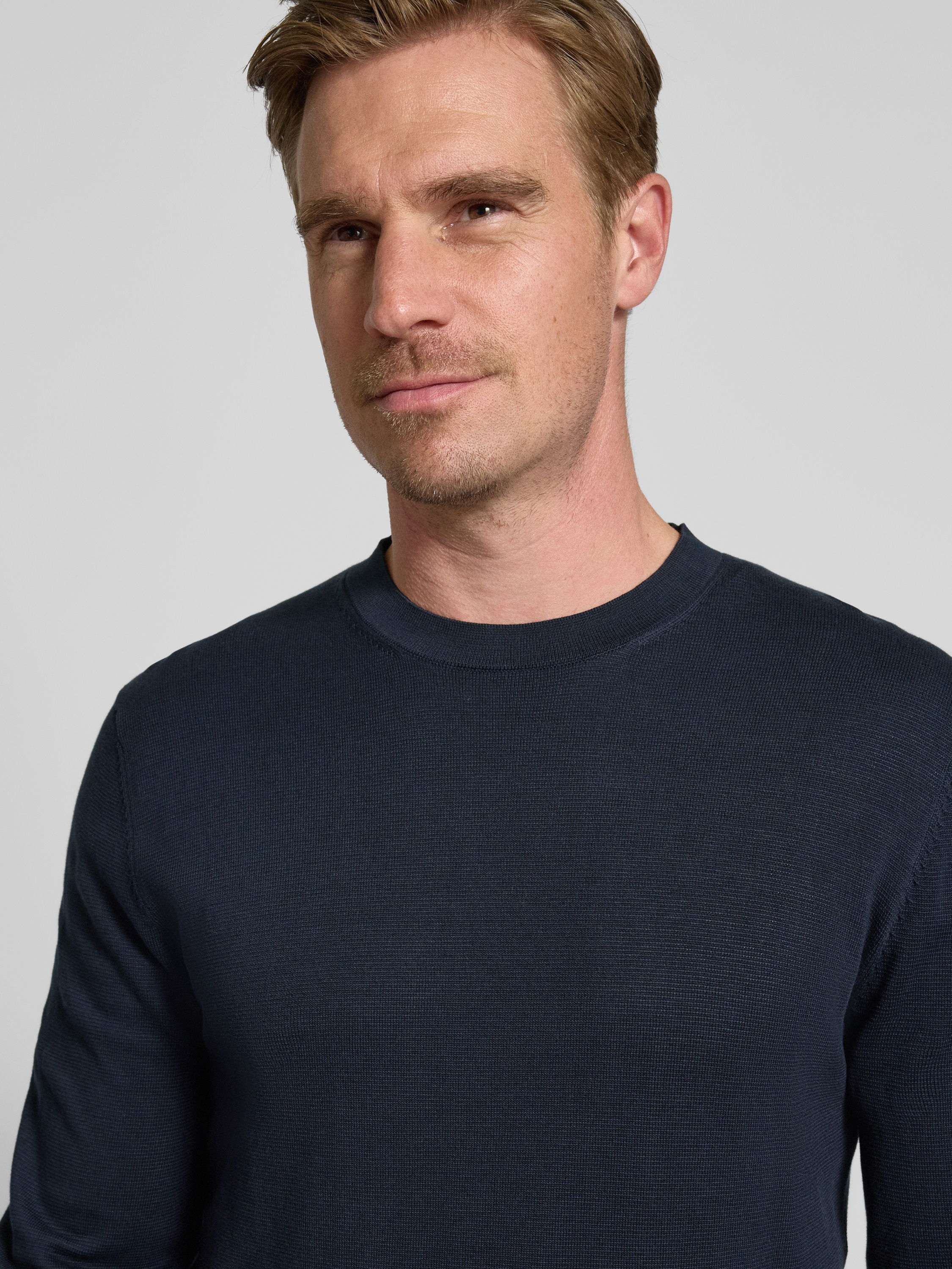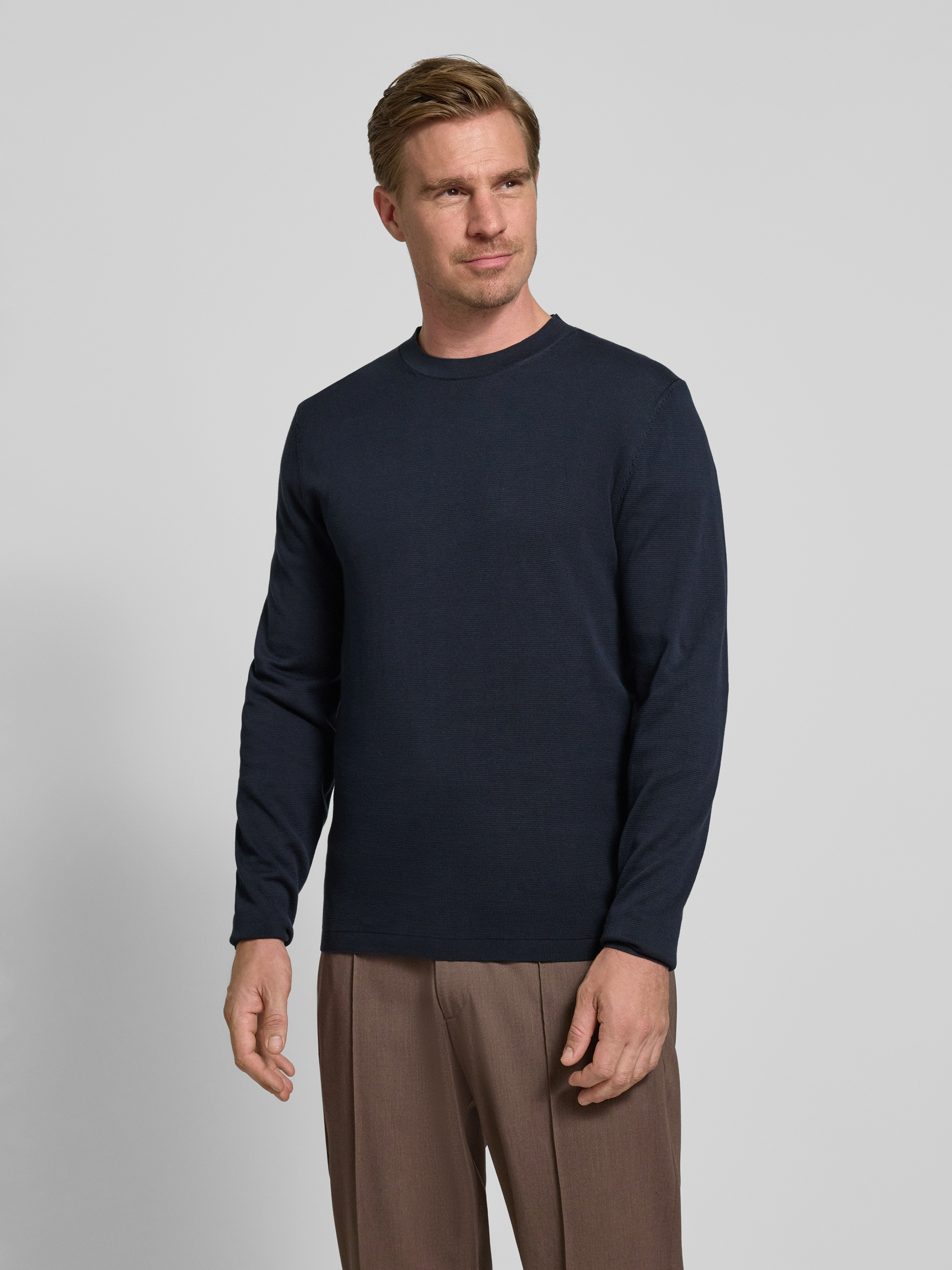 SELECTED HOMMERegular fit gebreide pullover van puur katoen, model 'RAVI' in donkerblauw