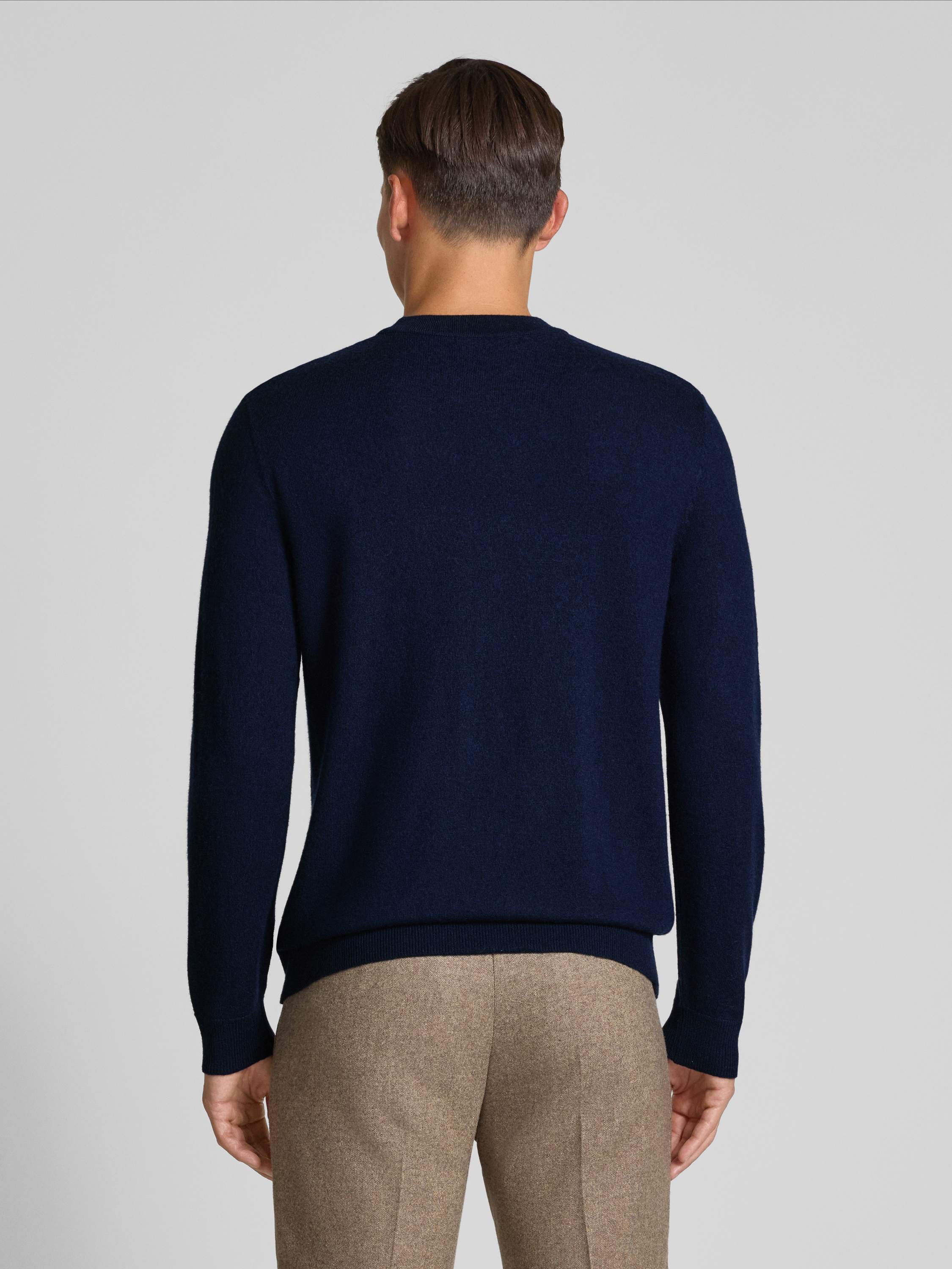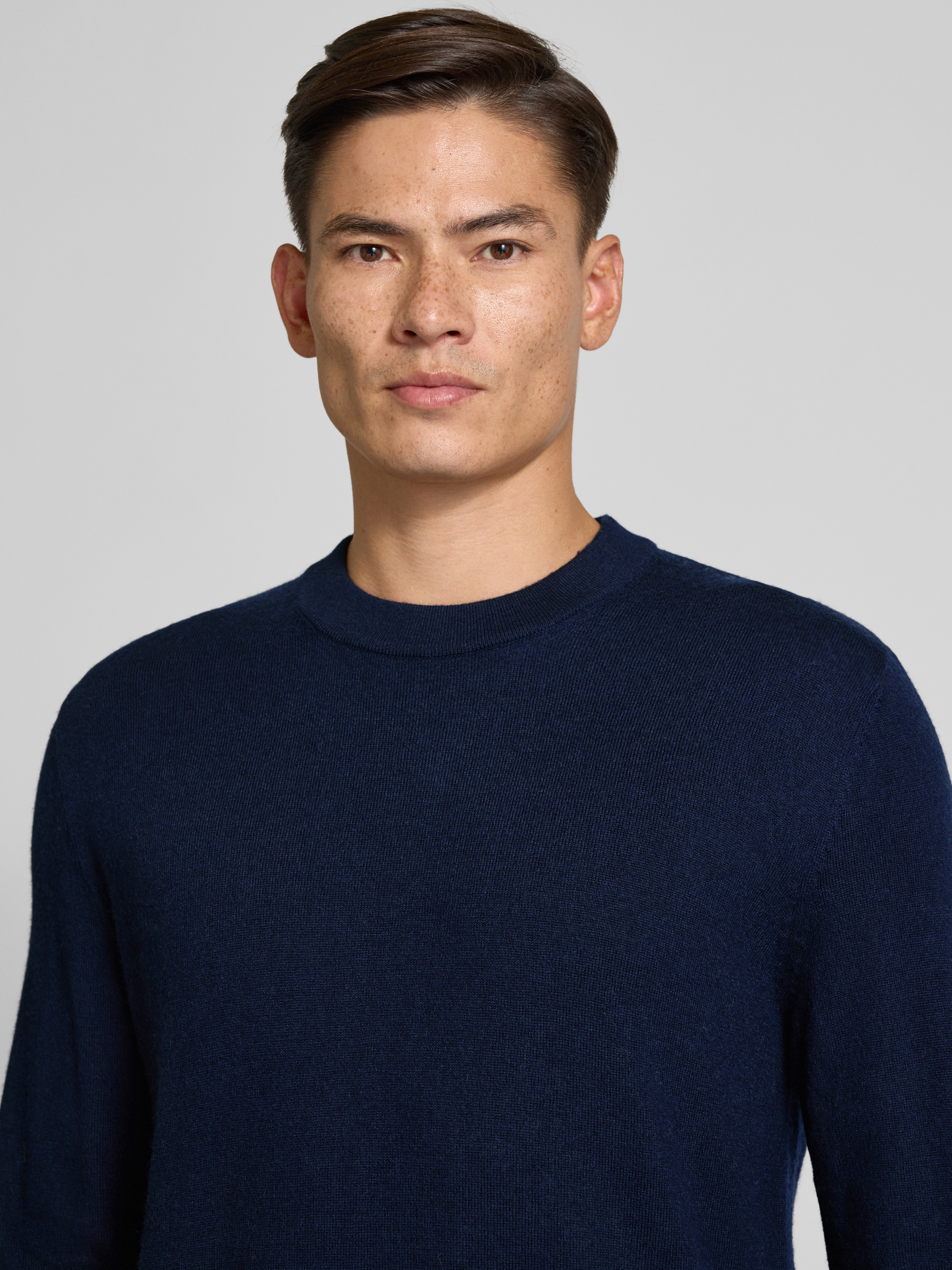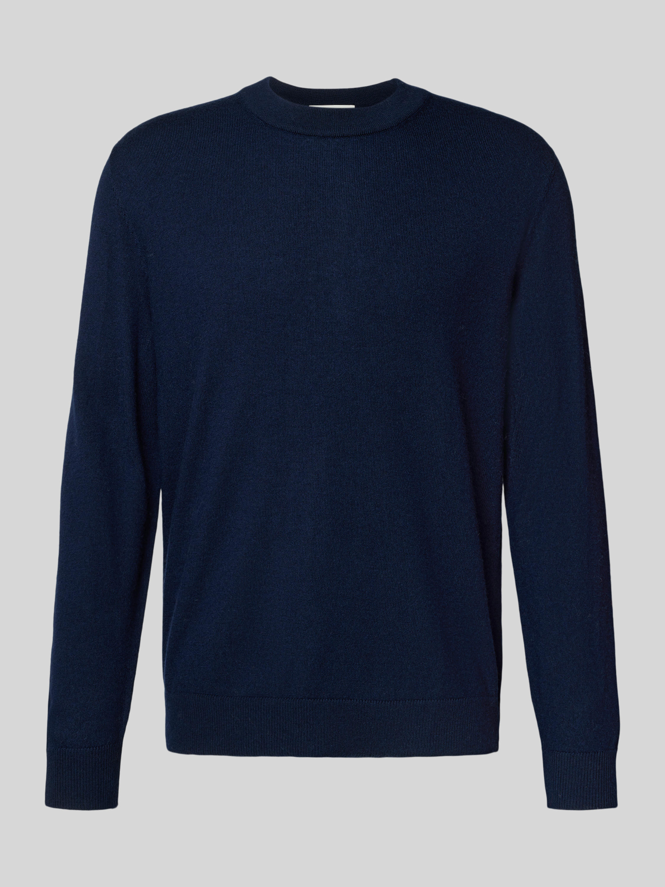 SELECTED HOMMERegular fit gebreide pullover van zuivere merinowol, model 'TRAY' in marineblauw