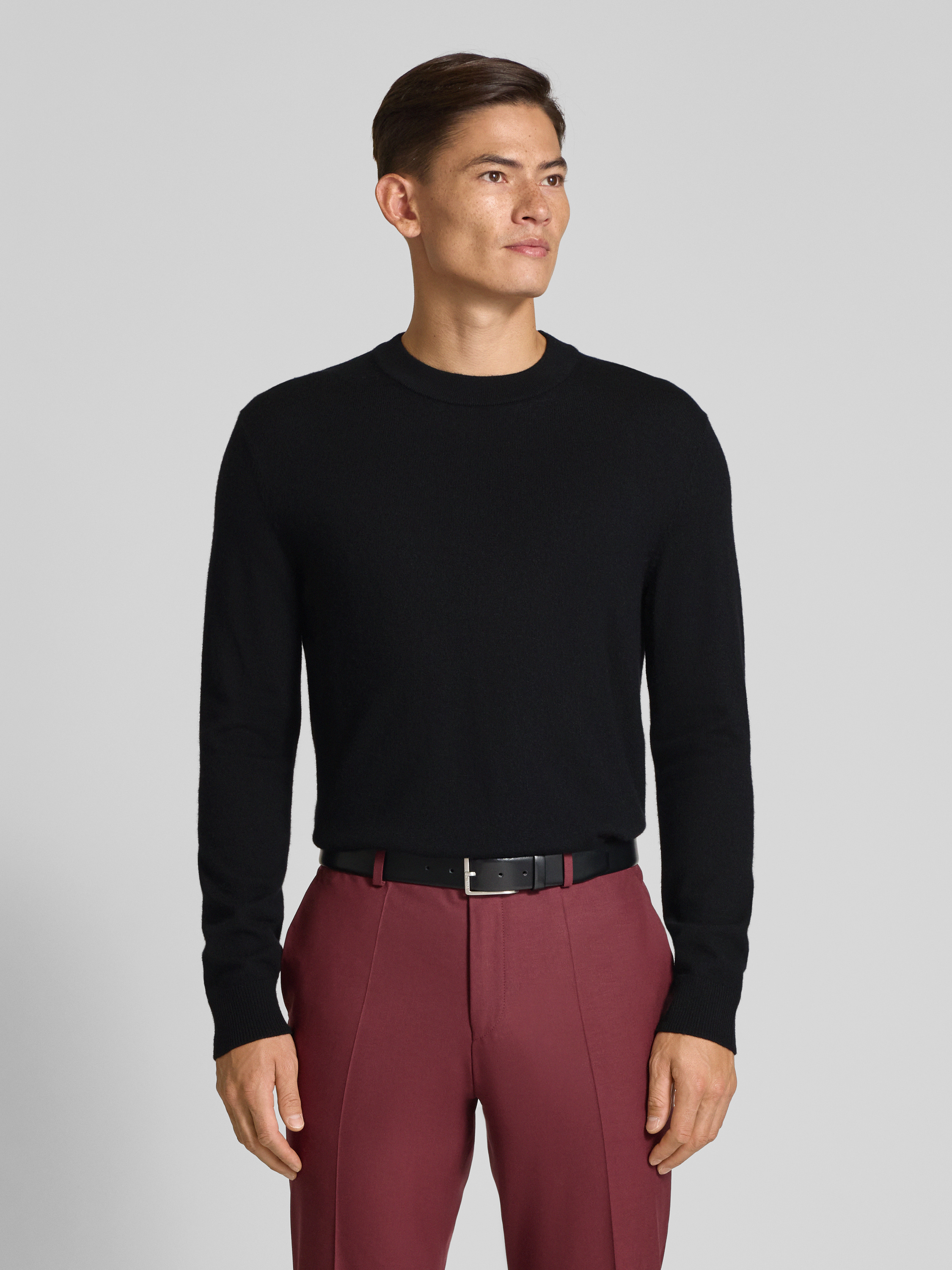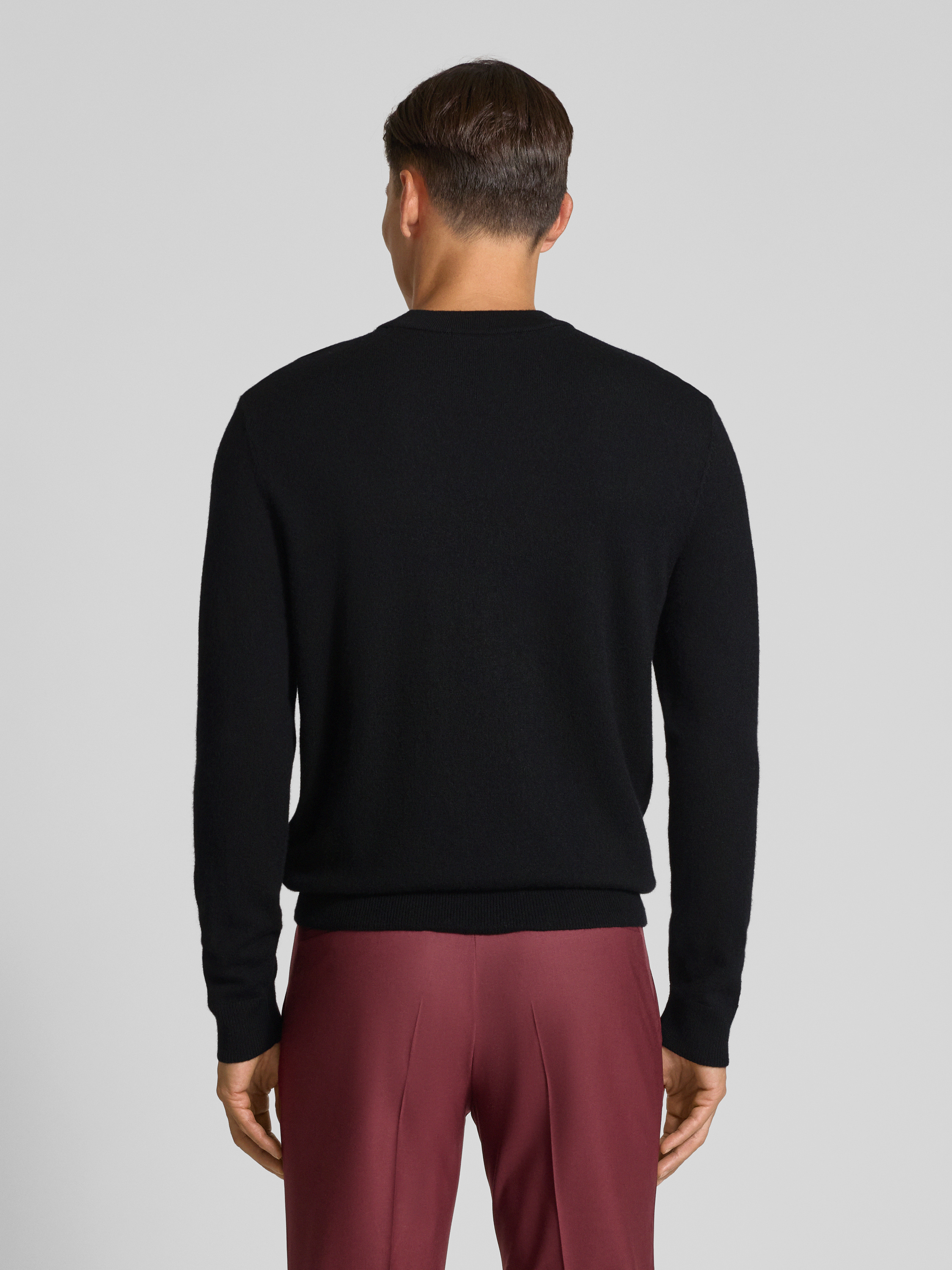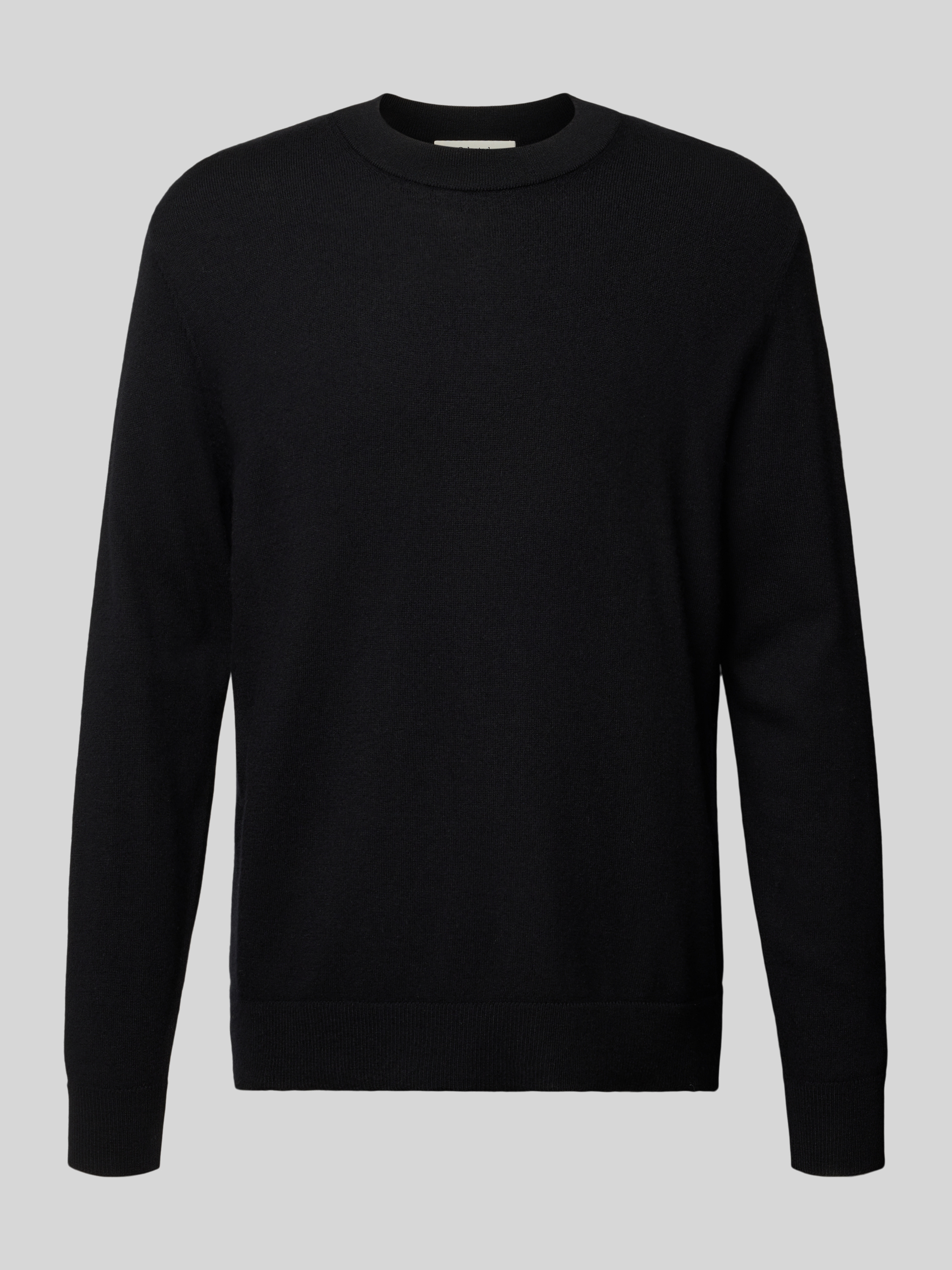 SELECTED HOMMERegular fit gebreide pullover van zuivere merinowol, model 'TRAY' in zwart